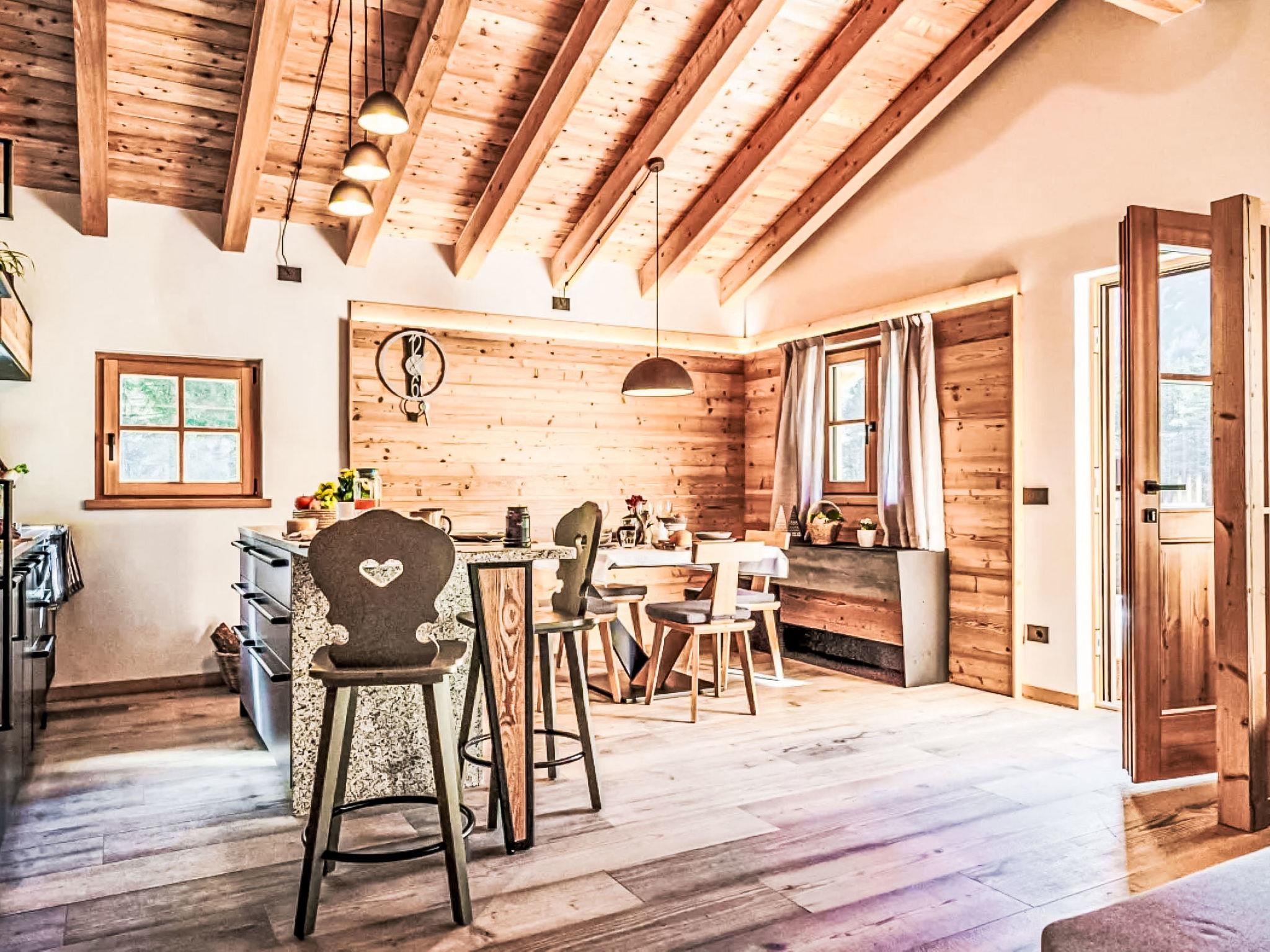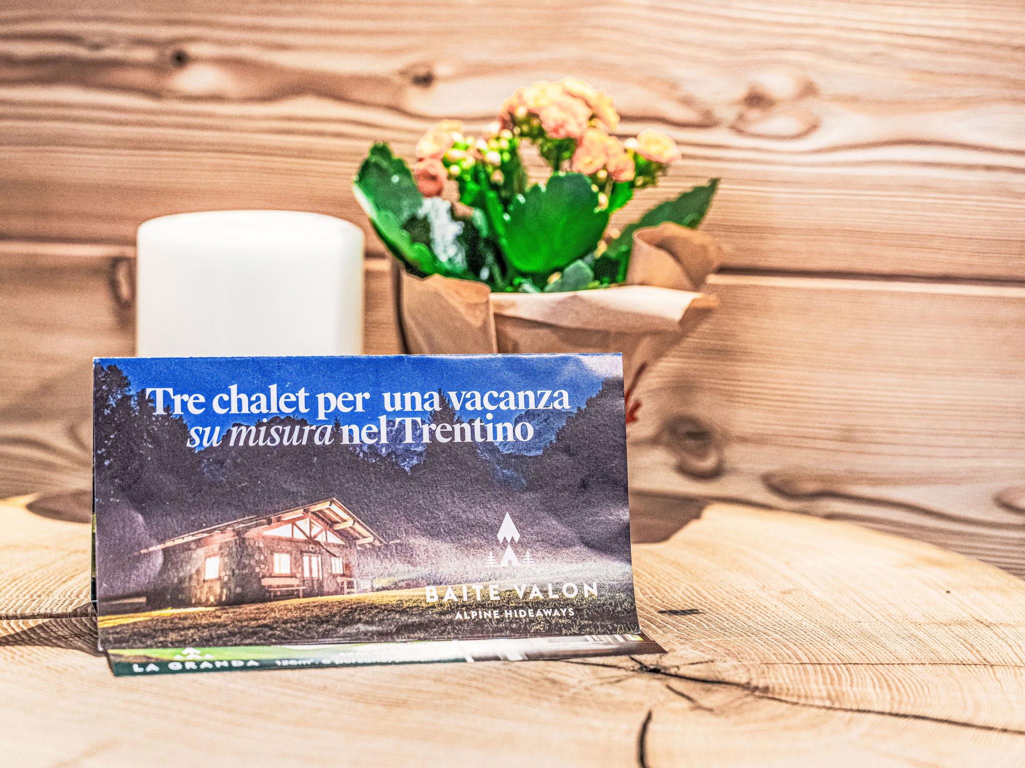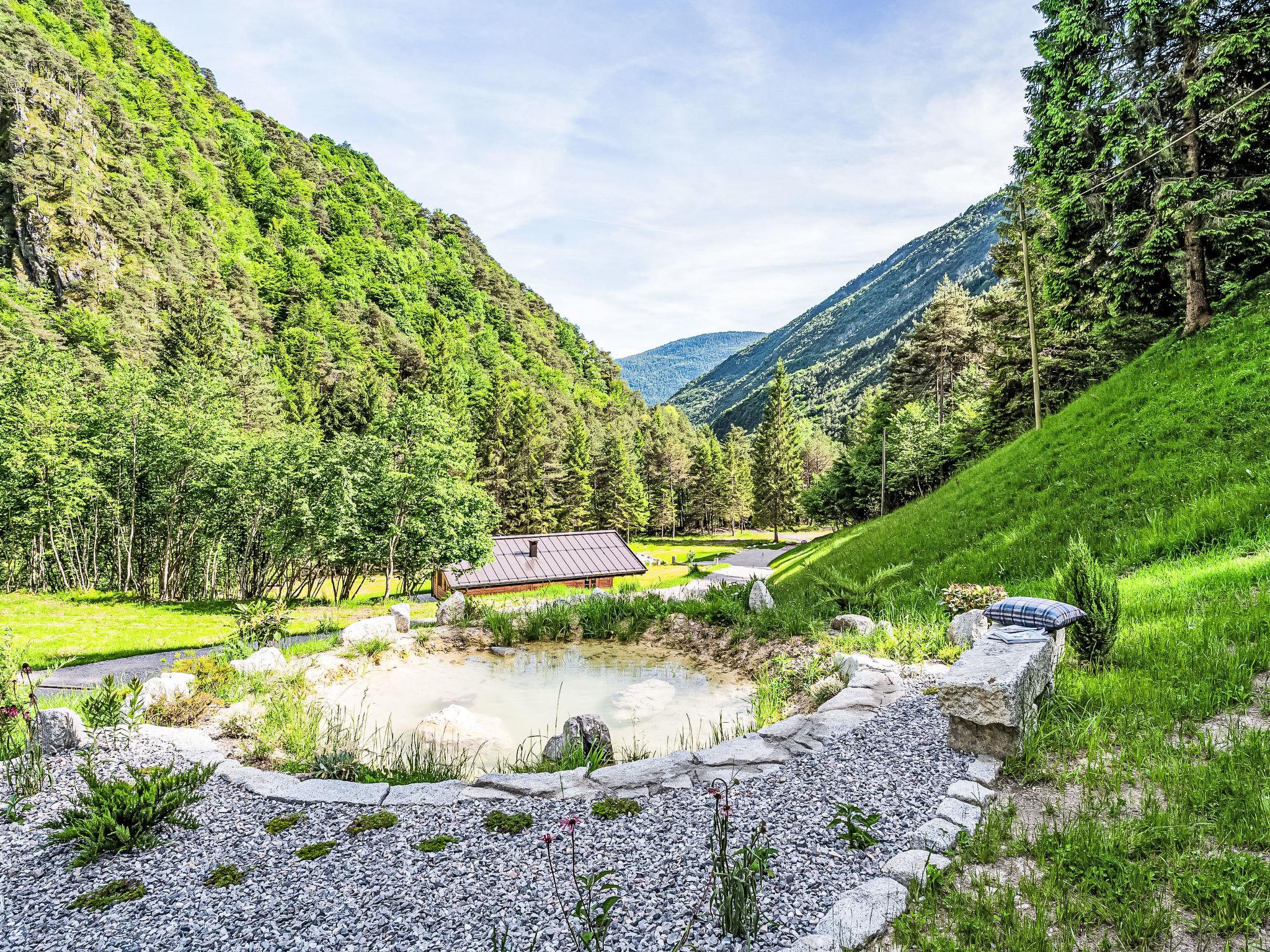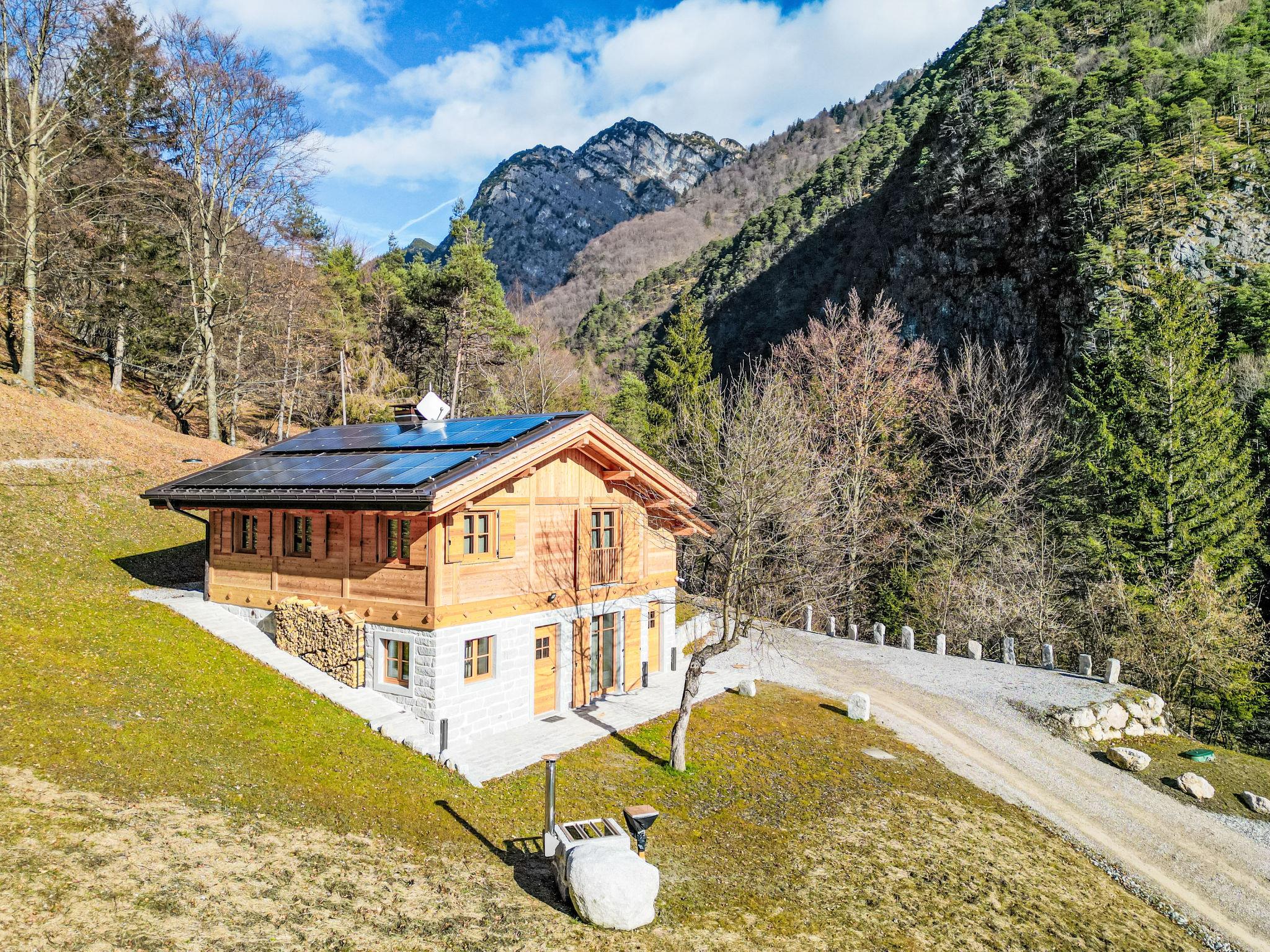 Caputel de Sant'Antoni: Cosy, luxurious chalet "La Granda e la Piciola", surrounded by trees and meadows. 7 km from the centre of Stenico, in a secluded, quiet position, 20 m from the edge of the forest, 26 km from the skiing area, in the countryside, in the woods, south-east facing position. For shared use: natural state property, lawn for sunbathing, natural pond. Linen change weekly (suppl. charge extra). Towel change weekly (suppl. charge extra). Room cleaning weekly on request (extra). Parking (for 2 cars) at the house. Grocery 7 km, supermarket 7 km, restaurant 3.9 km, bar 3.9 km, pub garden 3.9 km, bus stop 15 km. Gondola lift 26 km, skisport facilities 26 km. Nearby attractions: Comano Terme 15 km, Pinzolo 26 km, Falesie del Limarò 15 km. Well-known ski regions can easily be reached: Pinzolo - Madonna di Campiglio 26 km, Andalo 30 km. Well-known lakes can easily be reached: Lago di Molveno 23 km, Lago di Garda 40 km. Hiking paths: Parco Adamello Brenta. Please note: car recommended. Guarded residence. Animals in the neighbourhood.