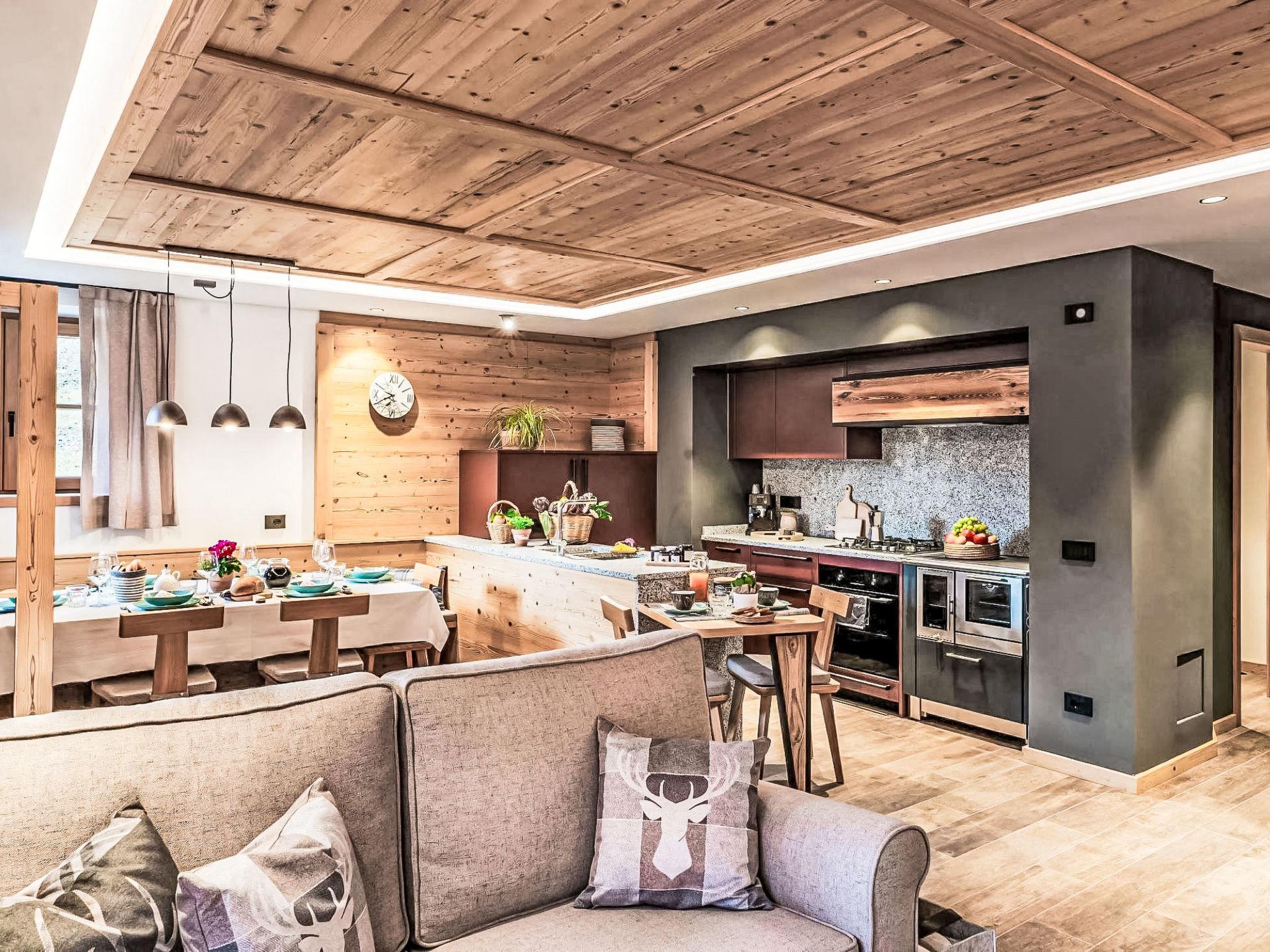 "Baita La Granda e Baita la Piciola", 5-room chalet 186 m2 on 2 levels, on the ground floor, south-east facing position. Spacious and bright, modern and wooden furniture furnishings: living room with open-hearth fireplace and satellite TV (flat screen). Exit to the garden, to the patio, south facing position and east facing position. Luggage room with hand-basin. 1 double bedroom with TV. Kitchen (oven, Gas stove, 4 gas rings, toaster, kettle, freezer, electric coffee machine) with bar, dining table. Exit to the garden, to the patio, south facing position and east facing position. 2 showers/bidet/WC. Gas heating, floor heating. Upper floor: 3 double bedrooms. Shower/bidet/WC, double hand-basin. Gas heating, floor heating. Patio, large garden, south facing position and, east facing position. Barbecue, deck chairs (9), sitting area. Very beautiful panoramic view of the mountains and the countryside. Facilities: baby cot for up to 2 year olds, hair dryer, logs (free). Parking (4 cars). Please note: non-smoking house. Maximum 1 small pet/ dog allowed. Private entrance, fire extinguisher, no lift. No internal connecting door between the separated properties. IT022182C2B9MCEP5O,IT022182C2Y6Z8E4IG