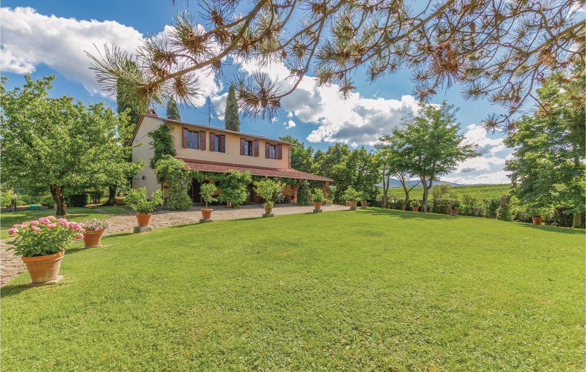 Hold en skøn ferie i hjertet af Toscana, hvor I finder dette store feriehus med privat swimmingpool og et stort udendørs areal, kun 36 km fra Arezzo, guldets og antikviteternes by, og 36 km fra den skønne by Firenze, i nærheden af Balze. Huset har en storslået beliggenhed og en smuk panoramaudsigt over det omkringliggende landskab fra verandaen, helt perfekt til en lækker frokost eller aftensmad udendørs eller til at læse en god bog. I kan tilberede lækker pizza i den udendørs træovn, der står til jeres rådighed sammen med en grill. Til huset hører også et udendørs badeværelse med bruser og vaskemaskine. På grunden ligger et lille aflåst redskabsskur. Adgang til huset sker via en elektrisk port.
