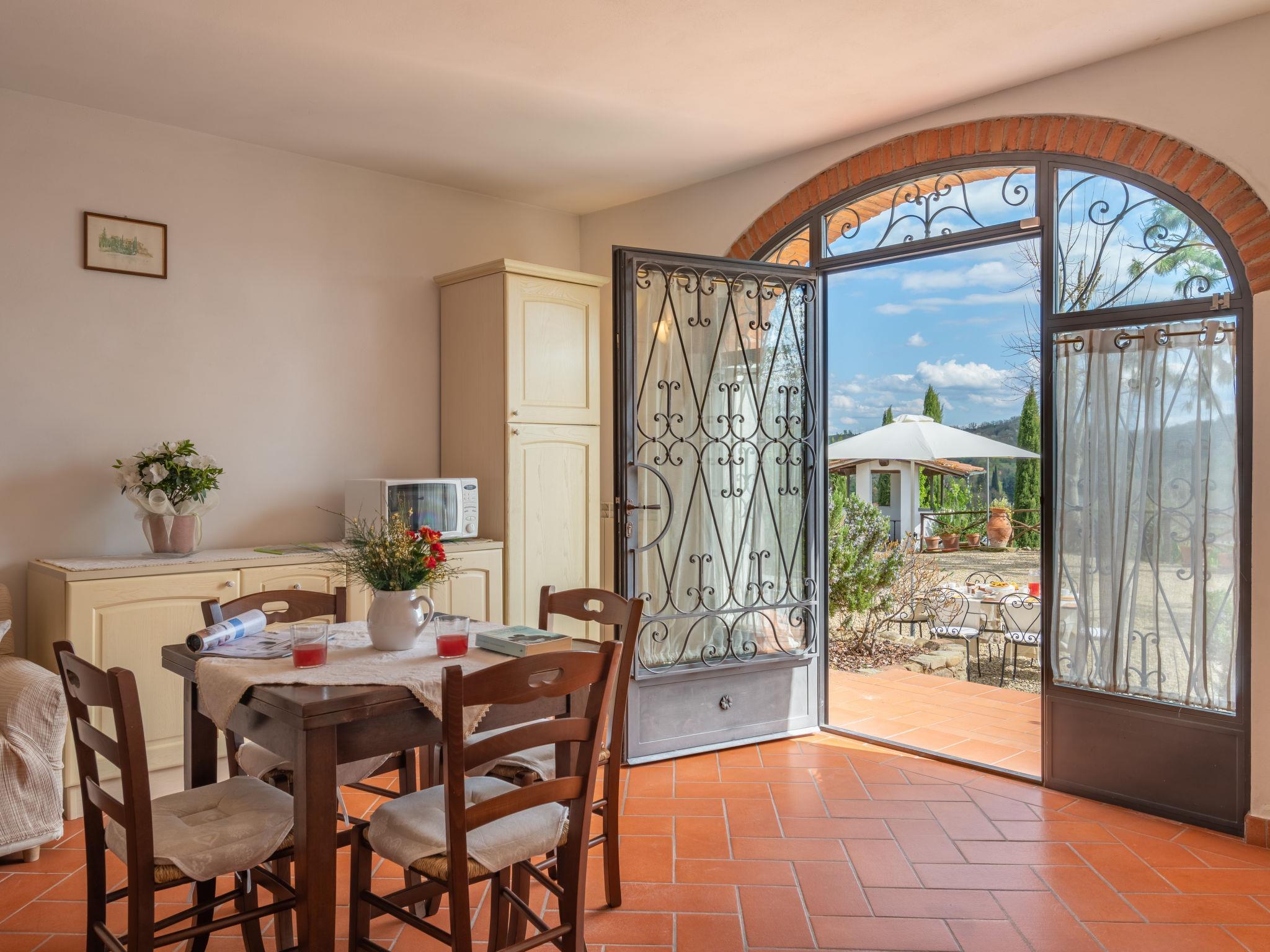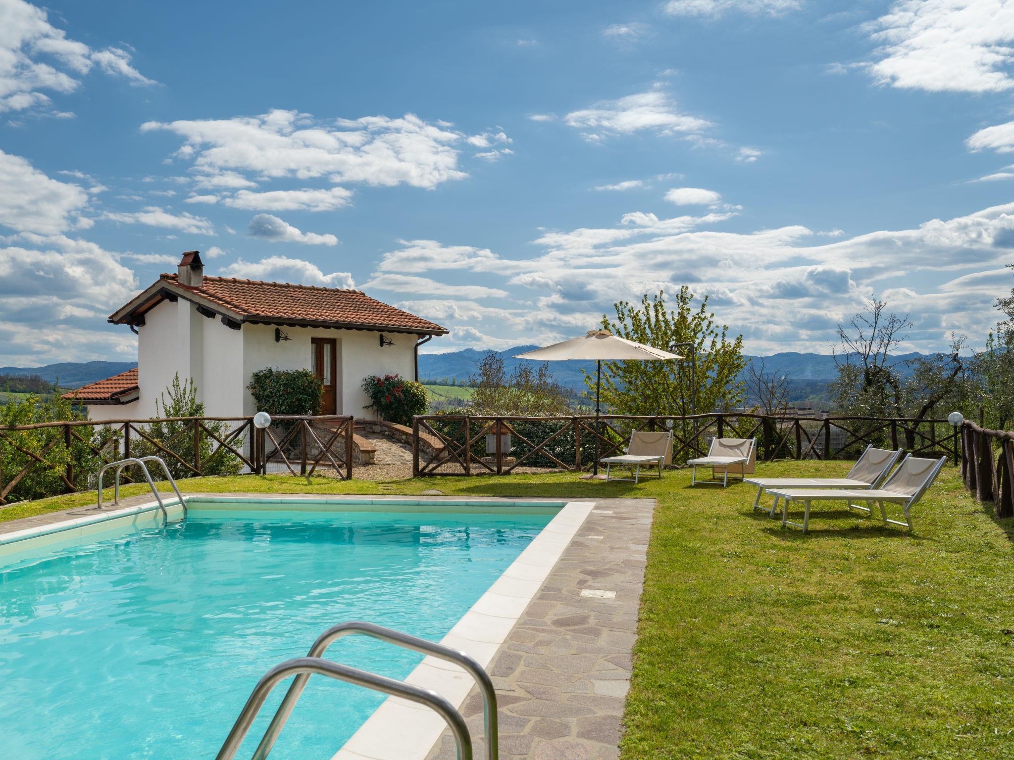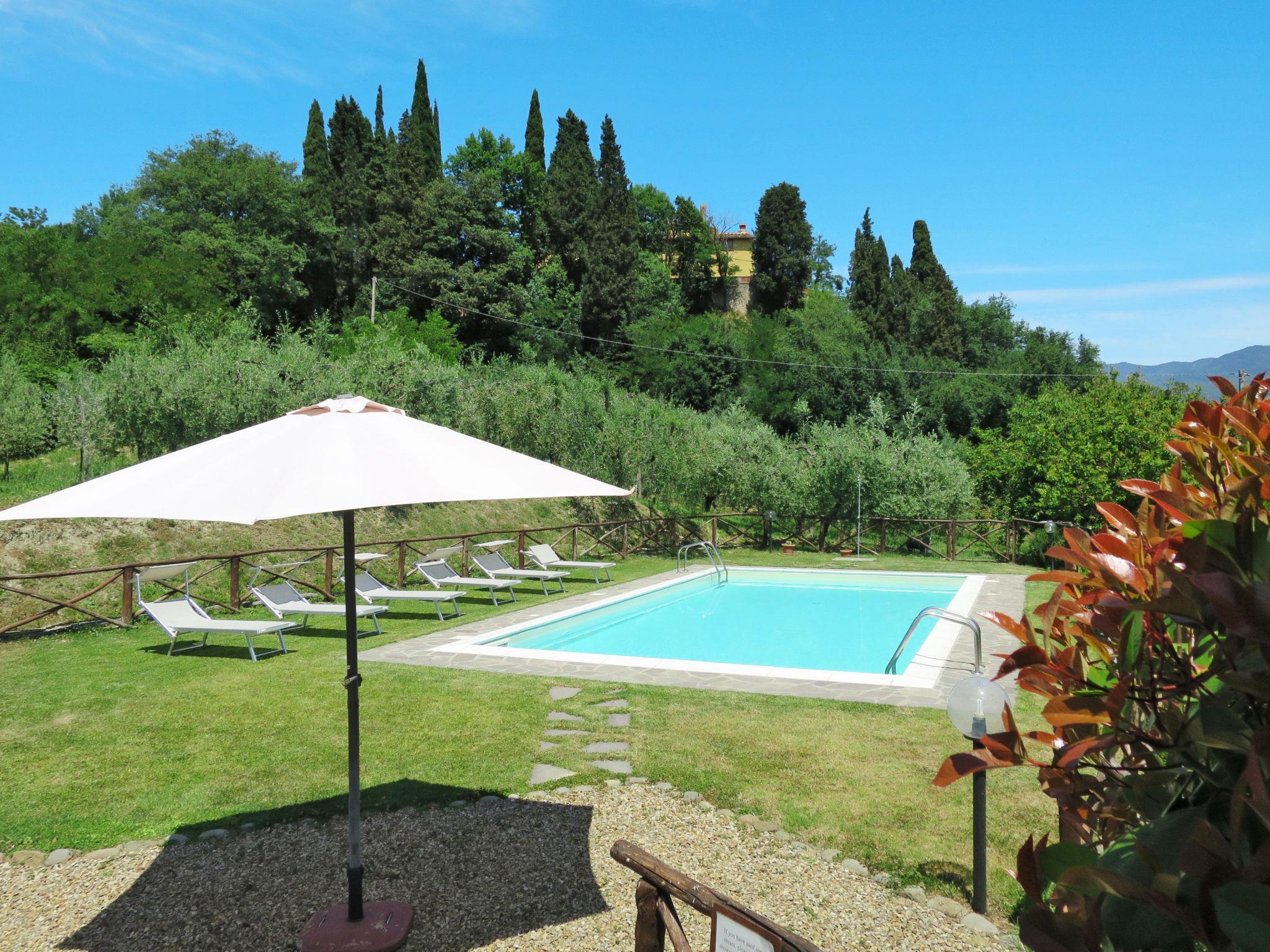 Country house "Melograno". 800 m from the centre of Terranuova Bracciolini, on the outskirts, 40 km from the centre of Arezzo, 52 km from the centre of Firenze. For shared use: property 10'000 m2 (fenced), orchard. Private: swimming pool (10 x 5 m, seasonal availability: 01.May. - 30.Sep.). Outdoor shower. Heating to be paid on the spot, heating available only from 01.Nov. - 07.Apr.. Parking on the premises. Shop 800 m, supermarket 600 m, bus stop 1 km, railway station "Montevarchi" 7 km. Golf course (3 hole) 16 km. Nearby attractions: Loro Ciuffenna 6.5 km, Castelfranco Piandiscò 14.5 km, Gaiole in Chianti 25 km, Radda in Chianti 28 km, Greve in Chianti 34 km. Please note: the owner lives on the same property.