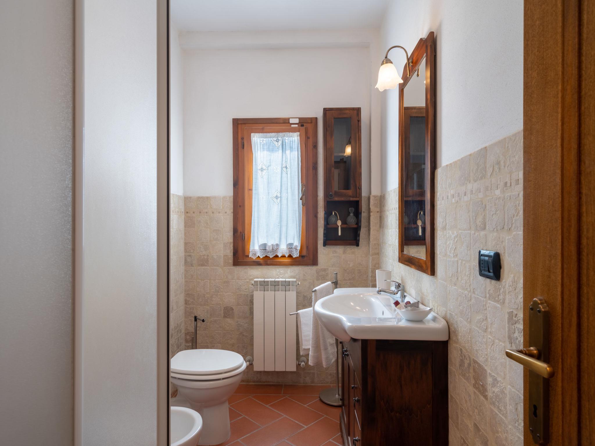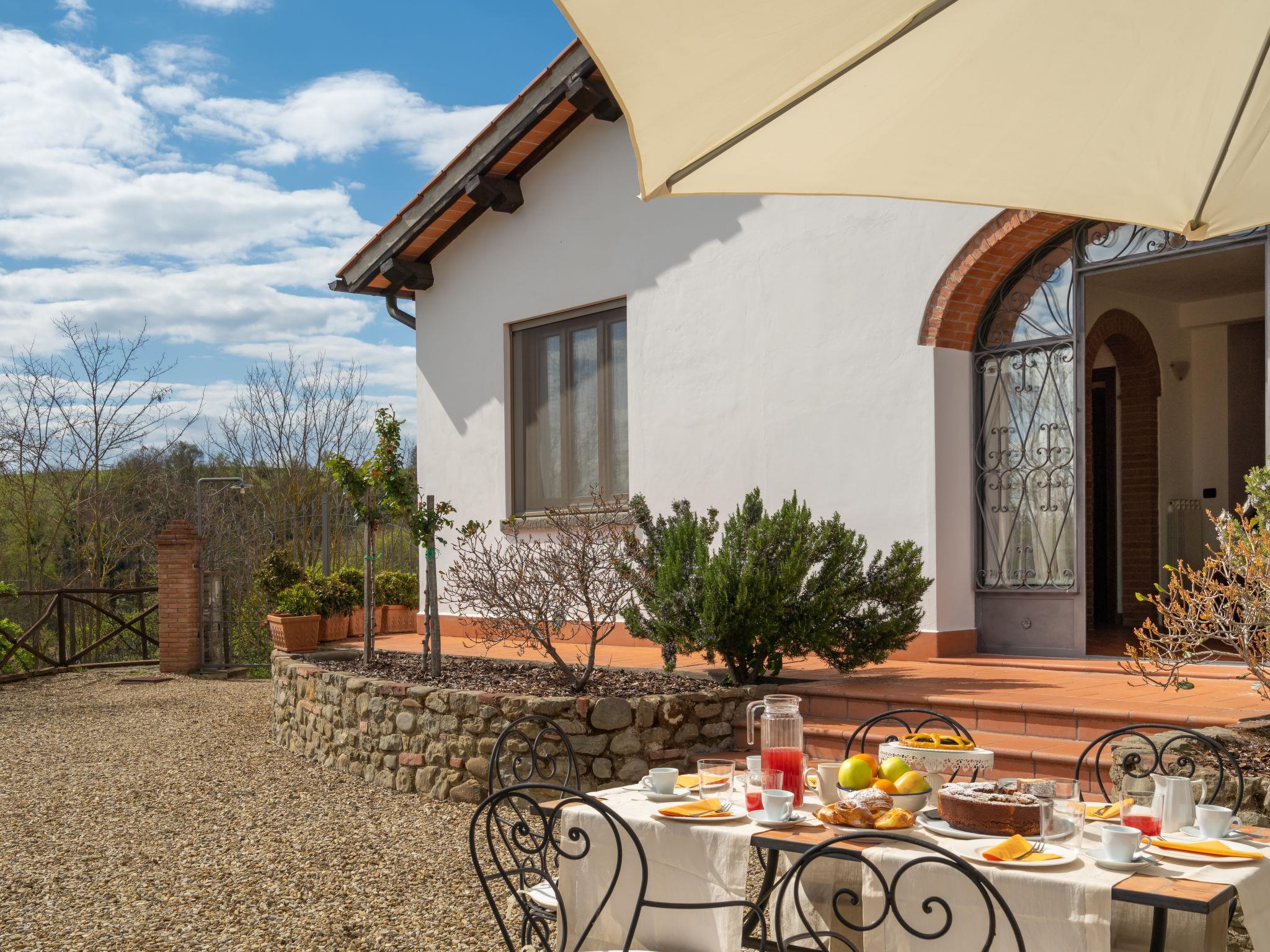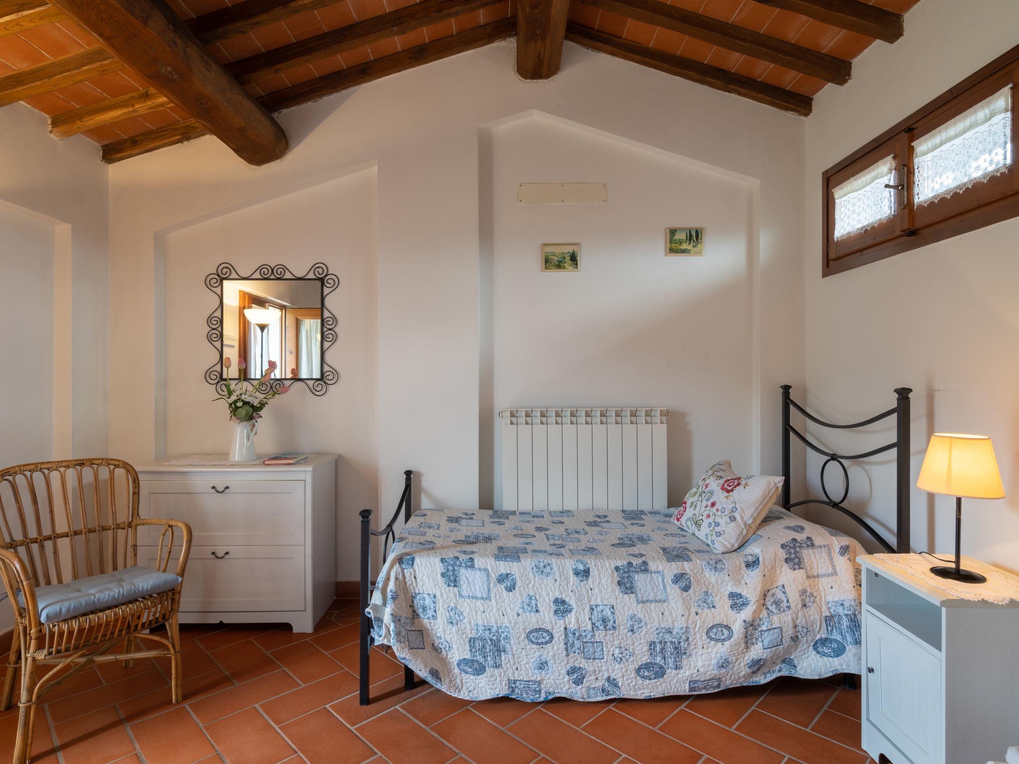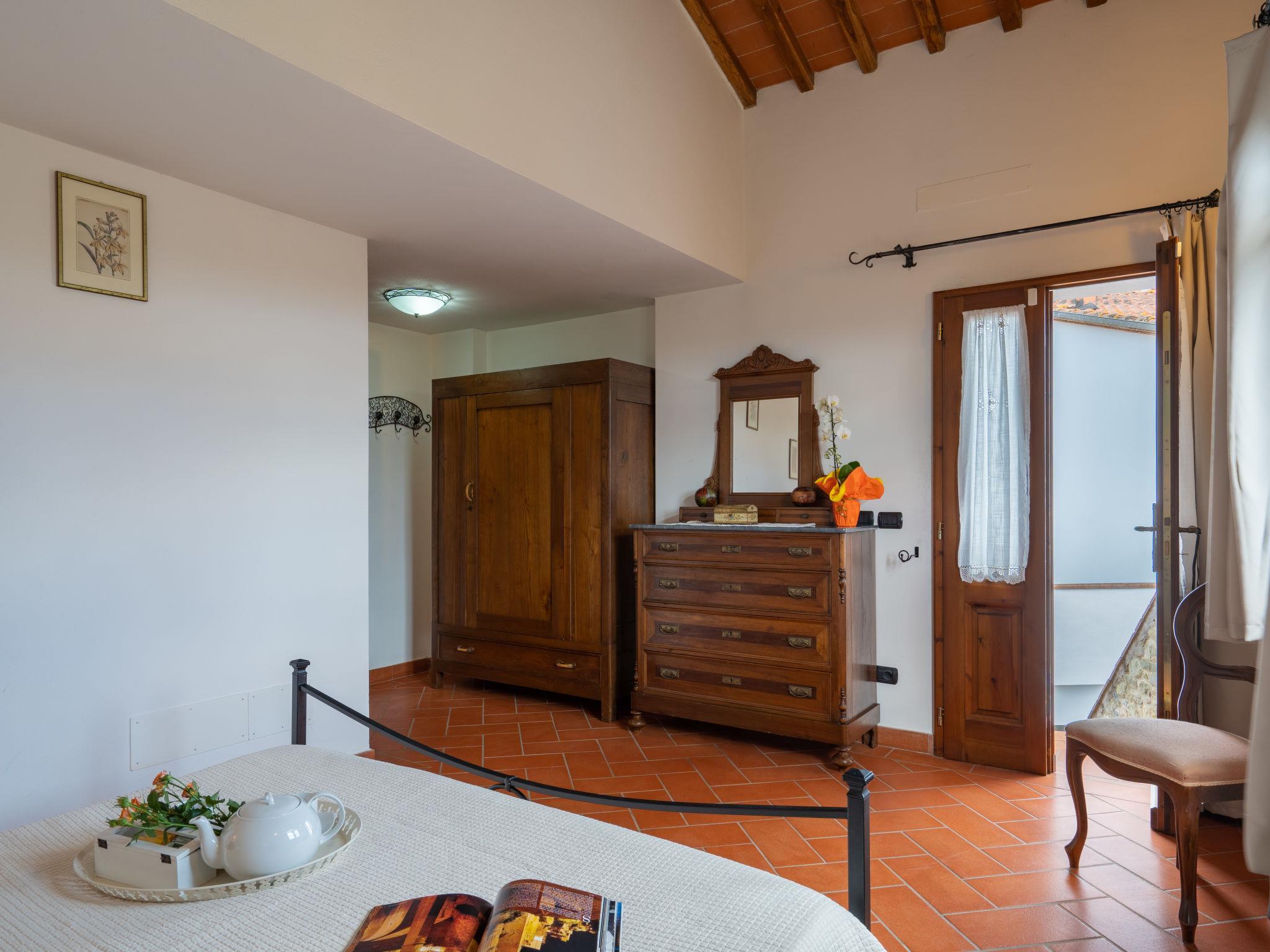 Country house "Melograno". 800 m from the centre of Terranuova Bracciolini, on the outskirts, 40 km from the centre of Arezzo, 52 km from the centre of Firenze. For shared use: property 10'000 m2 (fenced), orchard. Private: swimming pool (10 x 5 m, seasonal availability: 01.May. - 30.Sep.). Outdoor shower. Heating to be paid on the spot, heating available only from 01.Nov. - 07.Apr.. Parking on the premises. Shop 800 m, supermarket 600 m, bus stop 1 km, railway station "Montevarchi" 7 km. Golf course (3 hole) 16 km. Nearby attractions: Loro Ciuffenna 6.5 km, Castelfranco Piandiscò 14.5 km, Gaiole in Chianti 25 km, Radda in Chianti 28 km, Greve in Chianti 34 km. Please note: the owner lives on the same property.