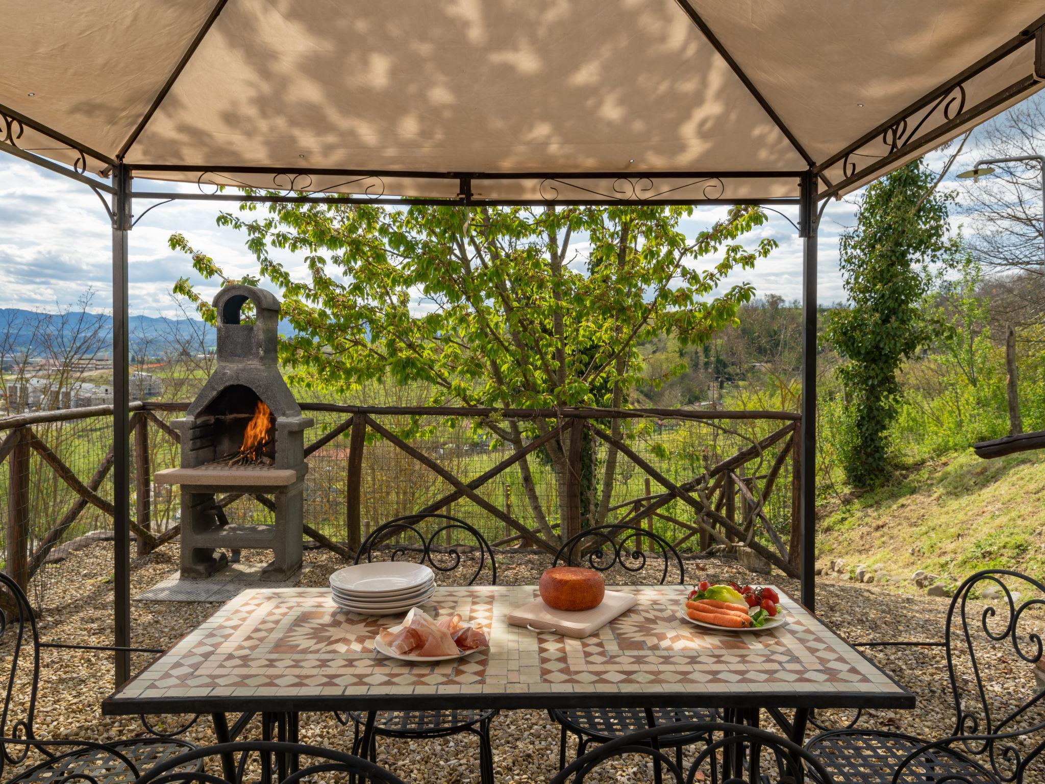 5-room house 116 m2 on 3 levels. Renovated, rustic and cosy furnishings: living room with satellite TV. 1 room with 1 french bed (160 cm). Dining room with dining table. Open kitchen (oven, dishwasher, 4 gas rings, toaster, microwave, freezer, electric coffee machine). Shower/bidet/WC. Upper floor: 1 room with 1 french bed (160 cm). Exit to the garden. Shower/bidet/WC. Heating. 2nd upper floor: 1 room with sloping ceilings with 2 beds (80 cm). Exit to the garden. Patio, garden 500 m2. Barbecue (portable), deck chairs. Panoramic view. Facilities: washing machine, iron, children's high chair, baby cot for up to 2 year olds. Internet (WiFi, free). Parking (fenced 2 cars) at 30 m. Please note: non-smoking house. Smoke alarm, fire extinguisher. IT051039C26QCIZXMH