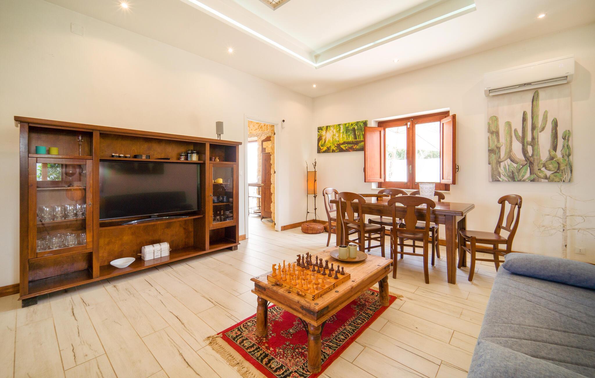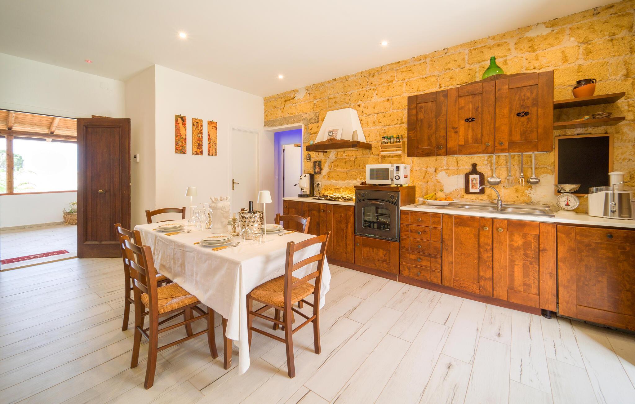 Tag den udvidede familie under armen og rejs til Terrasini, hvor denne perle af en bolig venter jer til årets bedste ø-ferie. Udover de mange kvadratmeter venter jer en flot indretning, der kombinerer de rustikke materialer og møbler med de moderne faciliteter, der gør jeres hverdag til en leg. Efter en begivenhedsrig dag kan I tilberede familiens livretter i det landlige køkken og dække op ved spisebordet, hvis vejret ikke er helt i top.
