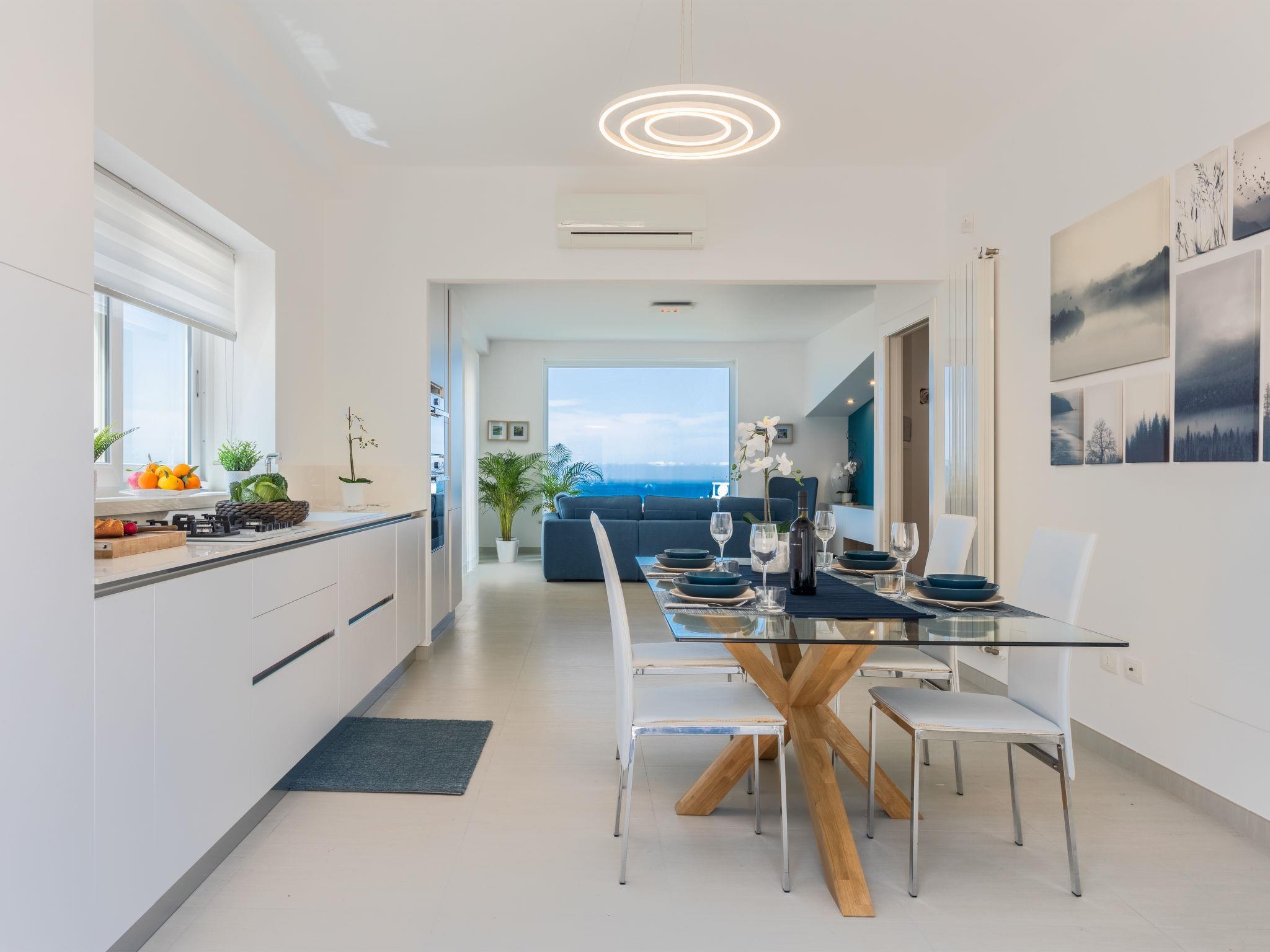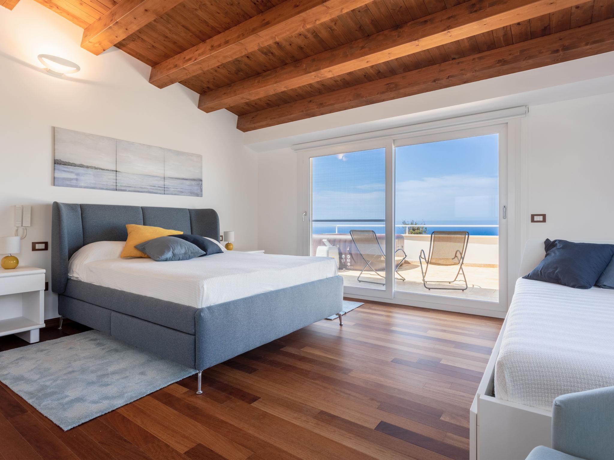 "Quirat Superior", 3-room apartment 130 m2 on 1st floor. Comfortable and tasteful furnishings: living room with panoramic window with TV (flat screen), air conditioning and forced-air heating. Exit to the terrace. 1 double bedroom with shower/bidet/WC, air conditioning and forced-air heating. Exit to the balcony, to the terrace. 1 double bedroom with air conditioning and forced-air heating. Exit to the terrace. Kitchen (5 hot plates, oven, dishwasher, toaster, kettle, microwave, electric coffee machine) with dining table, air conditioning. Exit to the terrace. Shower/bidet/WC. Heating, forced-air heating. Heating available only from 01.12. to 31.03. Parquet floors. Balcony 7 m2, large terrace 100 m2, terrace 20 m2. Terrace furniture. Beautiful panoramic view of the sea and the mountains. Facilities: washing machine, iron, mosquito net, children's high chair, baby cot for up to 2 year olds (extra), hair dryer. Internet (WiFi, free). Parking (1 car). Please note: smoke alarm, fire extinguisher. In a double bedroom there is a hydromassage tub on the terrace. IT082071C2BI9JRJ4Q