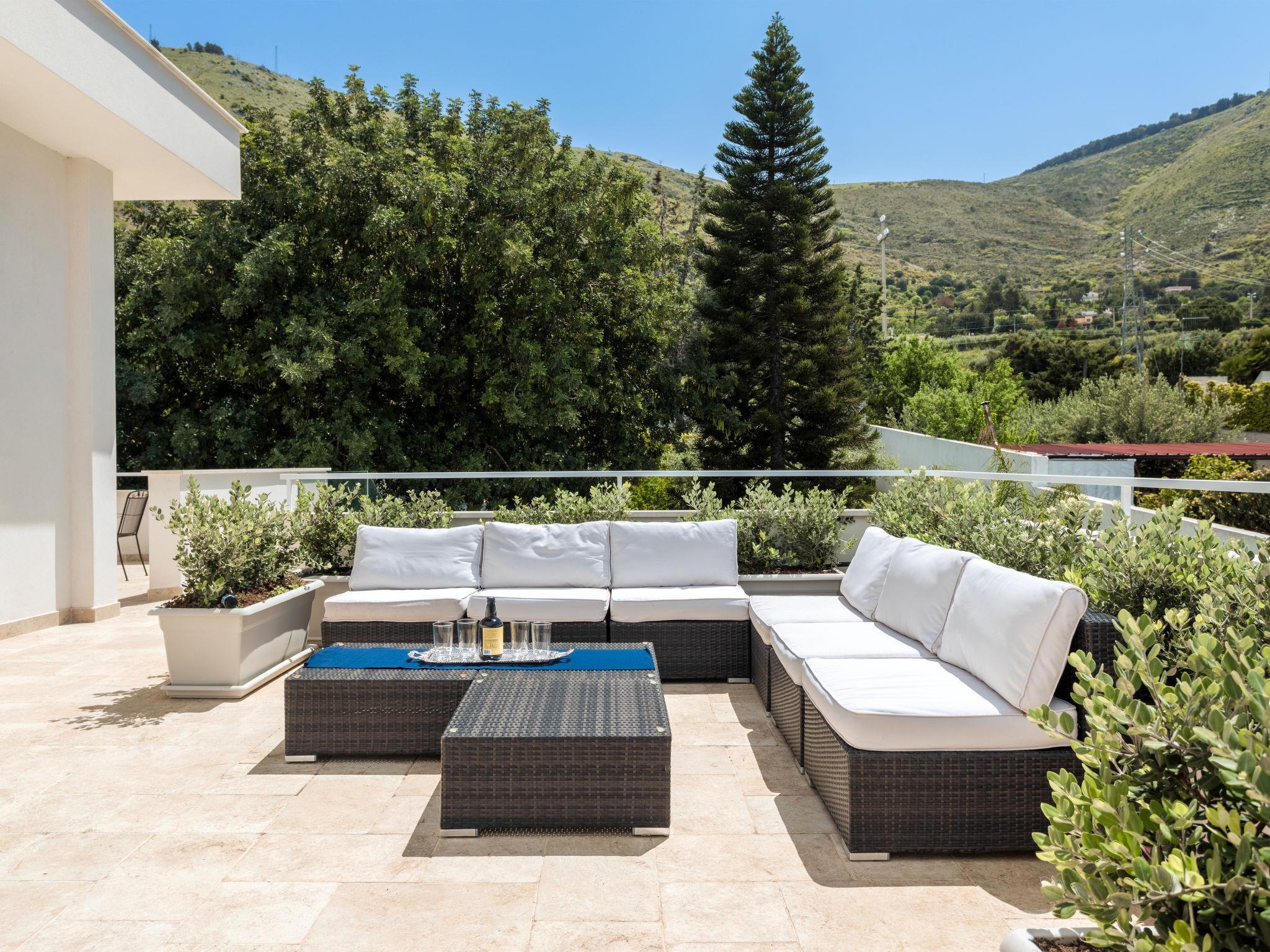 2-family house, built in 2023. 2 km from the centre of Terrasini, 35 km from the centre of Palermo, in a quiet, sunny position residential area (villas), 3 km from the sea, 3 km from the beach. In the house: WiFi, heating available only from 01.Dec. - 31.Mar., bicycle rental. Available: canoe (extra). Cook (extra). Stepped path (21 steps) to the house. Parking on the premises. Supermarket 2.5 km, restaurant 1.5 km, bar 2.5 km, bus stop 1.5 km, railway station "Terrasini/Cinisi" 3 km, sandy beach "La Praiola" 3 km, rocky beach "Cala Maidduzza" 5 km. Tennis 800 m. Nearby attractions: Borgo Parrini 12 km, Parco Archeologico di Segesta 43 km, Trapani/Traghetti per Isole Egadi 72 km, San Vito lo Capo 74 km, Saline di Marsala 83 km, Erice 84 km. Hiking paths: Riserva Naturale dello Zingaro 45 km, Riserva Naturale Monte Pecoraro 14 km. Please note: car recommended. Residence with electric gates. The owner lives in the same residence. Property ref. IT9065.230.1 is situated on the same property.