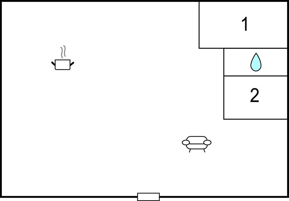 Komb. spisestue/køkken 20m2 - 2 Sovepladser. (Sofa, madras eller lignende).