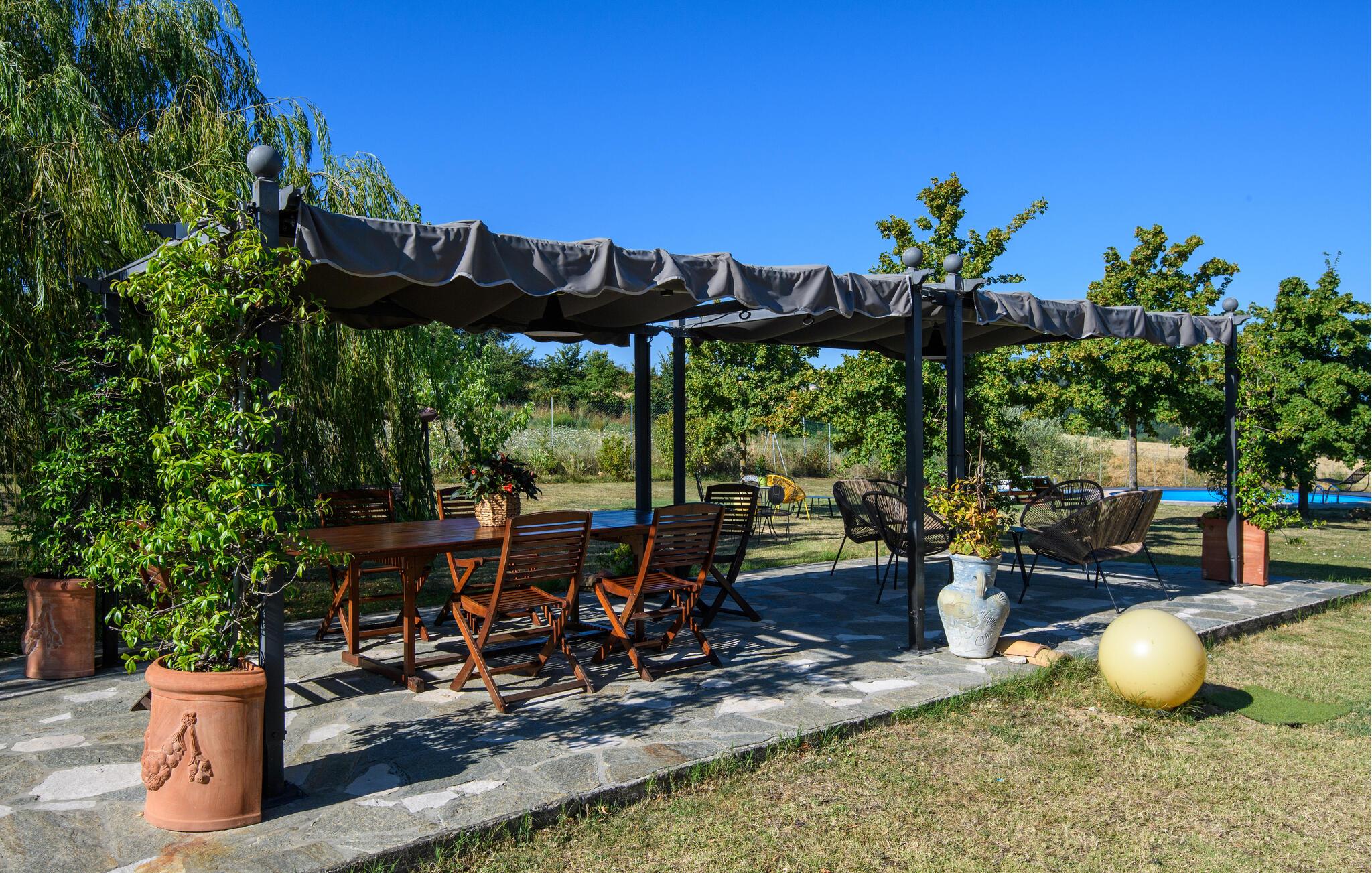 Slap af i denne charmerende ferielejlighed med have, pool og malerisk udsigt over Marche-bakkerne.