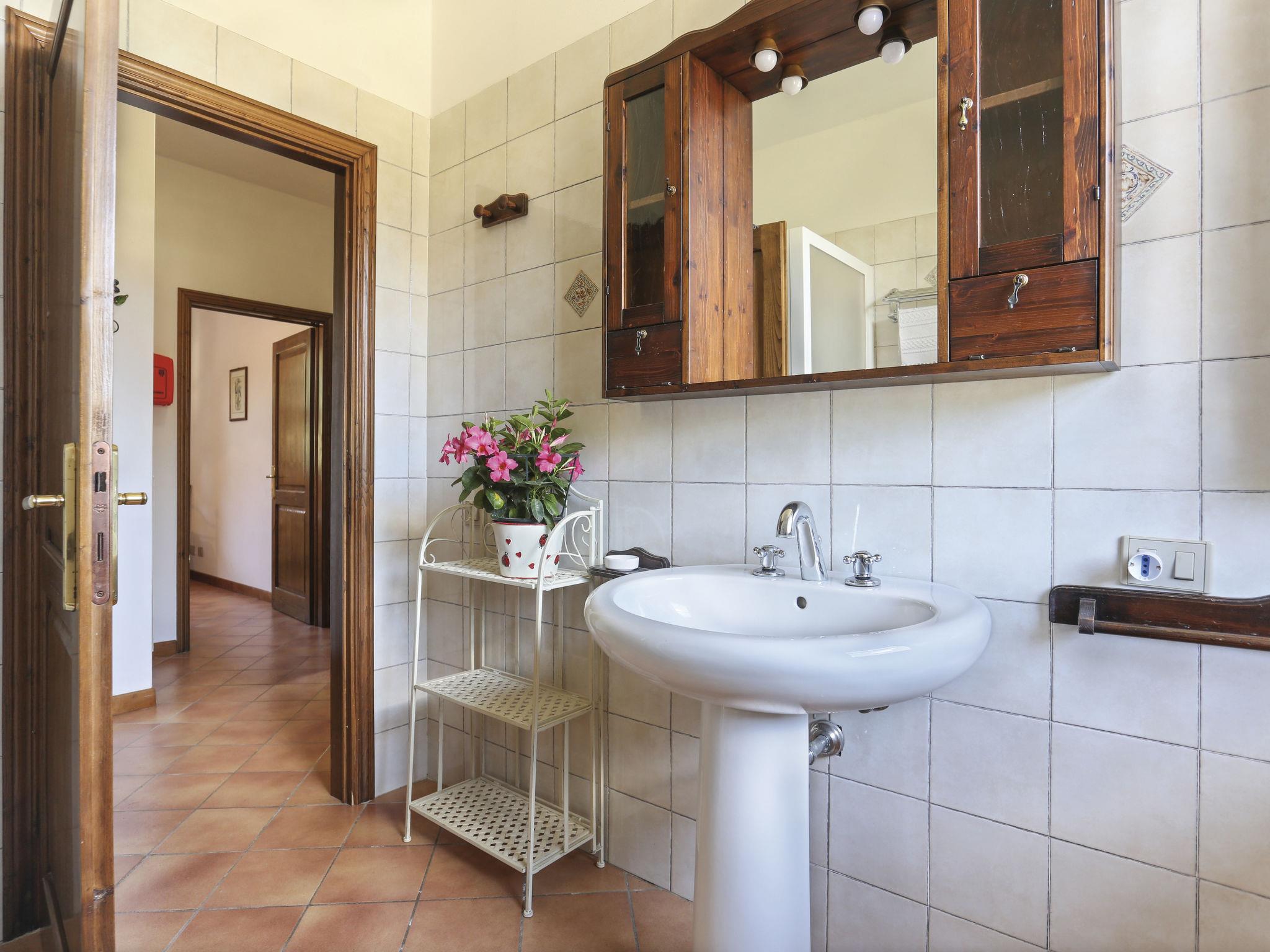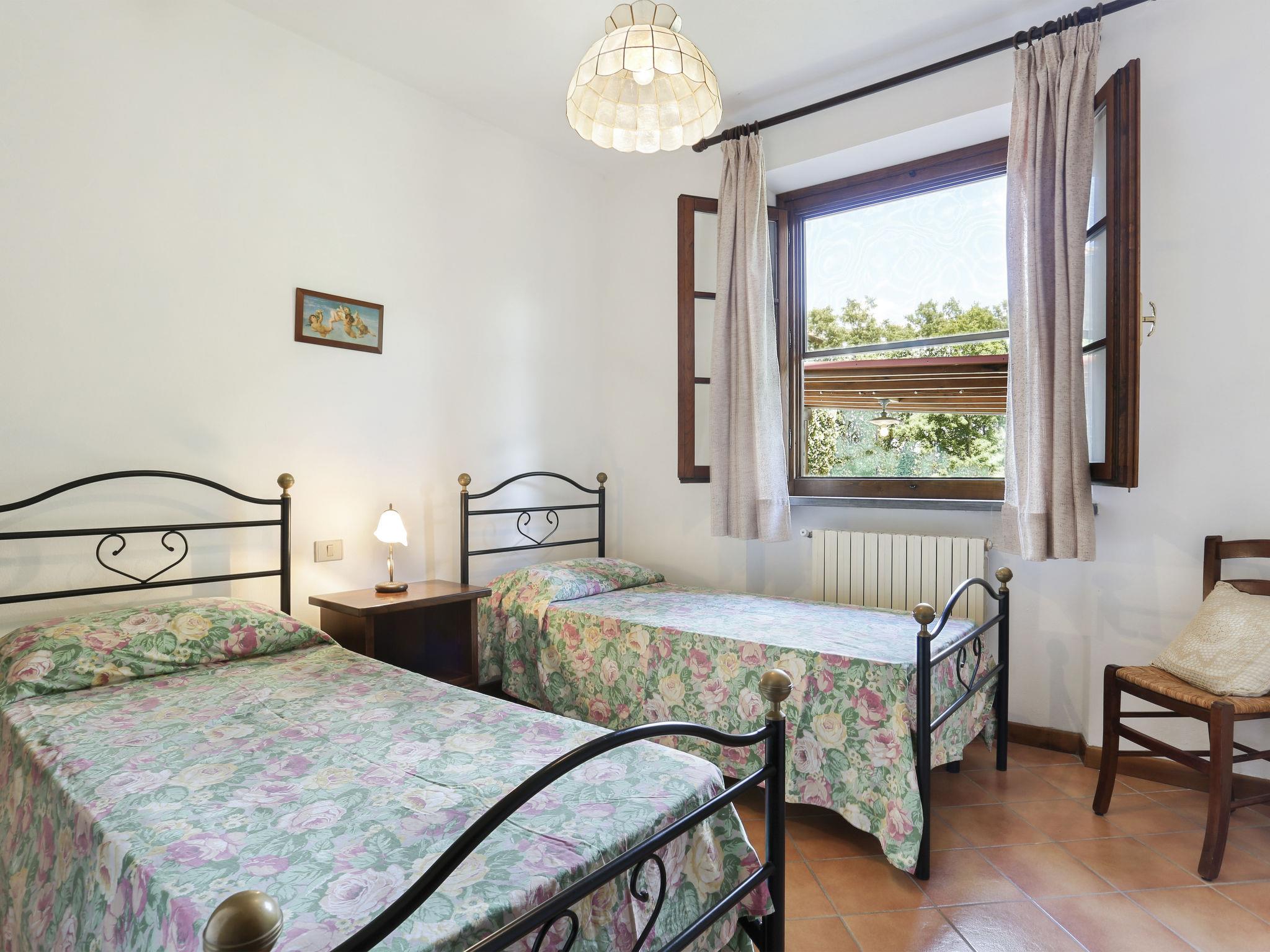 Resort "La Cerretella", built in 1800. 9 apartments in the residence. 6 km from the centre of Terricciola, 5 km from the centre of Laiatico, 45 km from the centre of Pisa, 43 km from the sea, in the countryside. For shared use: property 50 ha with trees, meadow, swimming pool (16 x 8 m, seasonal availability: 09.May. - 03.Oct.). Children's pool, outdoor shower, tennis (extra), table tennis, terrace, barbecue, children's playground. 400 m long motor access (via unmade road). Parking on the premises. Shop 5 km, supermarket 5 km, bus stop 400 m, sandy beach "Cecina Mare" 43 km. The owner does not accept any groups.