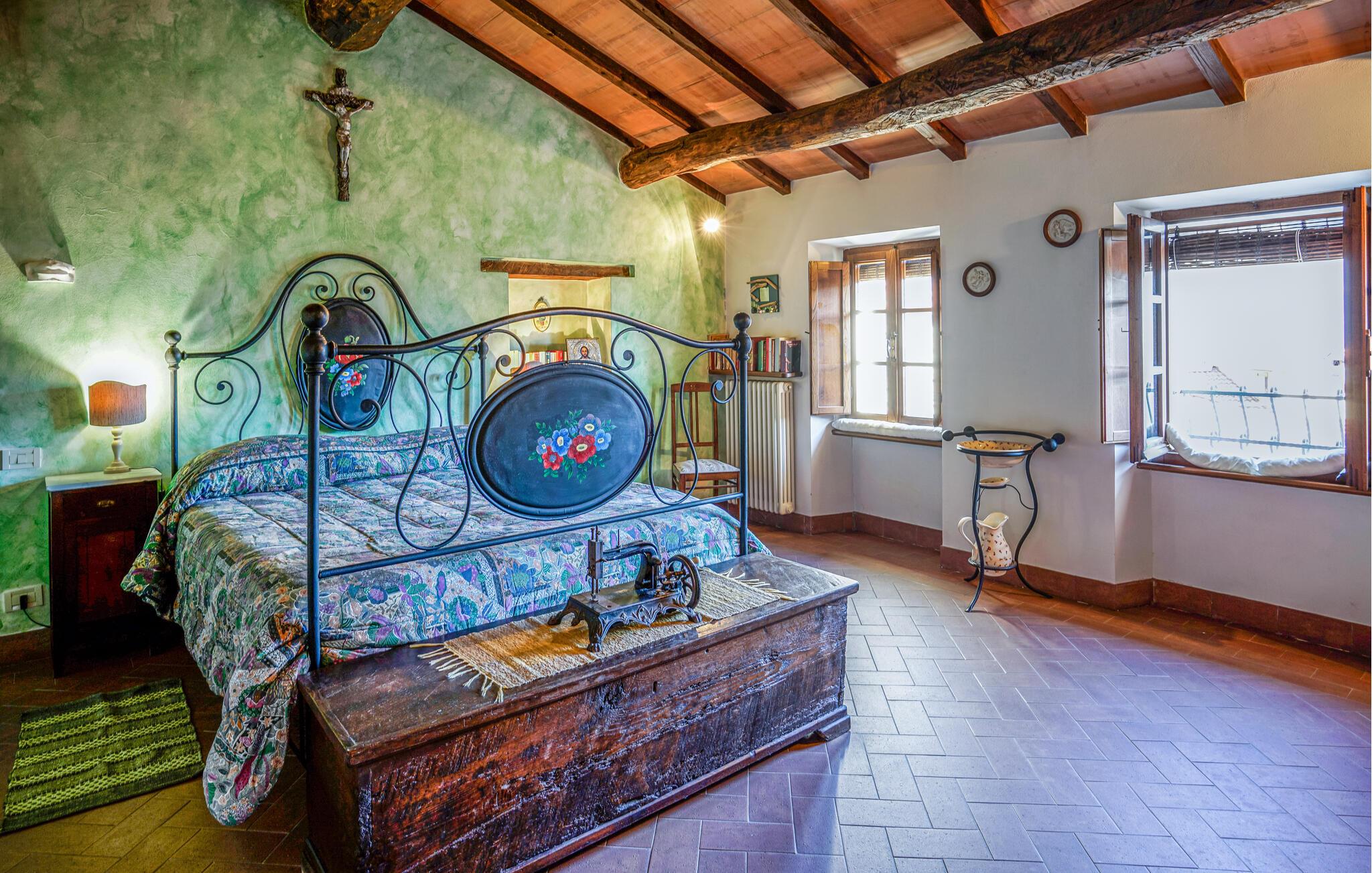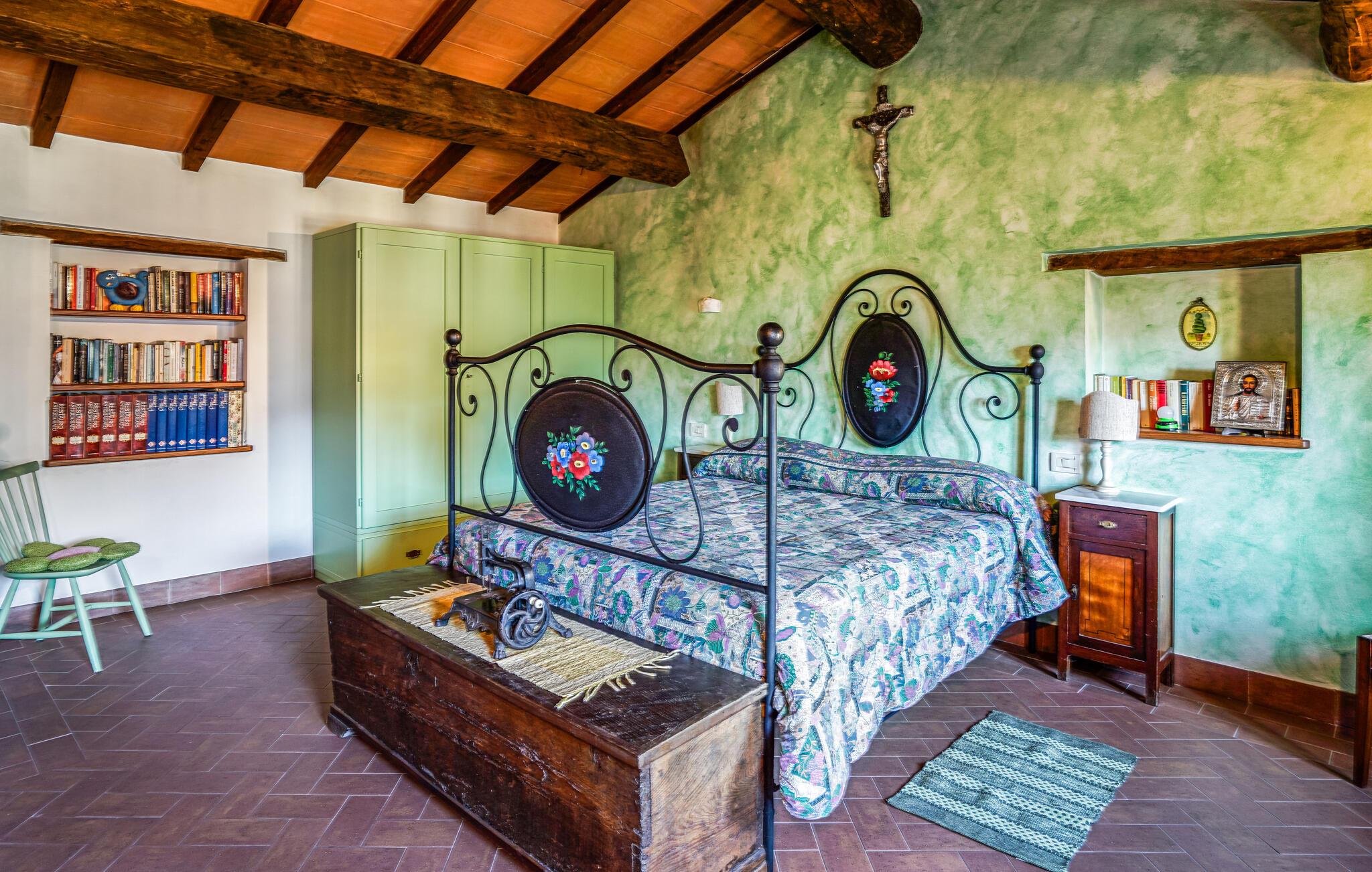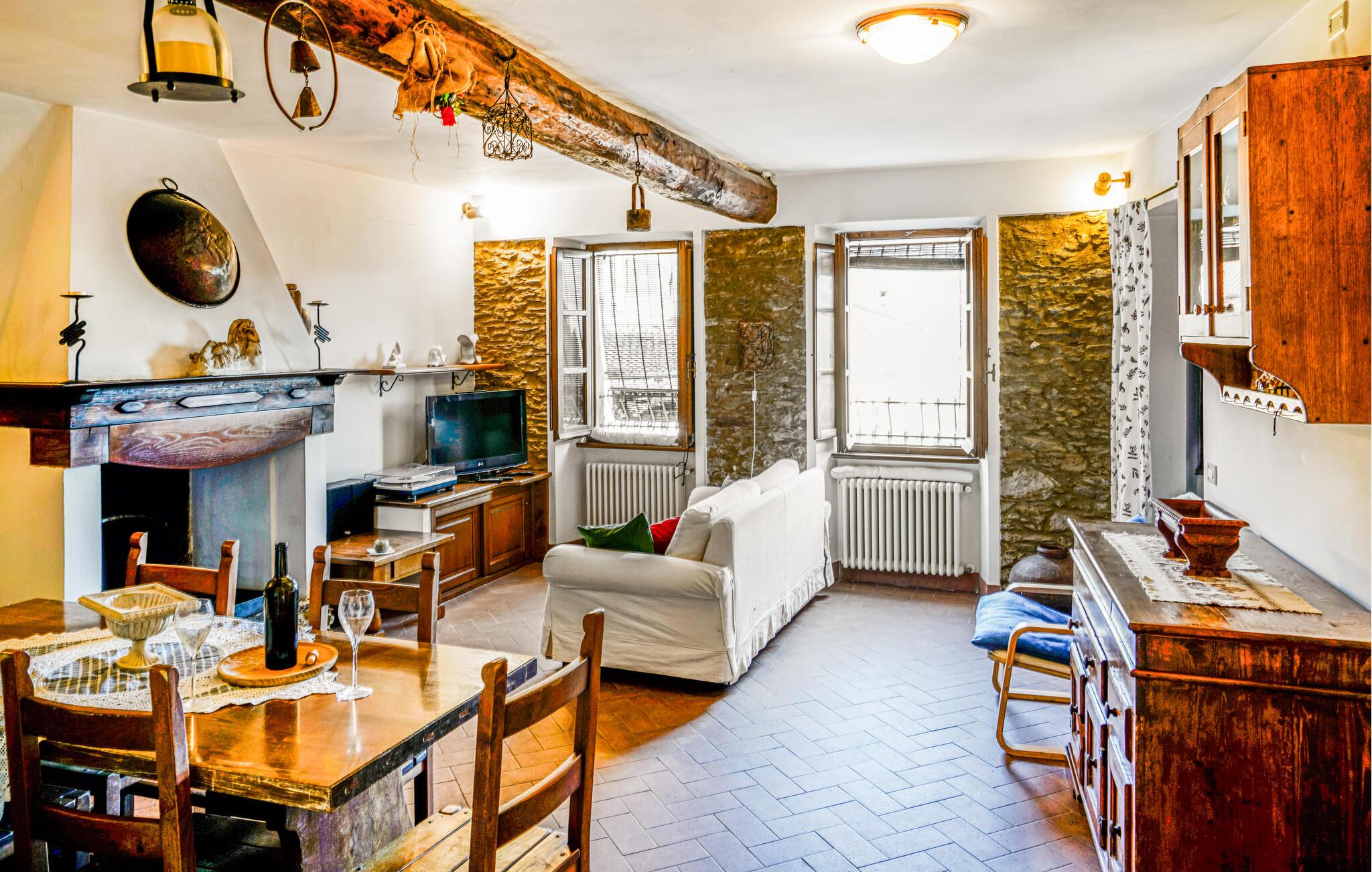 Uanset om I søger natur, kultur eller afslapning, venter en varieret ferie jer her. jeres komfortable indkvartering kombinerer rustik charme med en indbydende atmosfære. En åben pejs lægger op til hyggelige aftener, og det traditionelle køkken giver de perfekte rammer for at tilberede regionale delikatesser. De kærligt møblerede værelser skaber en varm og indbydende kulisse for afslappende dage midt i de toscanske bjerge.