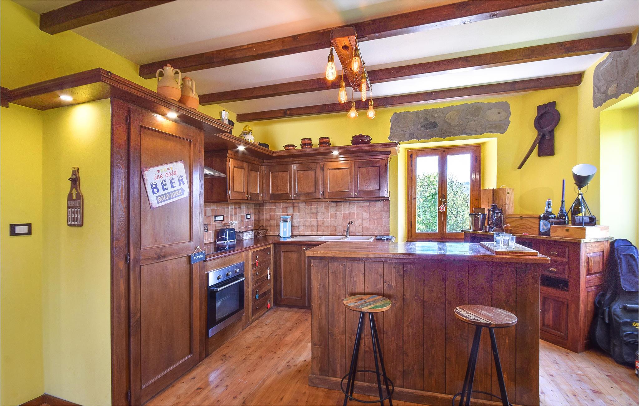 Her får I en ideel oase, hvor I kan tilbringe jeres familieferie i fred og ro. Find jer godt til rette i huset, der er spækket med træ- og stenelementer og nyd godt af de moderne faciliteter, der gør boligen så hjemlig. Værelserne er indbydende og skiller sig ud med deres varme farver og fine detaljer. Kun en kort gåtur fra huset finder I en skøn gård, som er ideel til børn og ellers kan de lege frit på de omkringliggende enge og i skoven. Udenfor finder I en grill, brændeovn, udendørskøkken og siddepladser. Så her kan I nyde de milde aftener over en lækker grillmiddag sammen med familien.
