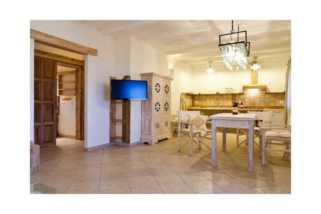 Lejlighed NICE på Sardinien Havepool / Havudsigt / Terrasse med have - Typisk sardinsk atmosfære - Bæredygtigt byggeri med træ og sardinsk sten - Kun få minutter fra butikker, restauranter og supermarkeder - Tæt på den smukke kyst og strande - Åbent køkken - Køleskab - Komfur - Kaffemaskine - Brødrister - Saftpresser - Opvaskemaskine - Gryder - Pander - Bestik - Glas - Tallerkener - Stue med sofahjørne (med sovefunktion) - 1 soveværelse - Dobbeltseng - 1 soveværelse - Dobbeltseng/Køjeseng - Sengelinned - Håndklæder - Badeværelse med bruser - Håndvask - Toilet - Hårtørrer - Vaskemaskine - Private terrasser - Have - Havepool - Udendørs bruser - Wi-Fi - TV - Aircondition - Grill - Varme og aircondition efter anmodning / mod gebyr - Gratis parkering - Ikke-ryger - Kæledyr tilladt (1 hund)