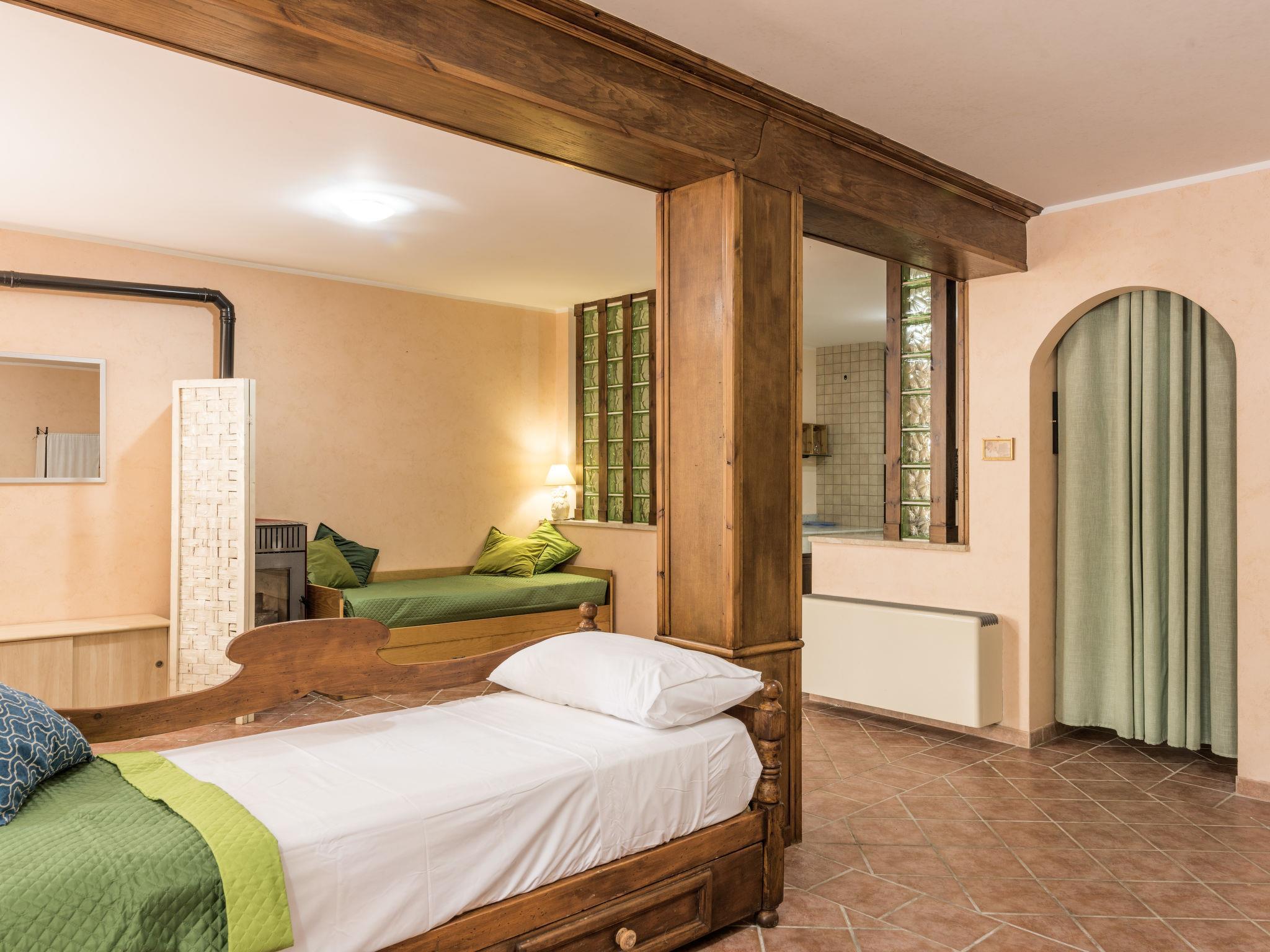 "Dimora Lucretili", 2-room apartment on the ground floor. Spacious, very rustic furnishings: living/dining room with 2 beds, 1 double bed, open-hearth fireplace, TV, flat screen and fan. Exit to the terrace. Kitchen (5 gas rings, electric coffee machine, Capsules for coffee machine (Bialetti) free). Shower/bidet/WC. Heating. Large terrace. Terrace furniture. Beautiful view of the countryside. Facilities: washing machine. Internet (WiFi). Please note: maximum 1 pet/ dog allowed. Smoke alarm, fire extinguisher. IT058087C2R7ZS22AN