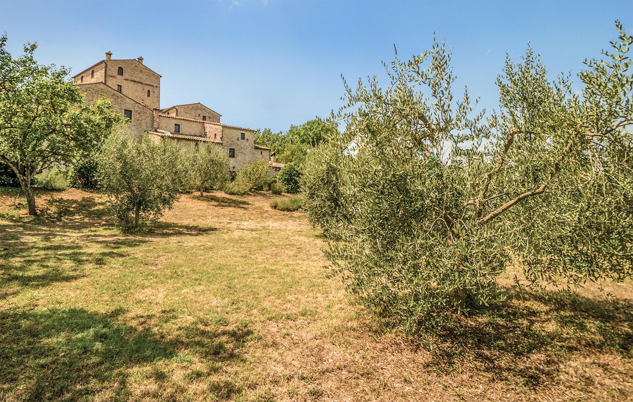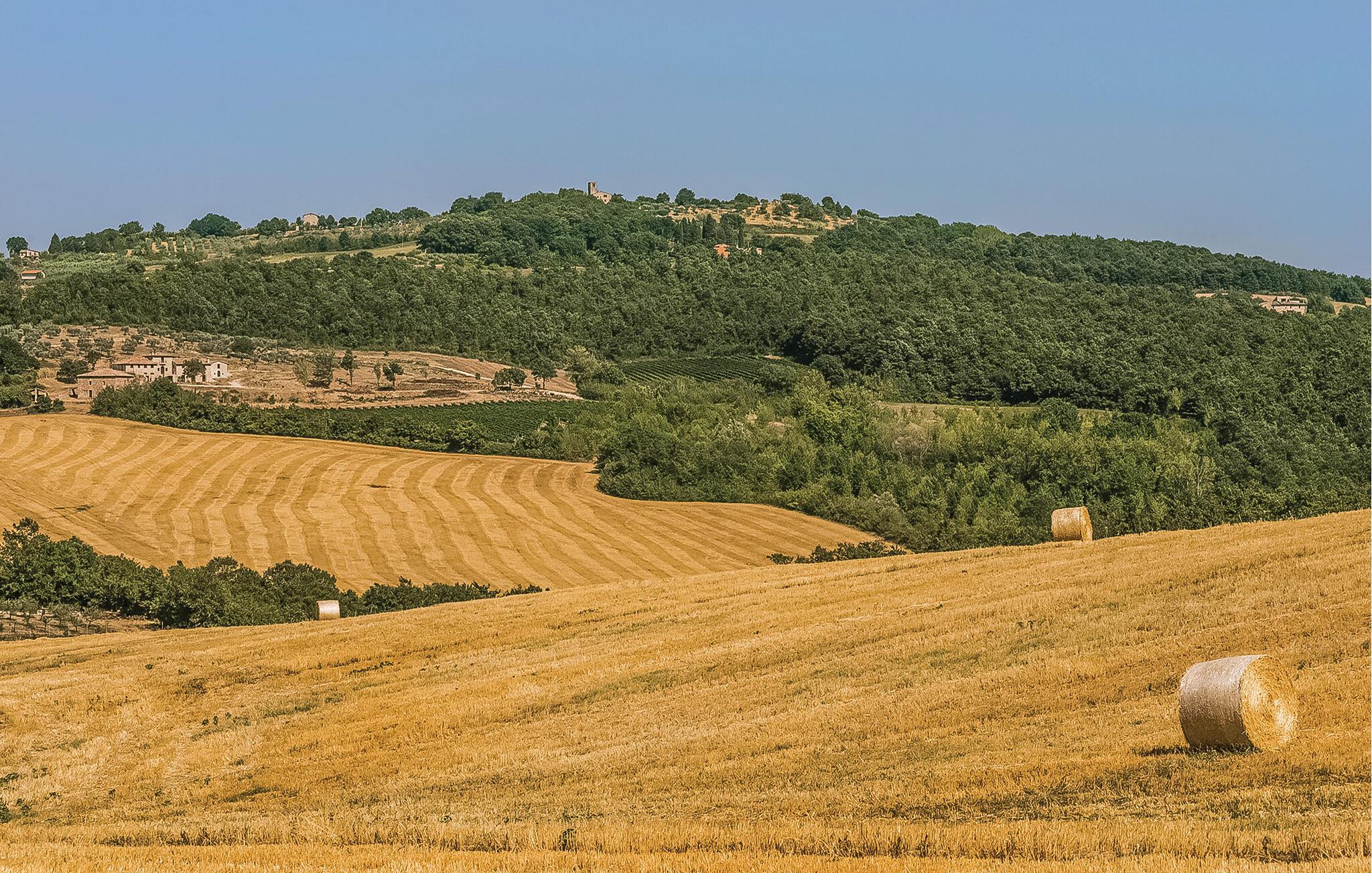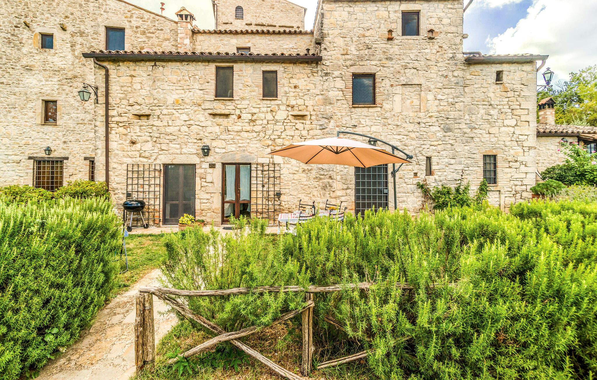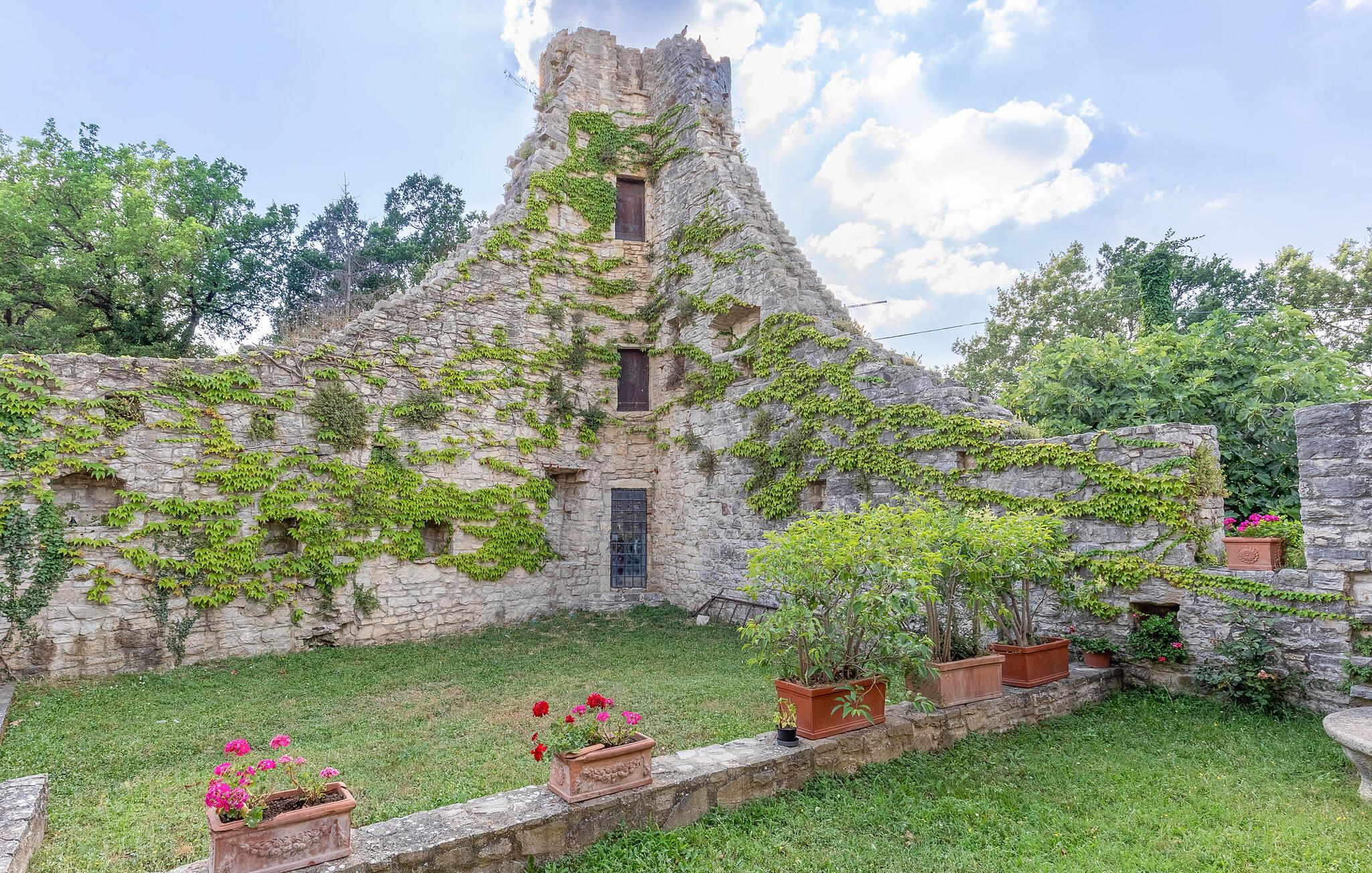 Karakteristisk ferielejlighed i en lille, befæstet middelalderbebyggelse, som romerne opførte hævet over en dal, ca. 7 km syd for Todi. I råder over en privat have med siddemuligheder og udsigt over dalen og ca. 3000 m² fælles haveområder med pool. Ideelt til at opdage de smukkeste byer i Umbrien og toscana. Nyd den flotte udsigtover det omgivende landskab helt til Todi. Rolig beliggenhed. Til fælles brug er der vaskemaskine og tørretumbler (begge mod mønter) i vagttårnet. Overdækket parkering. Se også IUP398, IUP351, IUP 637, IUP754 og IUS156. Udflugtsmål: I Todi er der butikker, 33 km til Orvieto, 37 km til Spoleto, 45 km til Perugia, 60 km til Trasimenosøen, 65 km til Assisi.