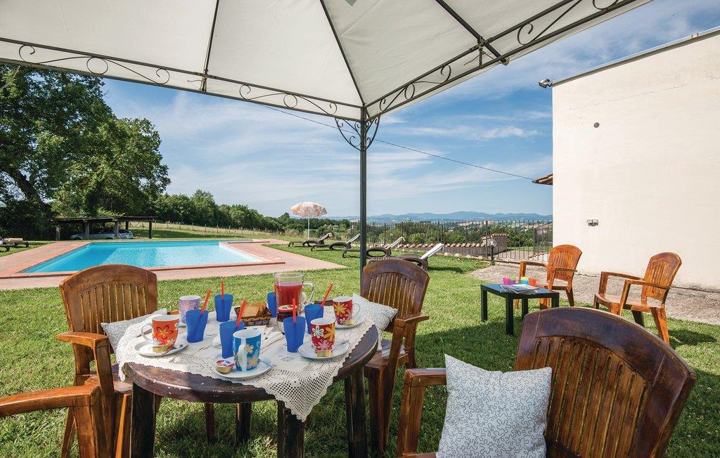 Yndigt, roligt beliggende feriehus med smuk udsigt til det omgivende landskab, midt i et fredet naturområde blandt Umbriens blide bakker og kun 1 km fra den lille by Massa Martana (alle slags butikker). Ferieboligen er omgivet af en stor privatgrund, dels med græsplæne, hvor der også ligger en L-formet pool. Husets indretning er indbydende og smagfuld. I underetagen har I et fitnessrum med brusebad til rådighed. Babyseng kan lånes ved forespørgsel. Garage. I de nærmere omgivelser er der mange vandringsstier, som I kan udforske til fods eller på mountainbike, samt en ridestald. Der er ca. 9 km til den smukke, karakteristiske by Todi, 31 km til Montefalco, en lille middelalderby, mens I kan finde Perugia, Assisi og vandfaldet ”Cascate delle Marmore” i en omkreds af 55 km.