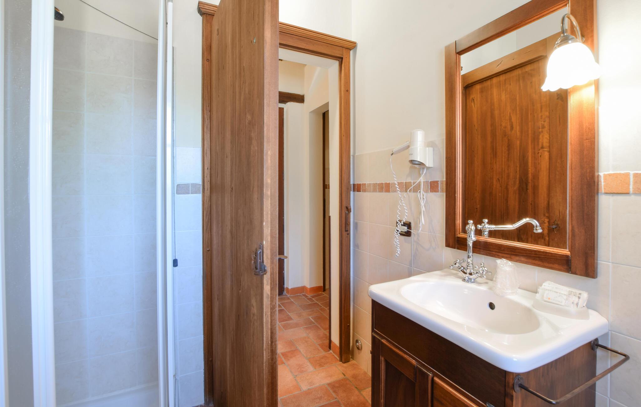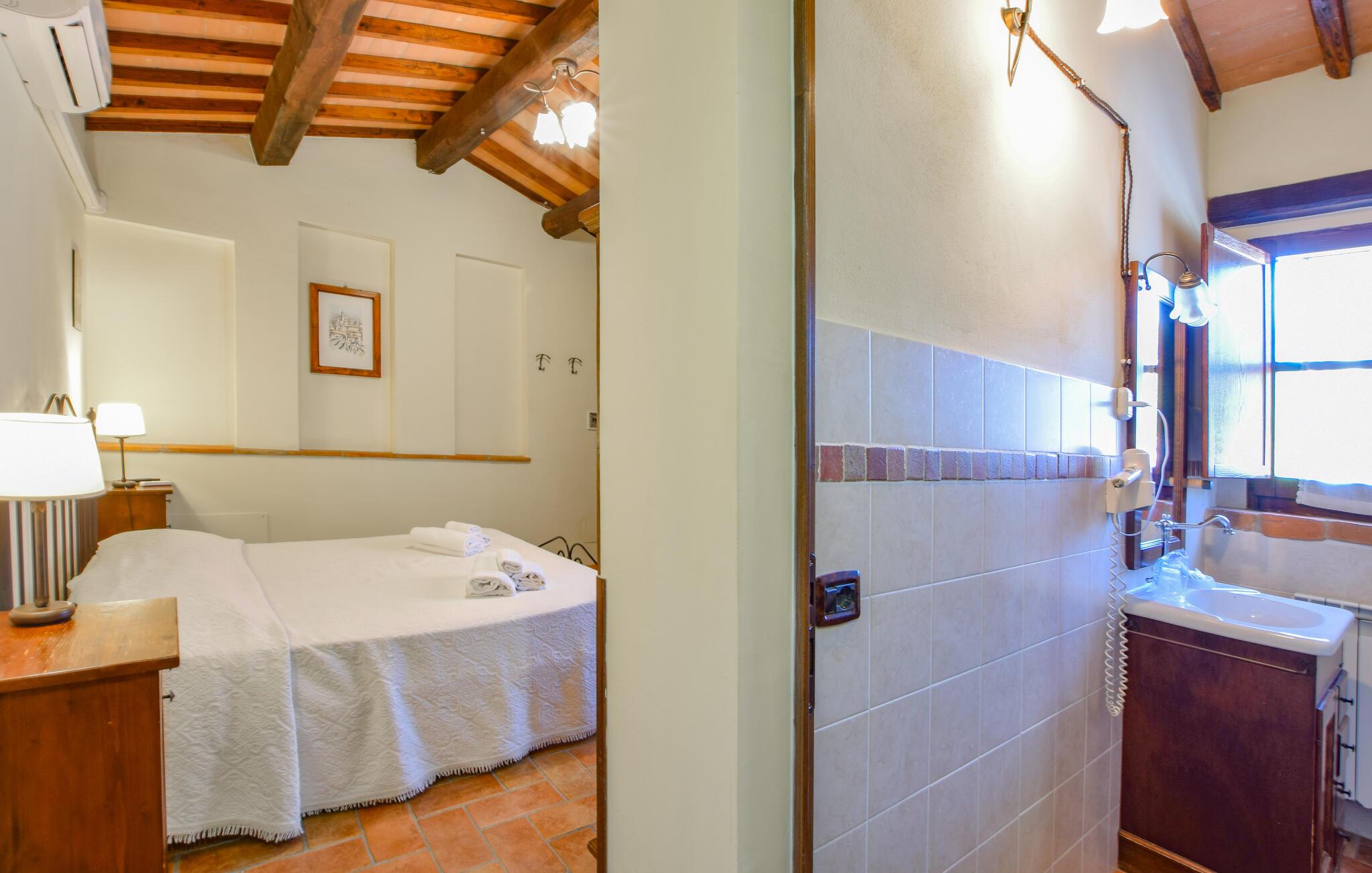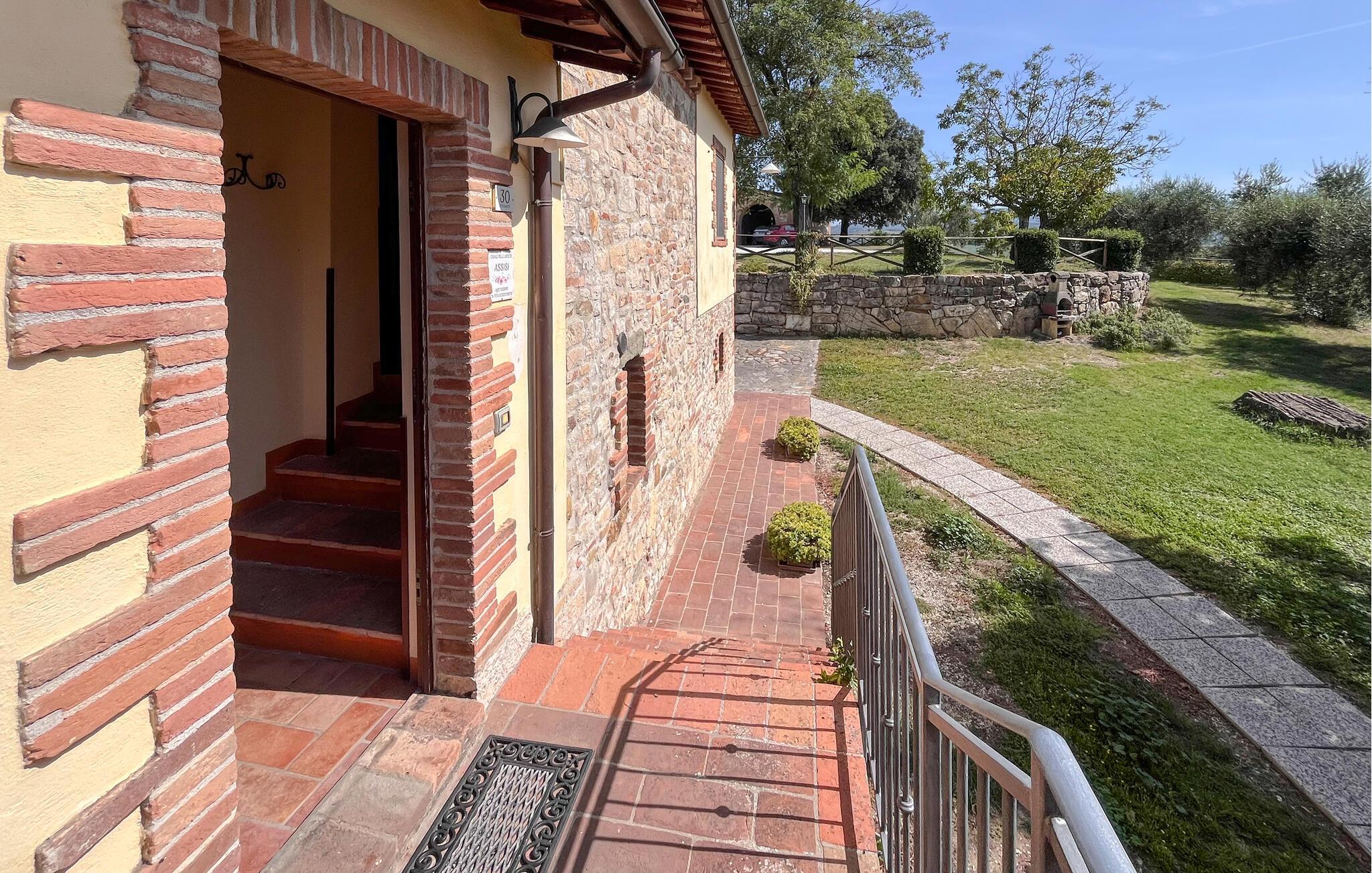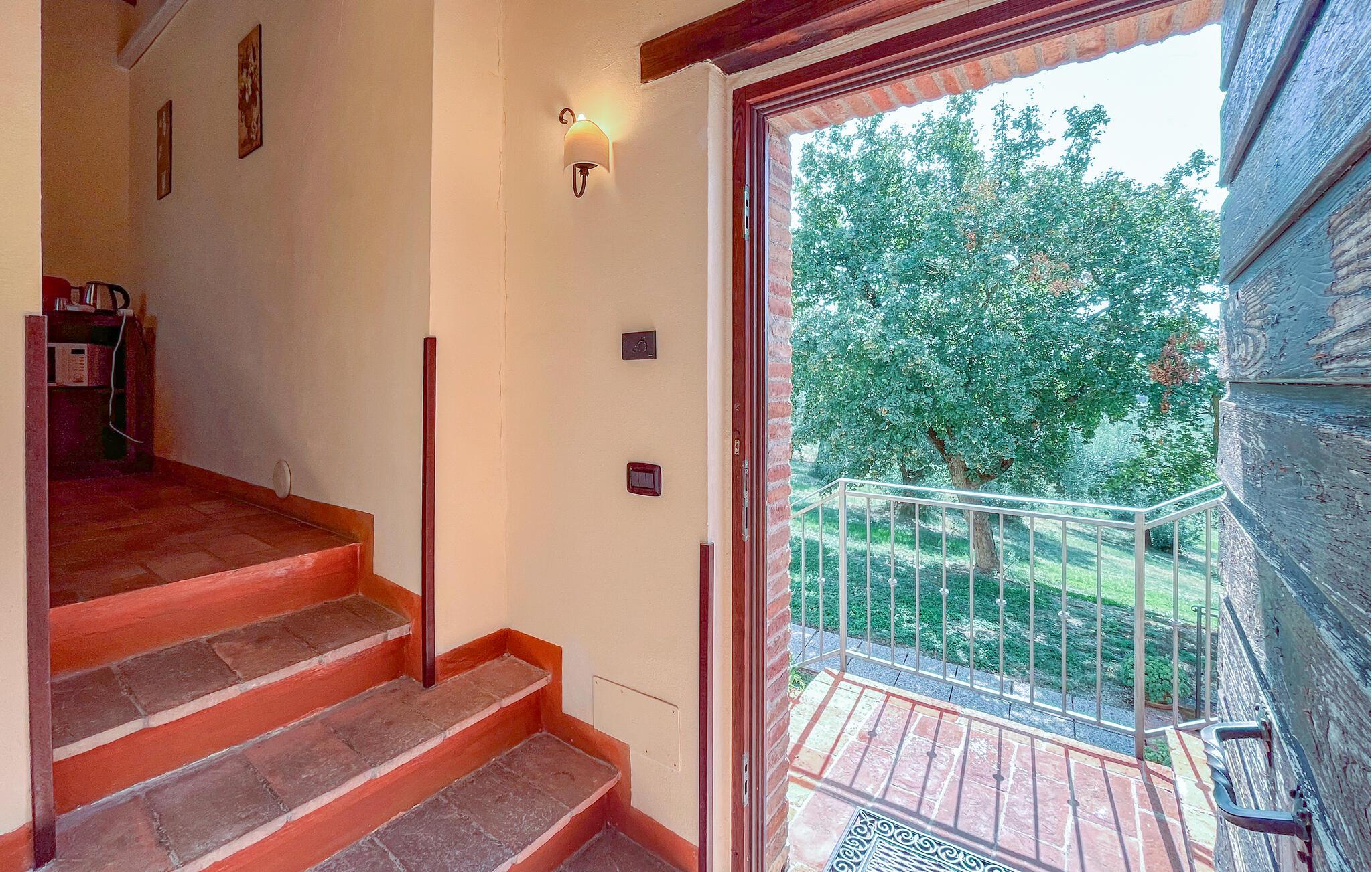 Oplev en afslappende ferie i denne ferielejlighed med fælles pool og historisk præg. Denne lejlighed er perfekt til en afslappende flugt fra hverdagen. Beliggende i et traditionelt bondehus i umbrisk landlig stil, byder den på imponerende træbjælkelofter og rustikke møbler. Slap af her med en aromatisk espresso, lyt til jeres yndlingsmusik, eller træn i fitnessrummet. Gå ud på den naturstensbelagte terrasse om morgenen og nyd en forfriskende dukkert i den store fælles swimmingpool. Slap af på en liggestol med udsigt over det smukke landskab og byen Todi. Om aftenen kan I bruge den fælles grill og afslutte dagen med en fin italiensk vin. Nyd lange vandreture eller cykelture gennem Umbriens bølgende bakker, der er oversået med olivenlunde og vinmarker. I Todi venter maleriske pladser, middelalderpaladser og en betagende udsigt fra bymurene over Tiberdalen på jer. Bliv fortryllet af de små gyder, caféer og kunsthåndværkerbutikker, der giver stedet sin særlige charme. Blandt cypresser, marker og rolige klostre vil I opleve den uspolerede skønhed i det umbriske landskab. Bemærk: Brug af det professionelle køkken med festlokale og indendørsspabad er tilgængelig efter anmodning og mod et gebyr.