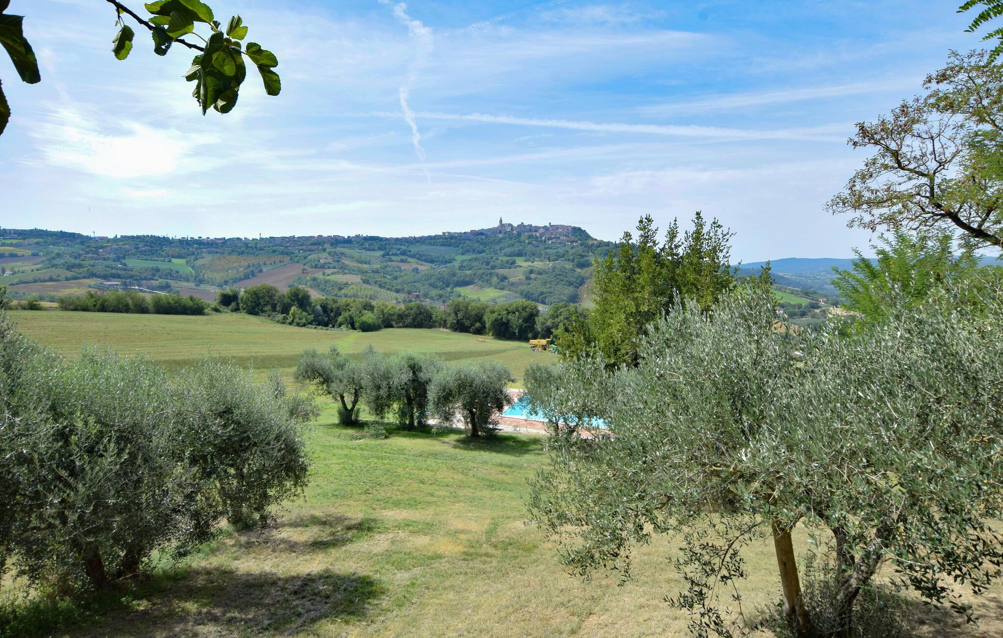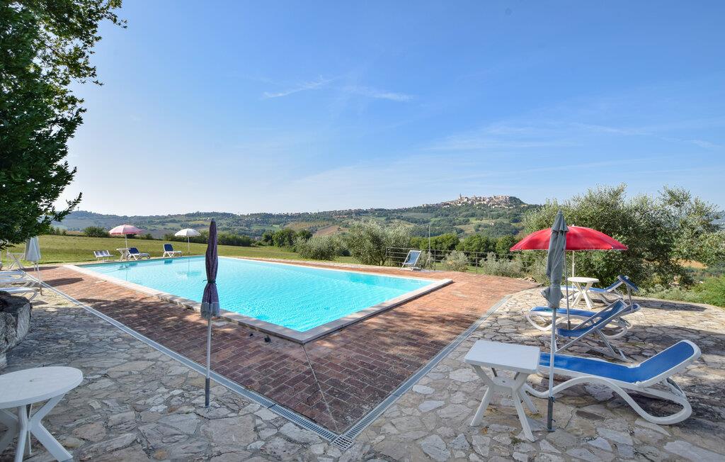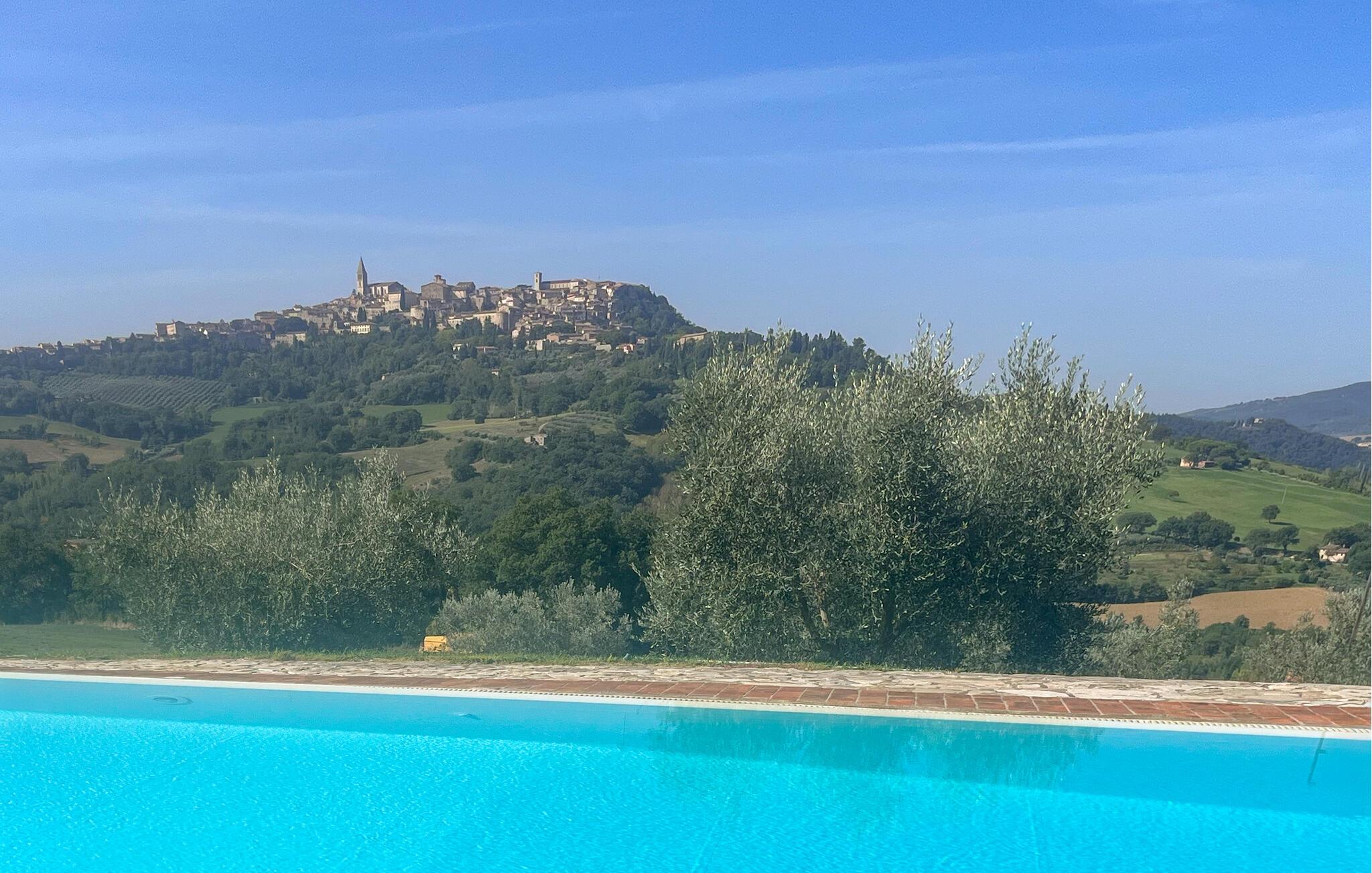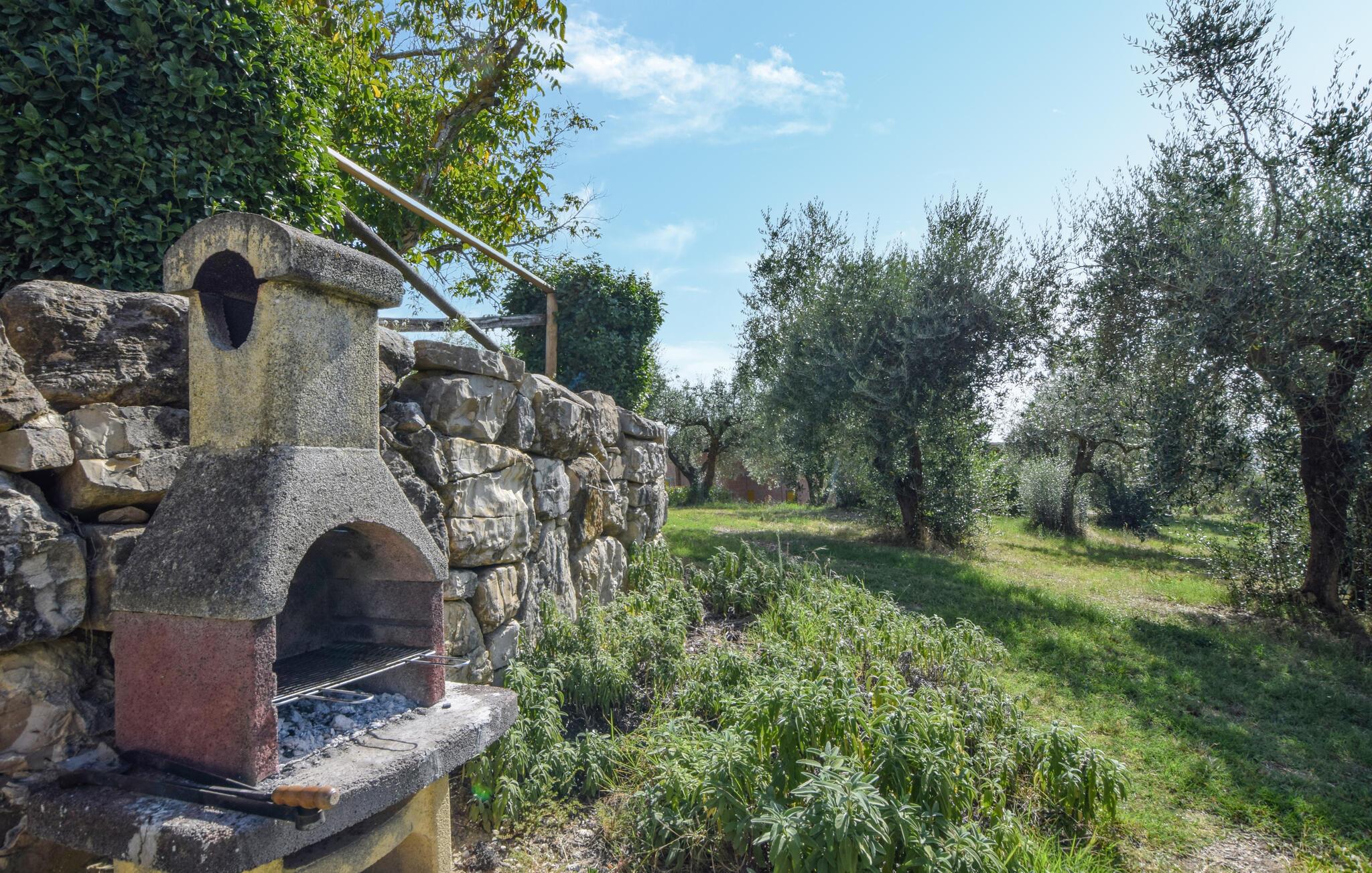 Oplev en afslappende ferie i denne ferielejlighed med fælles pool og historisk præg. Denne lejlighed er perfekt til en afslappende flugt fra hverdagen. Beliggende i et traditionelt bondehus i umbrisk landlig stil, byder den på imponerende træbjælkelofter og rustikke møbler. Slap af her med en aromatisk espresso, lyt til jeres yndlingsmusik, eller træn i fitnessrummet. Gå ud på den naturstensbelagte terrasse om morgenen og nyd en forfriskende dukkert i den store fælles swimmingpool. Slap af på en liggestol med udsigt over det smukke landskab og byen Todi. Om aftenen kan I bruge den fælles grill og afslutte dagen med en fin italiensk vin. Nyd lange vandreture eller cykelture gennem Umbriens bølgende bakker, der er oversået med olivenlunde og vinmarker. I Todi venter maleriske pladser, middelalderpaladser og en betagende udsigt fra bymurene over Tiberdalen på jer. Bliv fortryllet af de små gyder, caféer og kunsthåndværkerbutikker, der giver stedet sin særlige charme. Blandt cypresser, marker og rolige klostre vil I opleve den uspolerede skønhed i det umbriske landskab. Bemærk: Brug af det professionelle køkken med festlokale og indendørsspabad er tilgængelig efter anmodning og mod et gebyr.