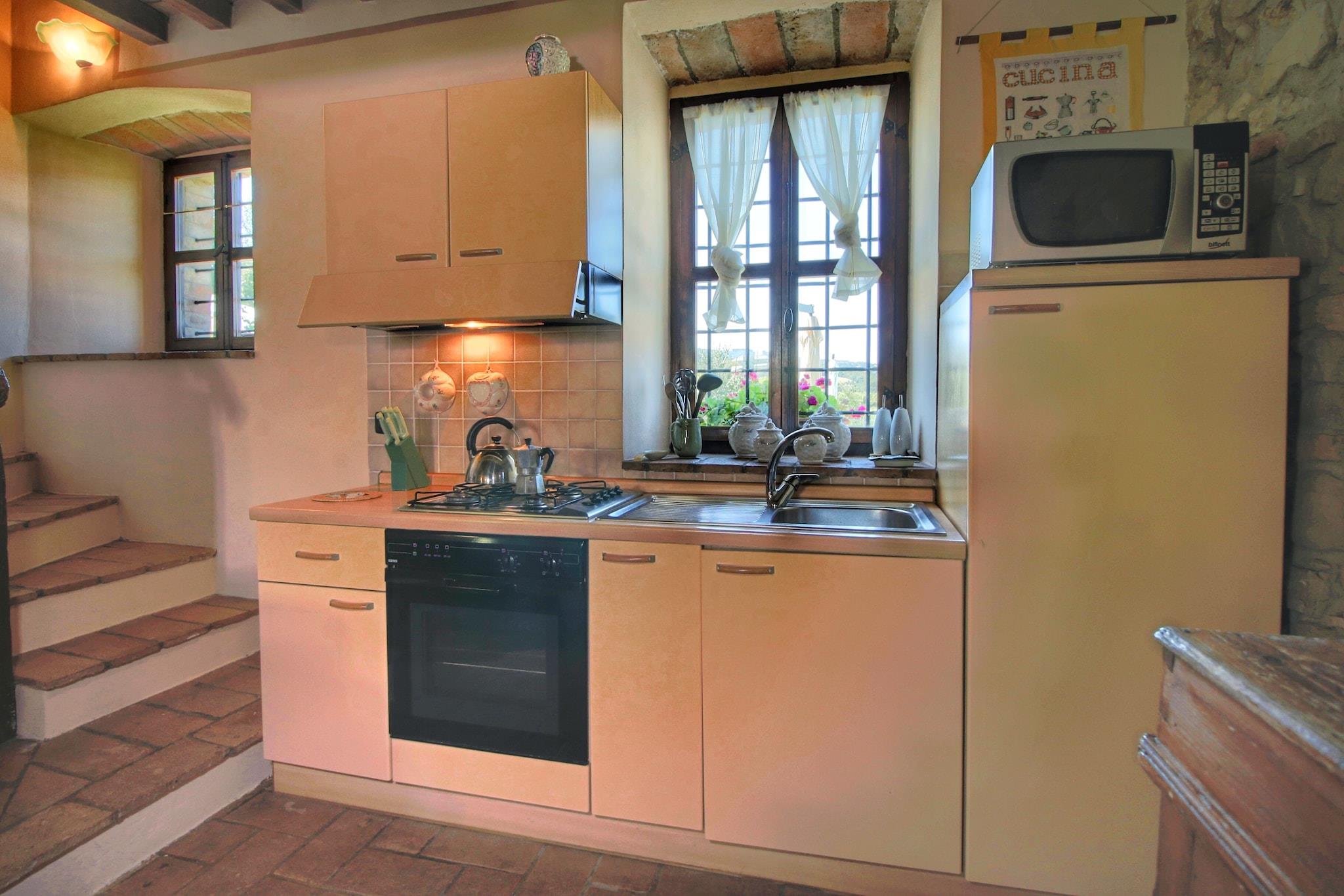 Denne kæledyrsvenlige lejlighed til fire gæster ligger i hjertet af Todi og tilbyder en rolig oase med gratis WiFi og en frodig have. Ejendommen er designet til afslapning og har en fælles swimmingpool (14 x 7 m, åben maj-september), en petanquebane og legeredskaber, hvilket gør den ideel for familier og naturelskere. Uanset om du slapper af ved pejsen eller nyder den friske luft udendørs, sikrer denne lejlighed et behageligt og mindeværdigt ophold. Stueetagen kan prale af en rummelig stue og spisestue med en dobbelt sovesofa, TV, spisebord og pejs, samt et fuldt udstyret åbent køkken med mikrobølgeovn og opvaskemaskine. Første sal indeholder to hyggelige soveværelser, et med to enkeltsenge og et andet med en dobbeltseng, samt et badeværelse med bruser, håndvask, toilet og bidet. Gæsterne kan også nyde et betalt boblebad og sauna, centralvarme, aircondition, en fælles vaskemaskine, havemøbler, grillfaciliteter og bordtennis, hvilket sikrer både afslapning og underholdning. I nærheden tilbyder Piazza del Popolo en fantastisk middelalderarkitektur, mens Palazzo dei Priori fremviser historisk betydning. Santuario Madonna della Pasquarella tilbyder en betagende udsigt og en fredelig atmosfære. Til spisning serverer Ristorante Pizzeria Cavour lækre italienske retter, mens Ristorante Umbria tilbyder traditionelle umbriske smagsoplevelser. Uanset om du udforsker kulturelle vartegn eller nyder lokale retter, er denne lejlighed det perfekte umbriske tilflugtssted.