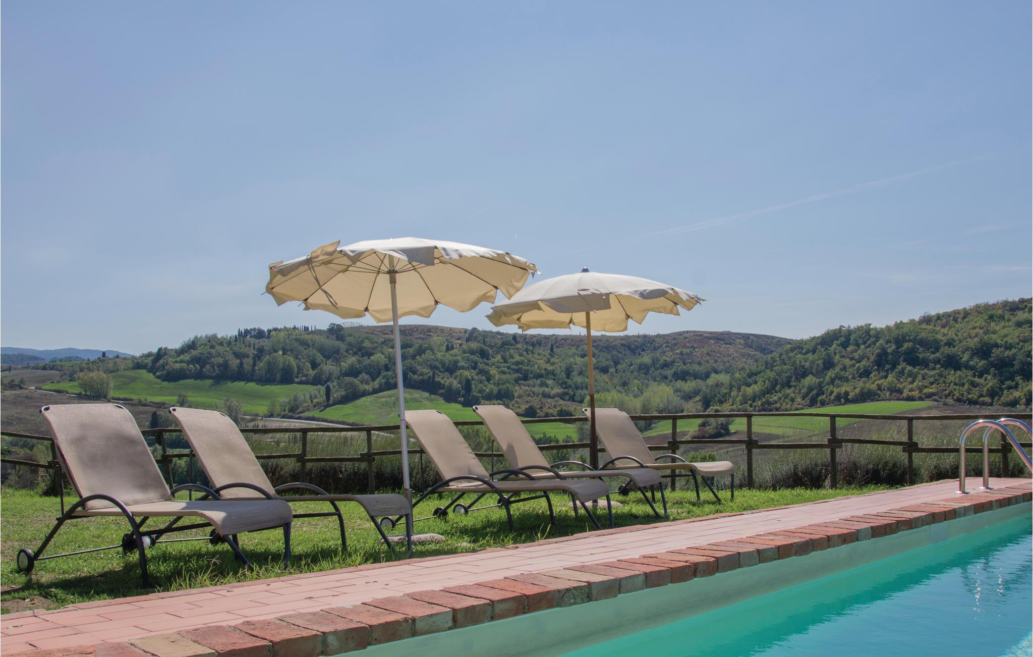 Ferielejlighed på første sal med adgang til en fælles pool. Lejligheden ligger i en landejendom i den karakteristiske lille by Castelfalfi mellem S. Gimignano og Volterra. Et perfekt udgangspunkt når I vil opleve de mange kulturelle og kunstneriske seværdigheder i Toskana: San Gimignano, med på verdens kulturarvsliste, er berømt for sine mange tårne, Volterra med sin etruskiske nekropoler, Pisa med Piazza dei Miracoli, det skæve tårn, dåbskapel og OPA museum og Lucca med sin middelaldermur der er perfekt vedligeholdt. Siena (77 km) og Firenze Florenz (78 km) er oplagt at besøge pga deres historiske gamle bydele, museer, seværdigheder og smukke og berømte pladser. Området er kendt for sine kulinariske specialiteter, for sine vine og i de mange vinkældre kan I både smage og købe med hjem. I kan tilbringe afslappede badedage på stranden ved Costa degli Etruschi med Cecina og Castiglioncello ca. 60 km væk, hvor der er mange butikker og andre services og mulighed for at dyrke mange former for sport.
