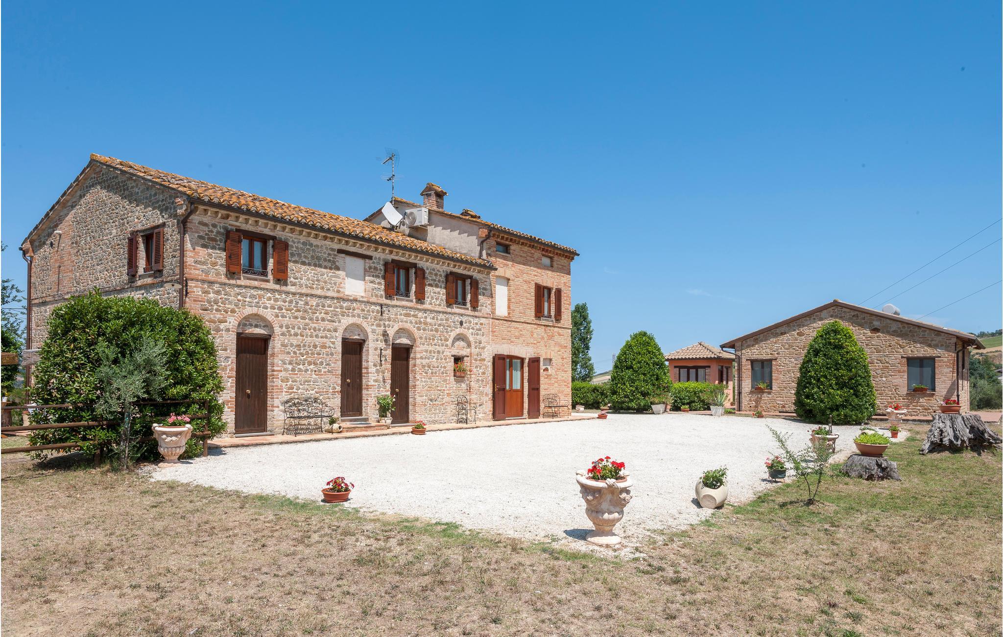 Glæd jer til en skøn og afslappende ferie i dette feriehus i smukke omgivelser i den italienske region Marche. Husets rum er stilfuldt indrettede med flotte møbler i klassisk stil, som er med til at give huset en landlig, rustik atmosfære. Fra huset kan I nyde en fantastisk panoramaudsigt over det romantiske, bakkede landskab.