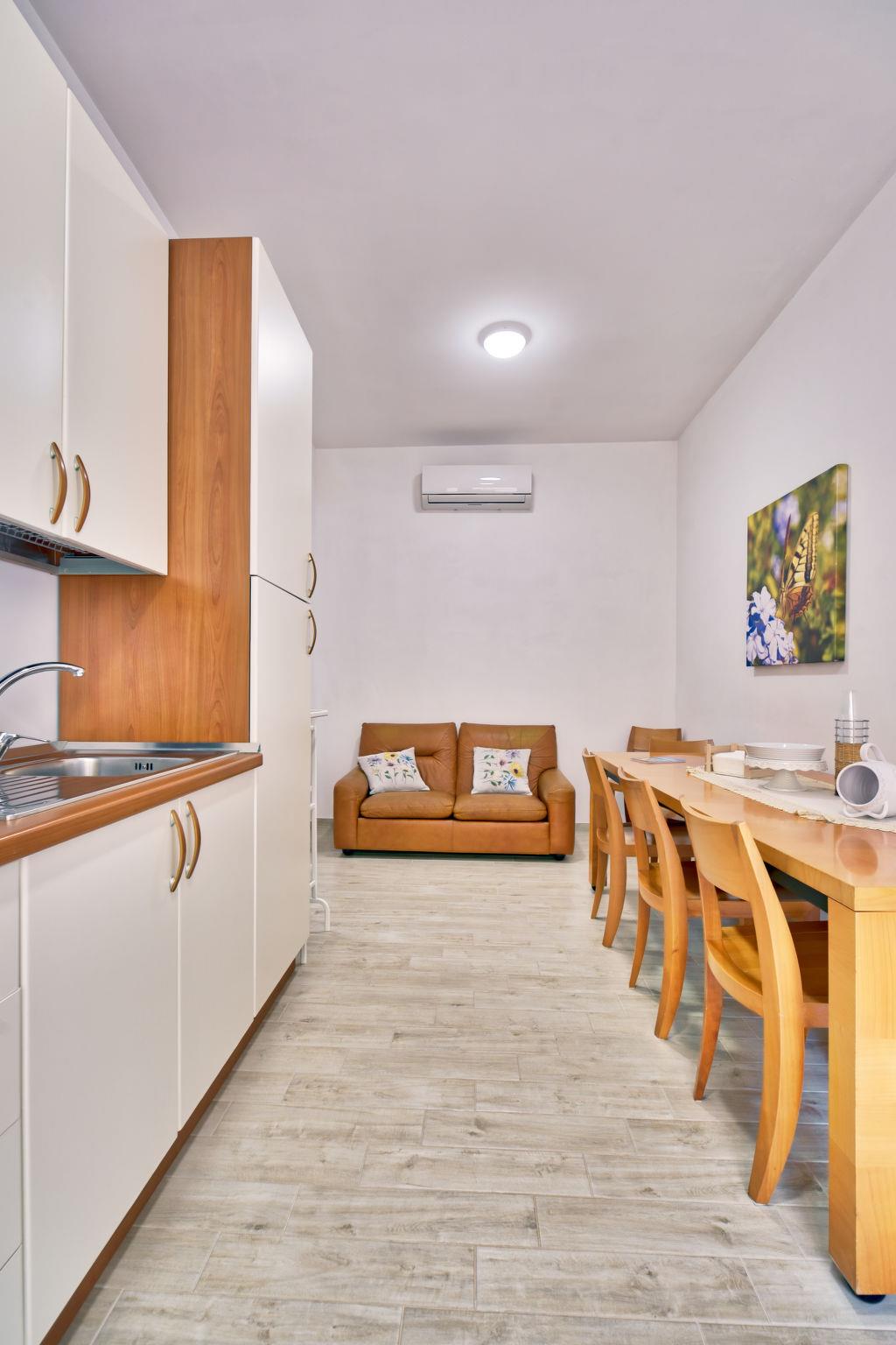 "Il Cerchio", 2-room semi-detached house 56 m2, on the ground floor. Beautiful and cosy furnishings: living/dining room with 1 sofabed (100 cm, length 160 cm), digital TV. 1 room with 1 double bed. Exit to the terrace. Open kitchen (2 hot plates, oven, freezer, electric coffee machine, Capsules for coffee machine (4) free) with dining table. Shower/bidet/WC. Air-conditioning, forced-air heating. Large terrace. Terrace furniture, deck chairs. Panoramic view of the valley. Facilities: washing machine, children's high chair, baby cot for up to 2 year olds, hair dryer. Internet (WiFi, free). Parking. Please note: non-smoking house. Private entrance, smoke alarm, fire extinguisher. IT069090C2Y4RWEOFG