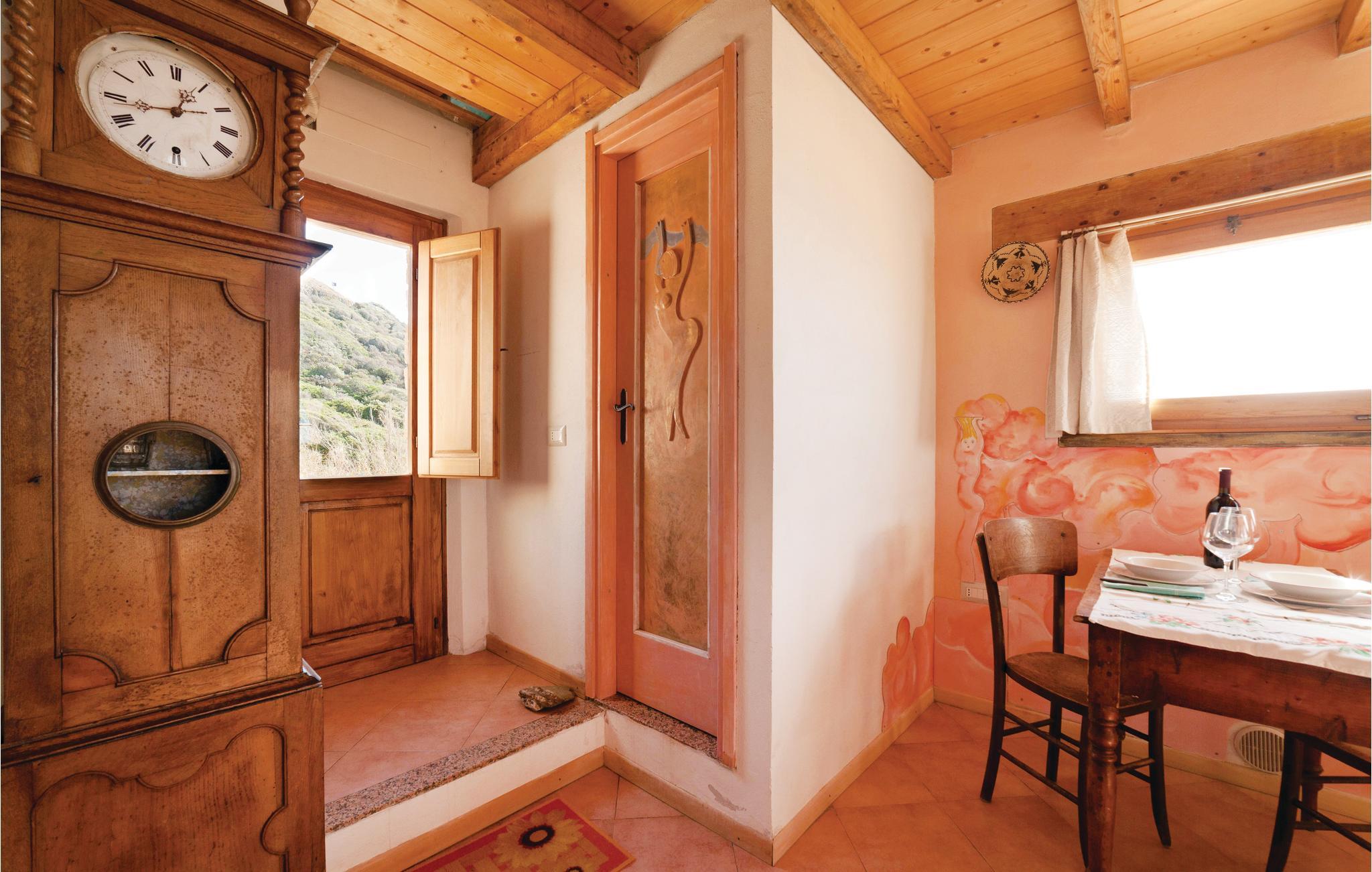 Herfra er der 2 km til Torre dei Corsari, en levende, populær landsby med stranden Pistis, hvor der også er Europas højeste strandklitter. Lejligheden i panoramabeliggenhed ligger i en del af den gamle bygning, som fiskene blev emballeret i for 400 år siden. I bor op ad ISD843. Lejligheden udmærkes af to store vinduer med udsigt til havet, indrettet med en kunstners unikke værker.