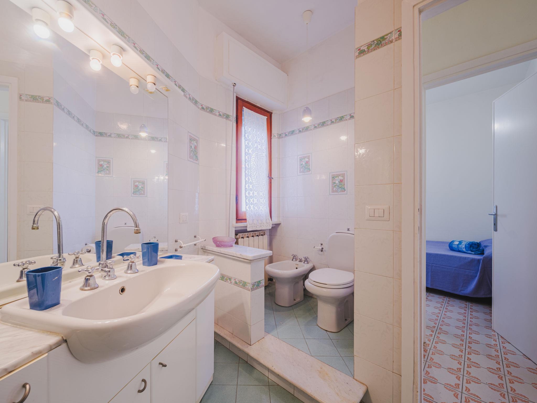 "Venezia", 4-room semi-detached house 96 m2 on 2 levels, on the ground floor. Spacious and bright, very practical and comfortable furnishings: living/dining room with TV (flat screen), air conditioning. Exit to the garden. Kitchen-/living room (oven, dishwasher, Gas stove, 4 gas rings, toaster, kettle, microwave, freezer). Exit to the garden. Shower/bidet/WC. Gas heating, air-conditioning. Upper floor: 1 room with 1 bed, 1 double bed and air conditioning. 1 room with 1 french bed. 1 room with 2 beds. Shower/bidet/WC. Heating available only from 01.11. to 07.04. Small patio, small garden. Terrace furniture, sitting area, box-room. Distant view of the mountains. Facilities: washing machine, iron, hair dryer. Internet (WiFi, free). Please note: suitable for families. Maximum 1 pet/ dog allowed. TV only IT. Please note: the bathroom with shower on the ground floor is located in a separate room from the house, in the private patio. IT046033C2DFMZLBVN