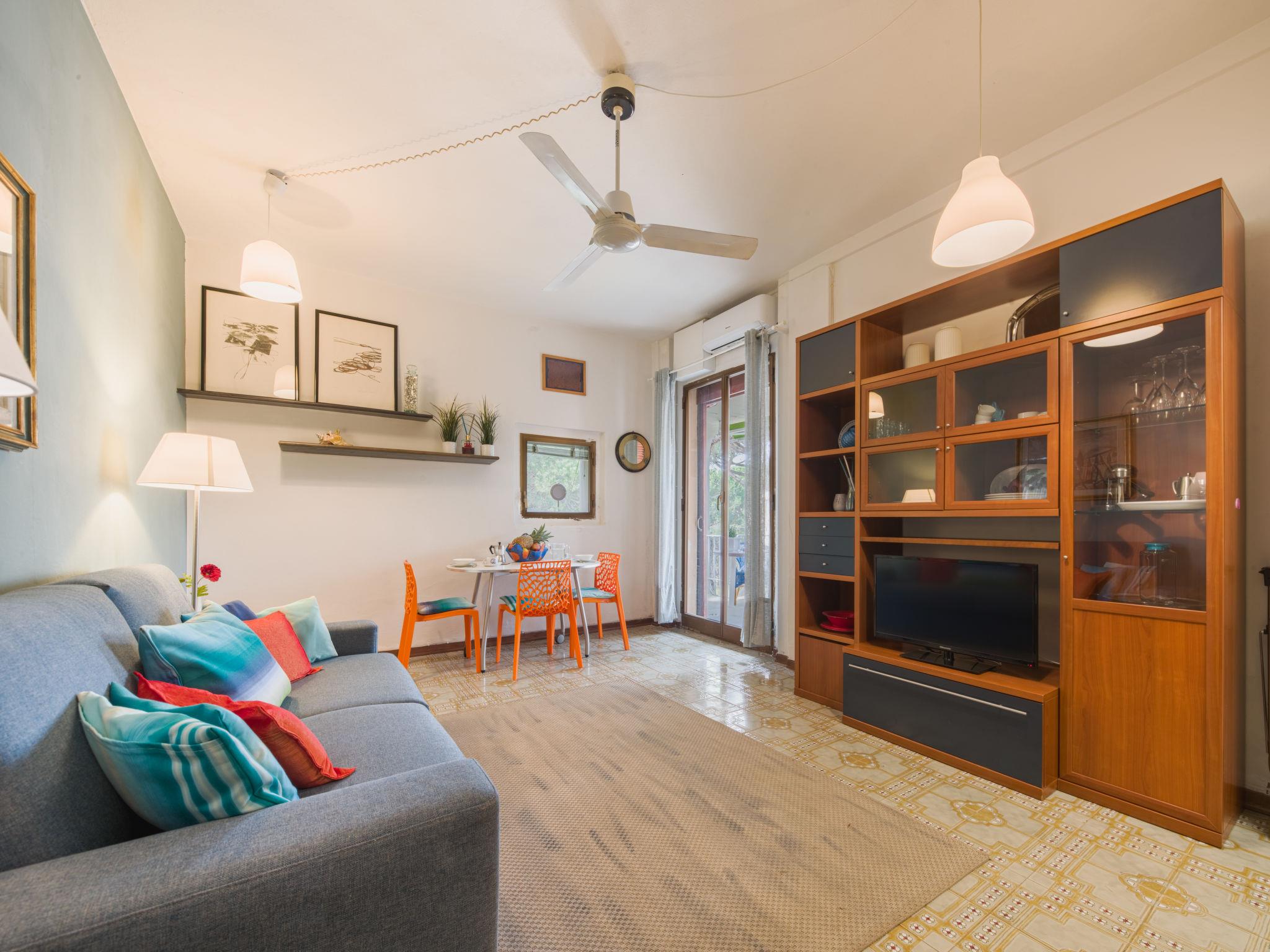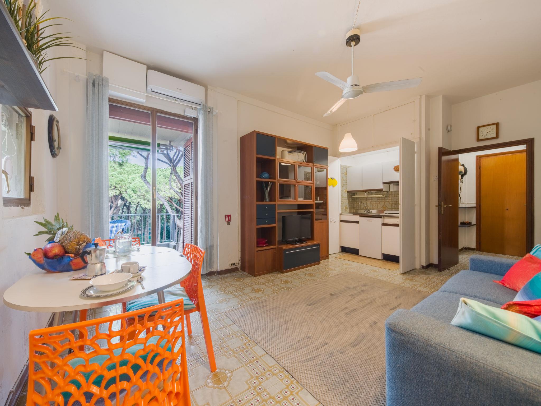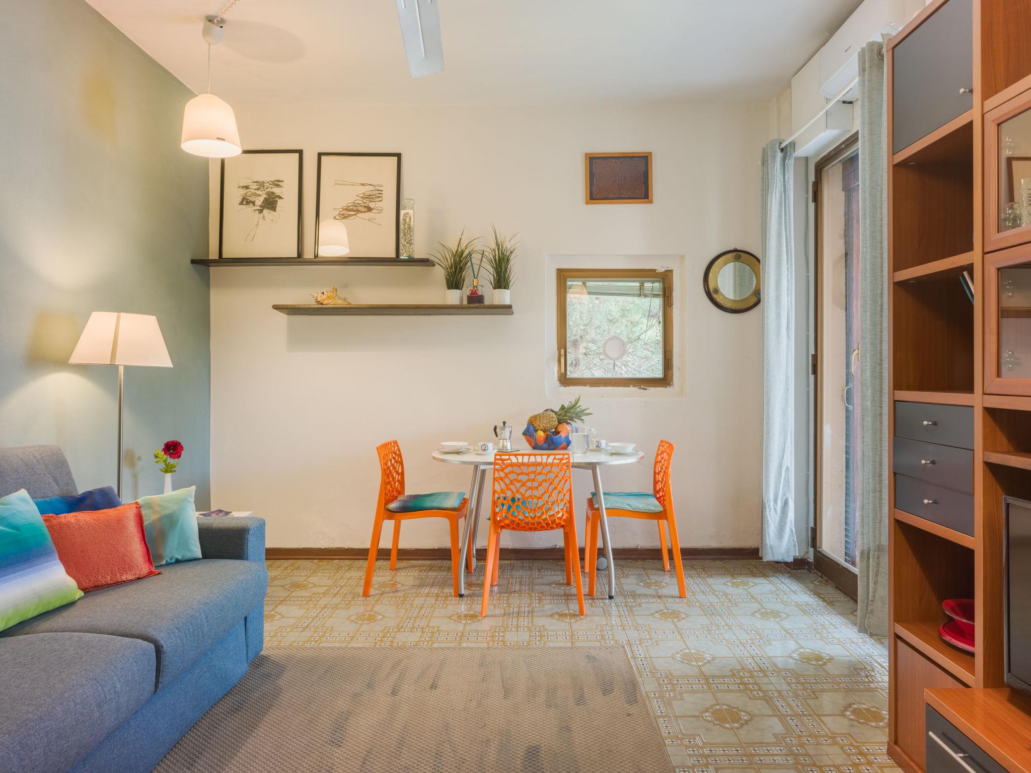 "Life Tower", 1-room apartment 40 m2 on 4th floor. Practical and cosy furnishings: kitchenette (2 induction hot plates, toaster, microwave, electric coffee machine) with 1 sofabed (160 cm), dining table. Exit to the terrace. Shower/bidet/WC. Air-conditioning. Small terrace partly. Terrace furniture. Facilities: iron, hair dryer. Internet (WiFi). Parking (fenced 1 car). Please note: non-smokers only. Smoke alarm, fire extinguisher. IT046033C2T7PESSL4