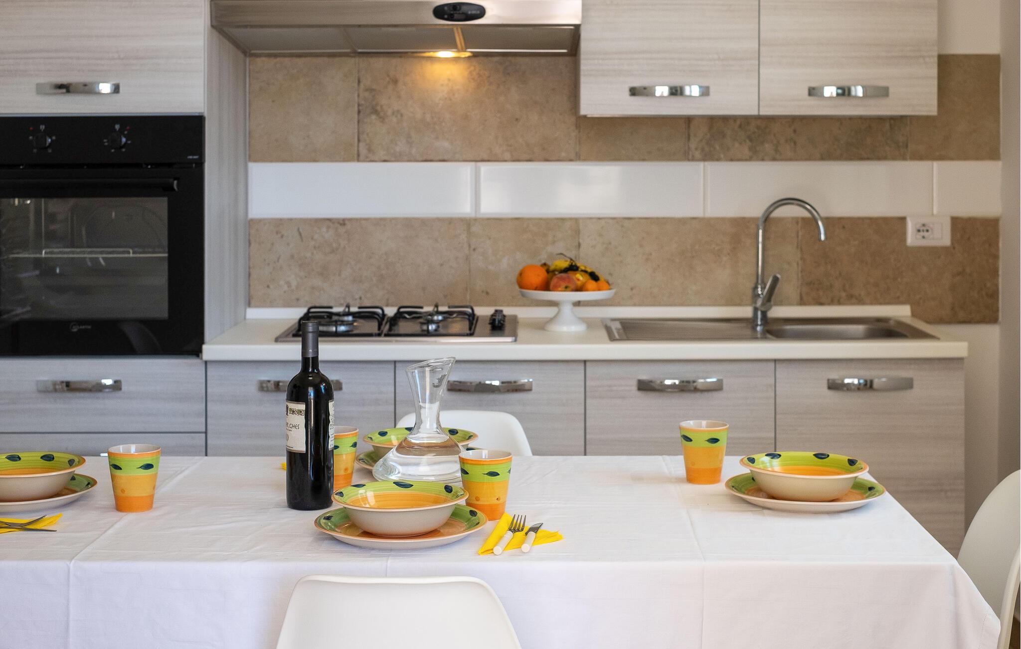 I den sydlige del af Puglia, i provinsen Lecce, finder du denne moderne, lyse lejlighed i en stille og rolig kystby. Med en harmonisk, varm indretning føler du dig hurtigt hjemme her. Lejligheden er velegnet til en lille familie, og du kan se frem til komfort og ubekymrede dage.