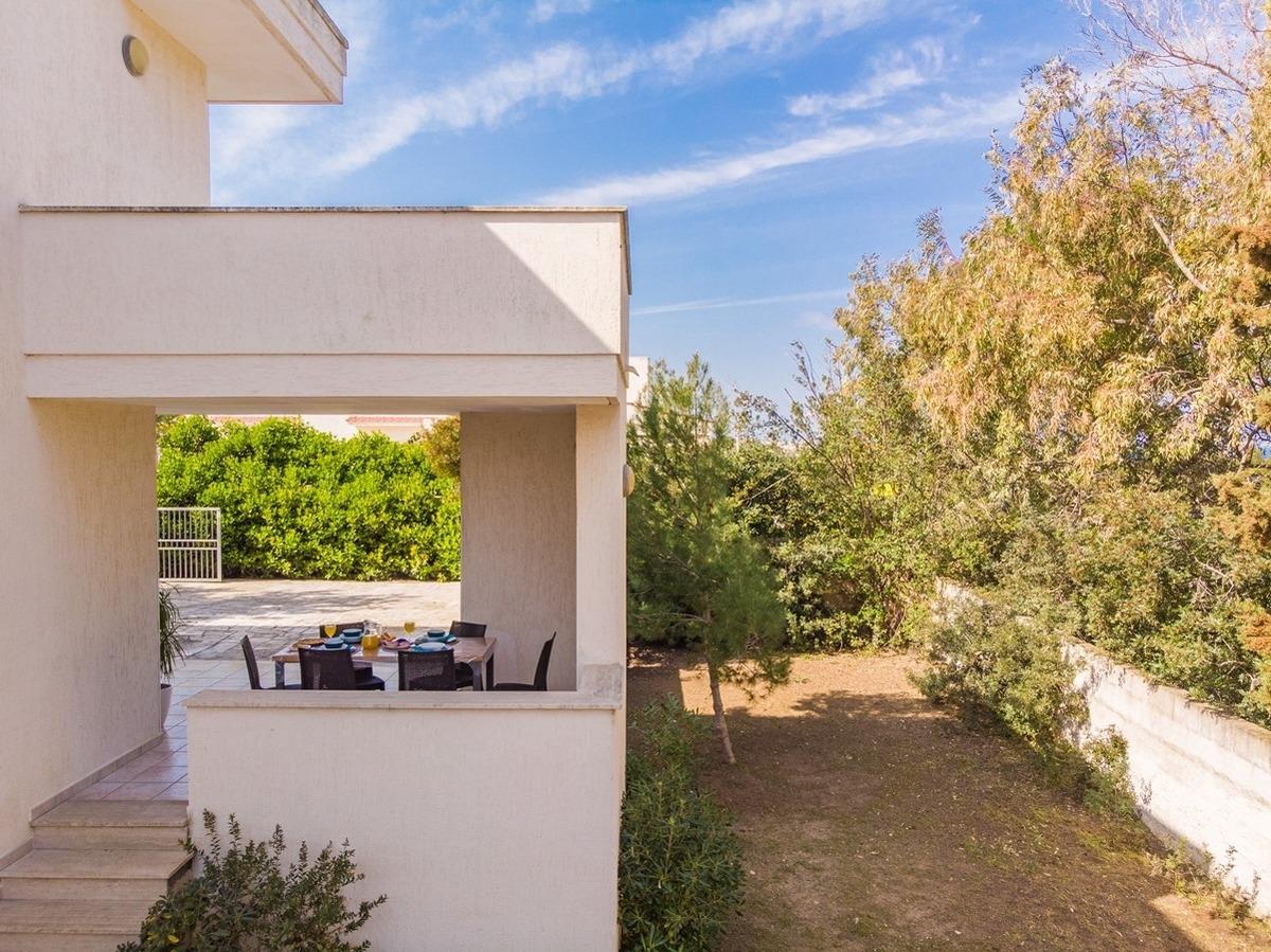 "Villa Salento" einen Garten 150 m breit, zwei Parkplätze, eine Veranda in erhöhter Position mit Gartenmöbeln. Dank der Balkone können Sie vom Schlafzimmer mit Doppelbett aus den Blick auf das Meer und das Grün des nahe gelegenen Kiefernwaldes genießen. Präsentieren Sie die Grillecke.