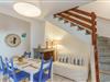 Es ist auf zwei Ebenen: Erdgeschoss mit Wohnzimmer mit 2 Betten, Küche mit Zugang zum hinteren Garten.