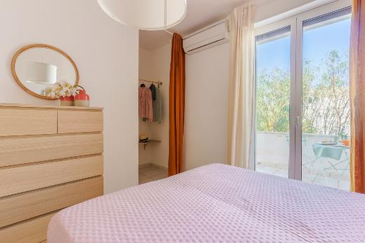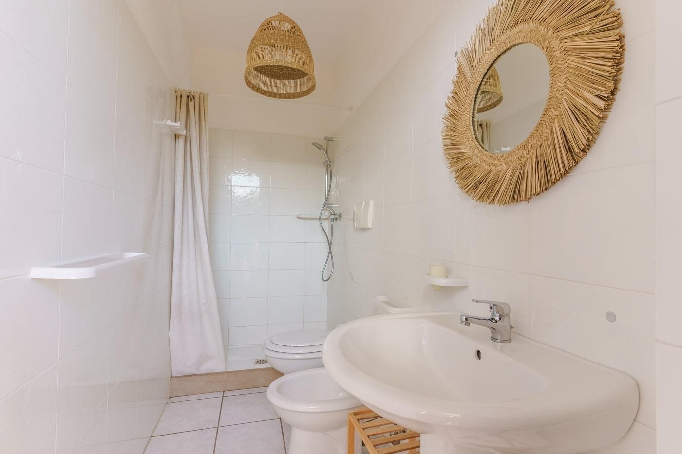 Erster Stock: 2 Schlafzimmer, von denen eines klimatisiert ist, ein Schlafzimmer mit 2 Einzelbetten (zusammenstellbar) und ein Badezimmer mit Dusche. Von beiden Schlafzimmern hat man Zugang zu einer Balkon-Veranda mit Blick auf den Garten.