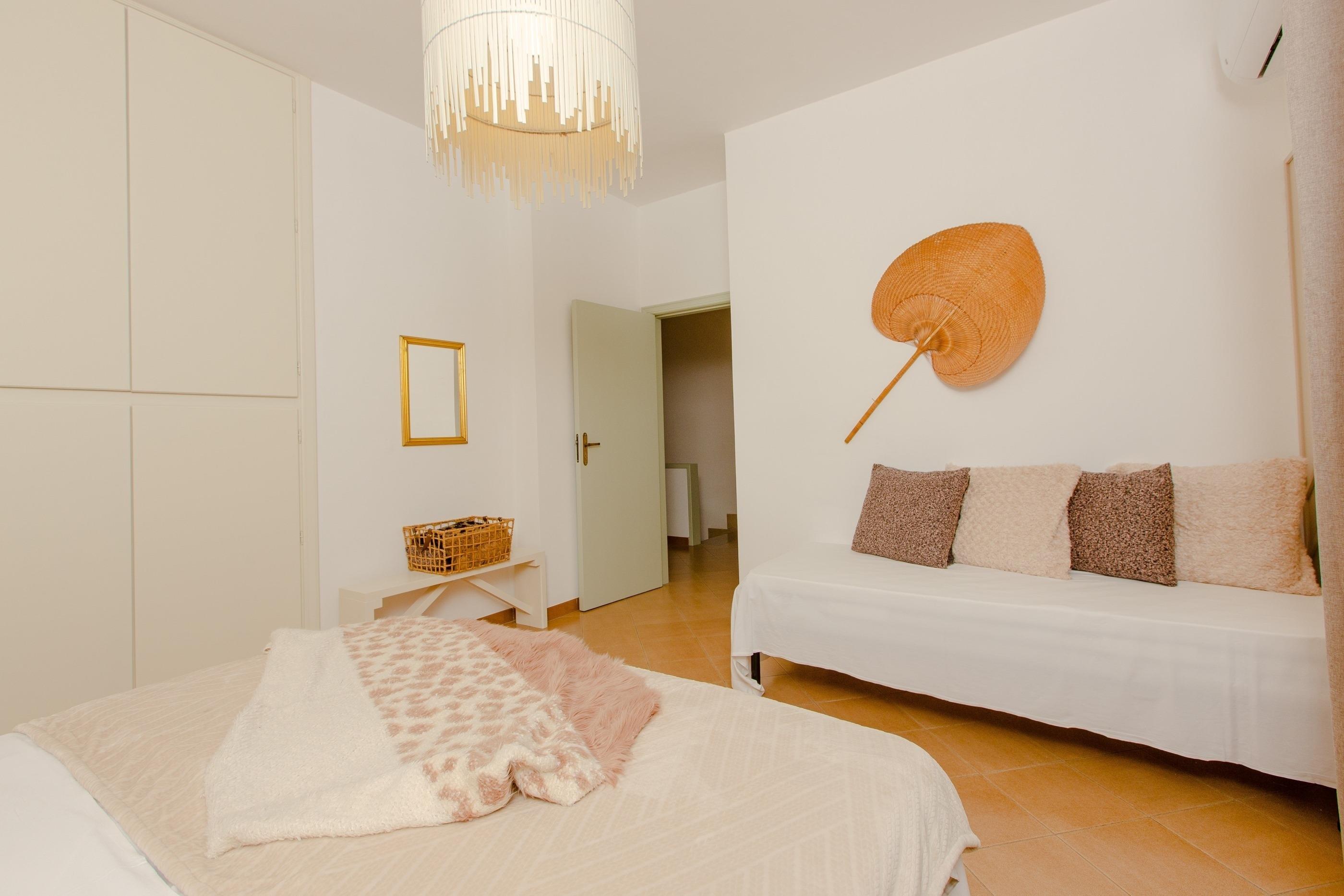 Haus in der Via delle Orchidee in Torre Santa Sabina. Im Erdgeschoss befindet sich ein Wohnzimmer mit Doppelschlafcouch, 50-Zoll-Fernseher und Deckenventilator, eine ausgestattete Küche, ein Badezimmer mit Dusche, ein Innenhof mit Waschbecken. Im ersten Stock befinden sich zwei klimatisierte Schlafzimmer mit je drei Betten, ein drittes Schlafzimmer mit Doppelbett, ein Badezimmer mit Dusche und Zugang zur Terrasse mit Meerblick. Ein Schlafzimmer bietet eine Terrasse mit Gartenmöbeln. Schlaf n.8.