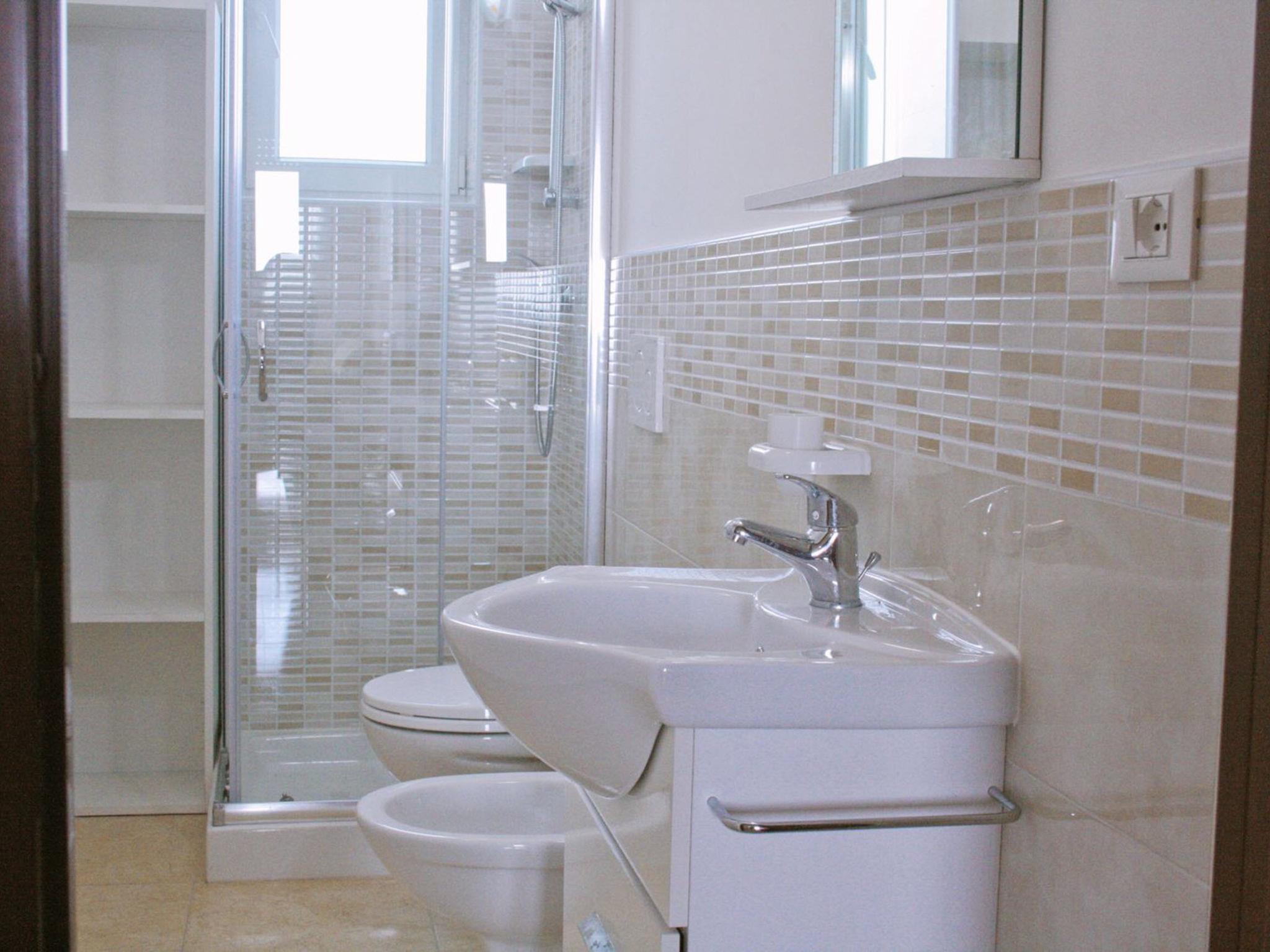 "Bilo Vista Mare 1", 2-room apartment 60 m2 on 1st floor. Simple and modern furnishings: living/sleeping room with 1 double sofabed, dining table and kitchen corner. Exit to the patio. 1 double bedroom. Kitchenette (4 hot plates, oven). Shower/bidet/WC. Air-conditioning. Patio. Terrace furniture. Beautiful view of the sea and the resort. Maximum 1 pet/ dog allowed. IT075050B400054183