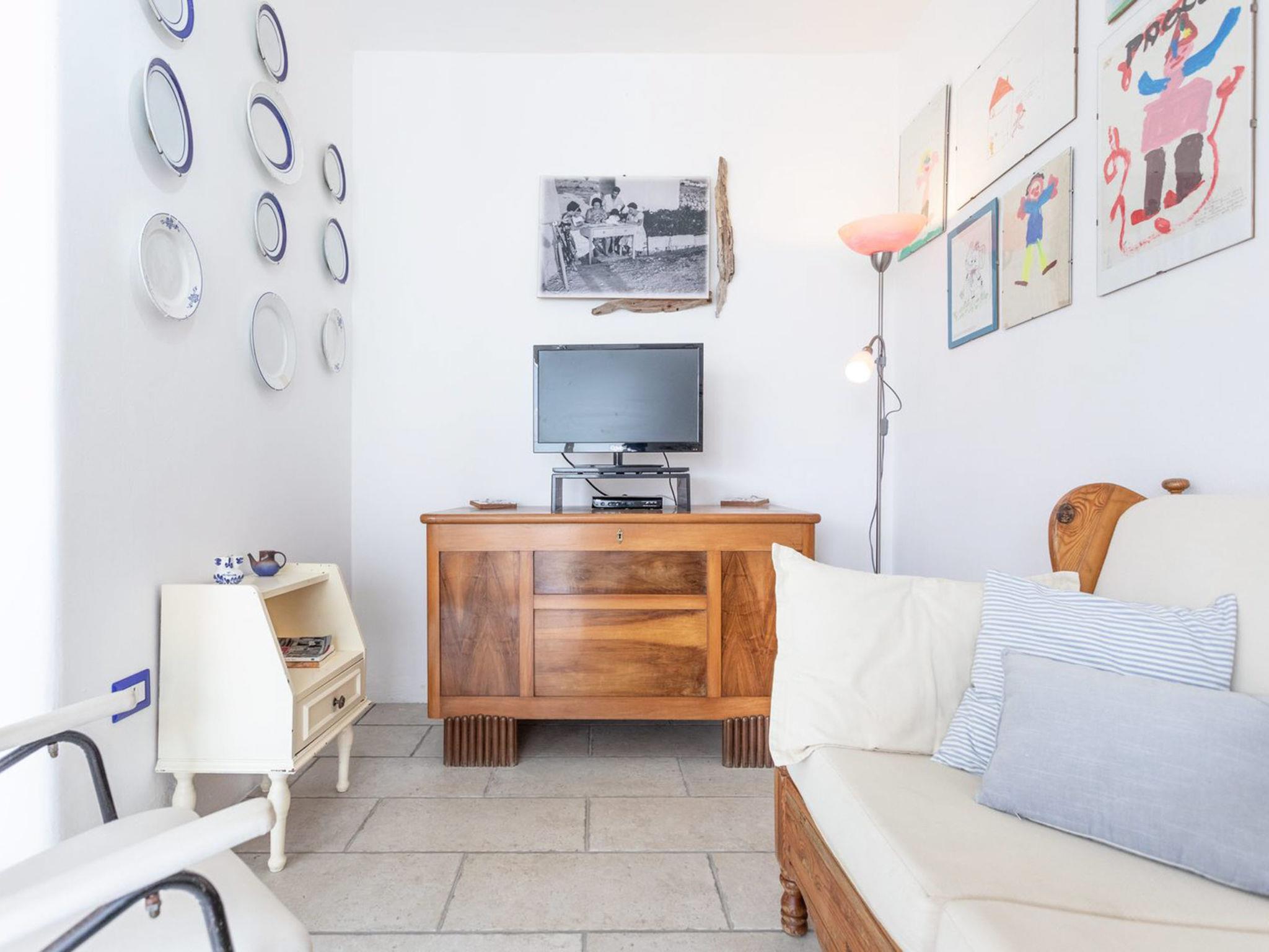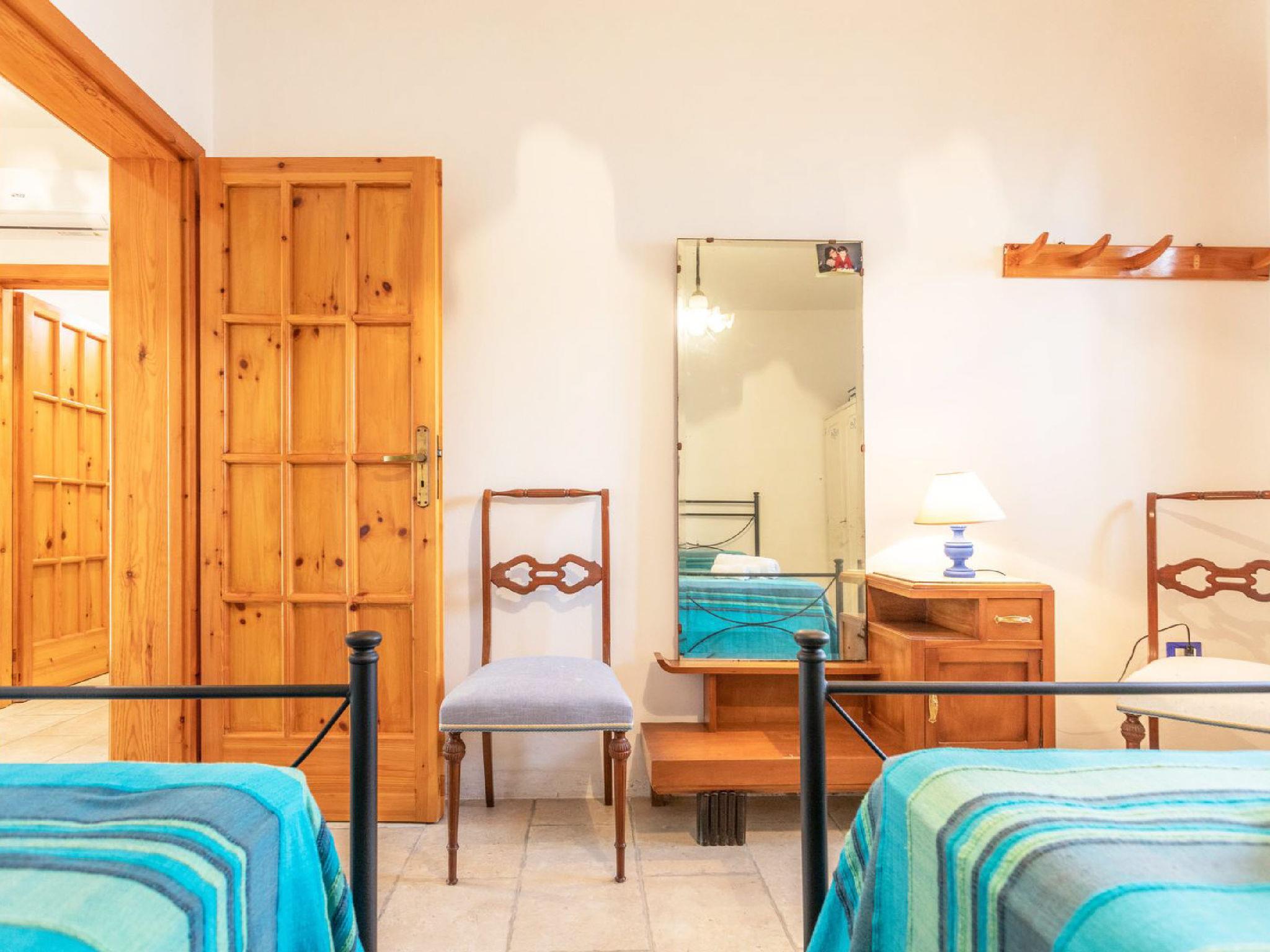 "Azzurro", 3-room apartment 90 m2, on the ground floor. Comfortable and antique furnishings: large living/dining room with open-hearth fireplace (only for decoration), TV, air conditioning and forced-air heating. Exit to the terrace. Walk-through room with air conditioning and forced-air heating. 1 double bedroom. 1 room with 2 beds. Open kitchen (oven, 4 gas rings). Shower/bidet/WC. Heating not available in all rooms. Terrace. Terrace furniture, barbecue. Facilities: washing machine. Internet (WiFi, free). Parking (fenced). Please note: maximum 1 pet/ dog allowed. Private entrance. IT075050C200035023