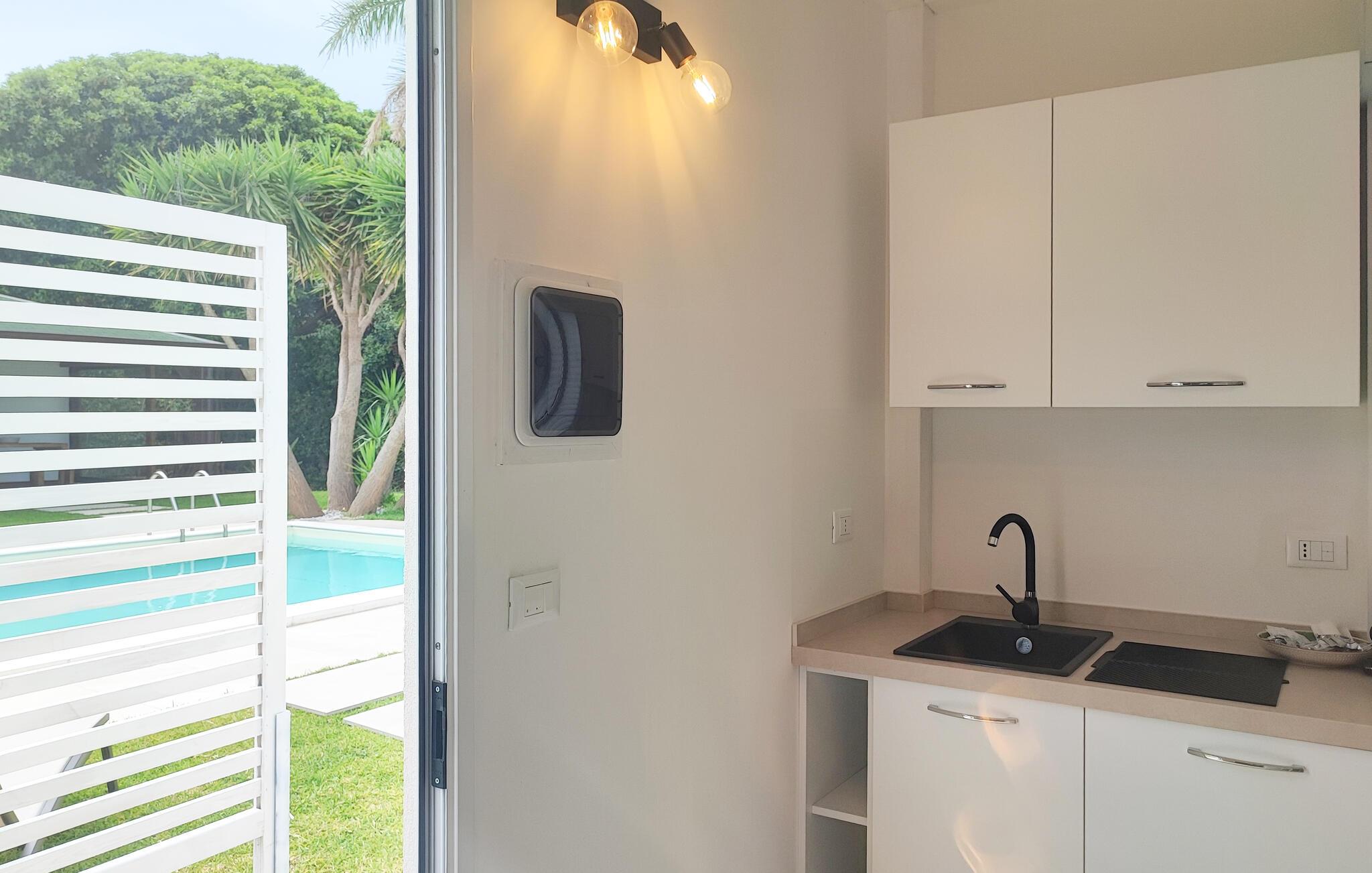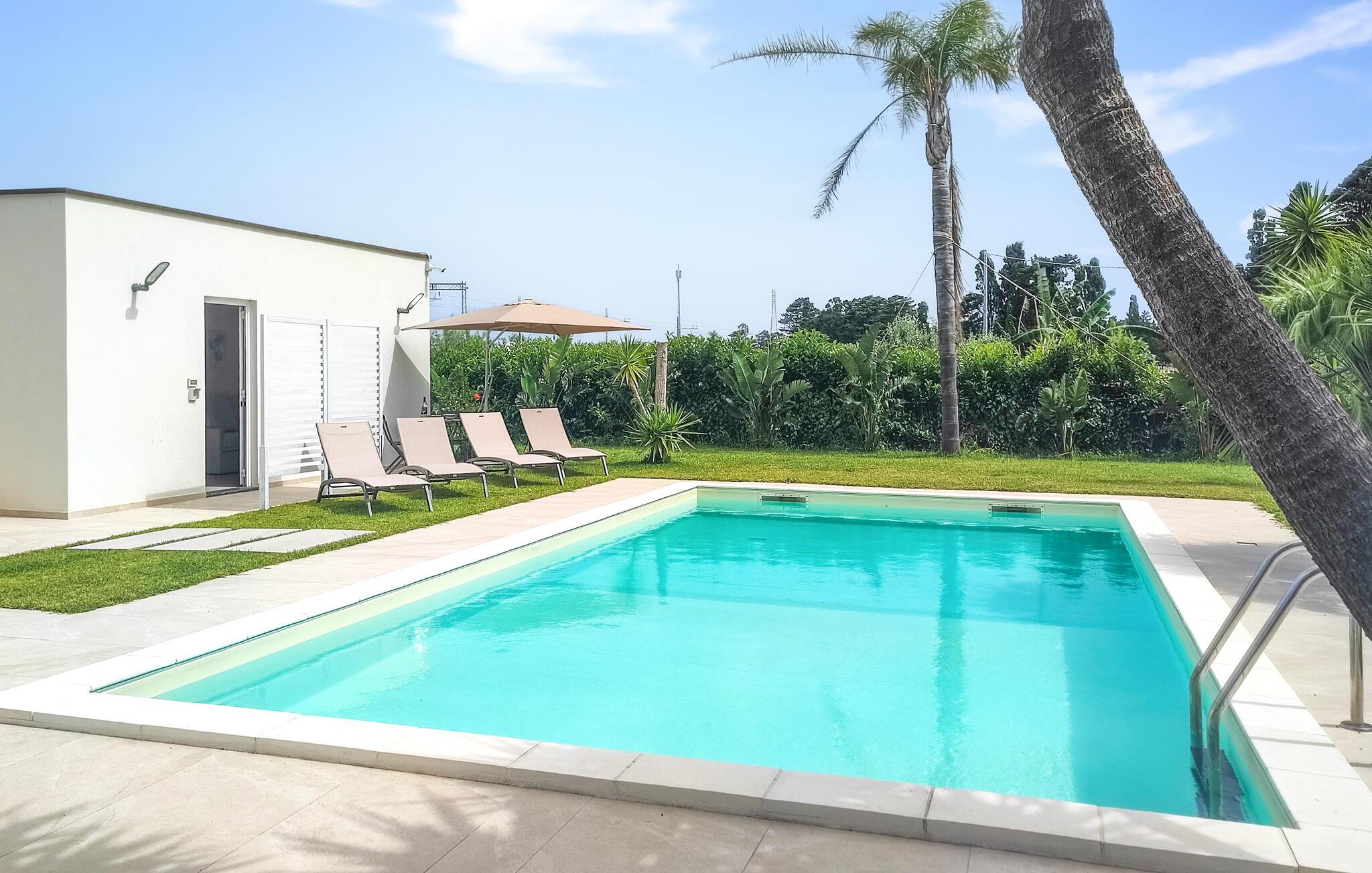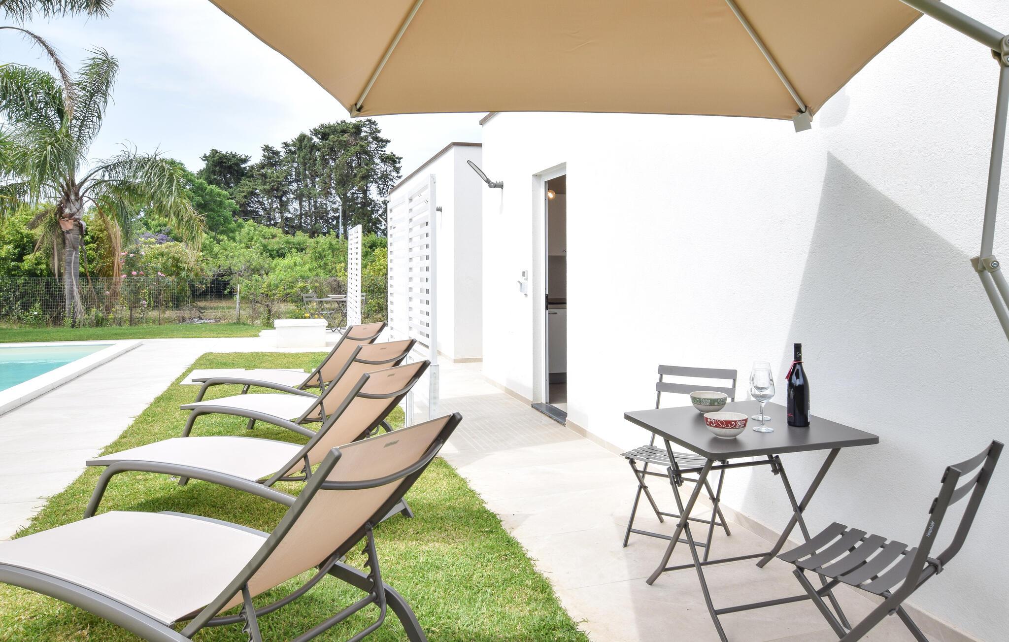 Udenfor venter en smuk fælles pool, hvor I kan svømme afslappende baner om morgenen og snuppe en frisk dukkert på varme sommerdage. Genoplad batterierne på en af ??de behagelige liggestole, og afslut lune aftener med en siciliansk vin under åben himmel.