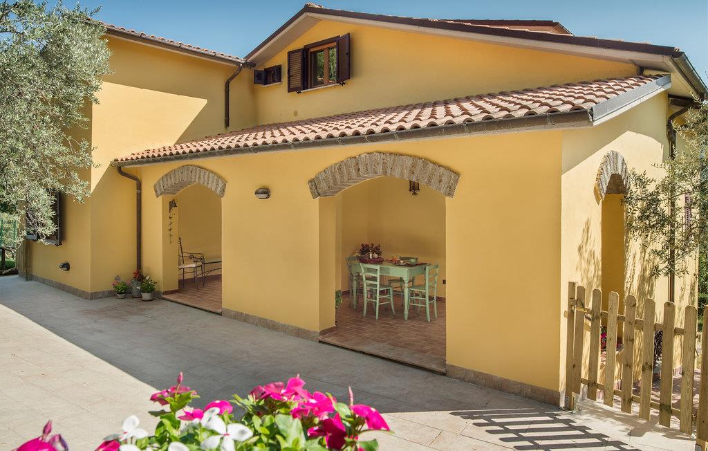 Dejligt feriehus med pool og en fantastisk udsigt over landskabet.