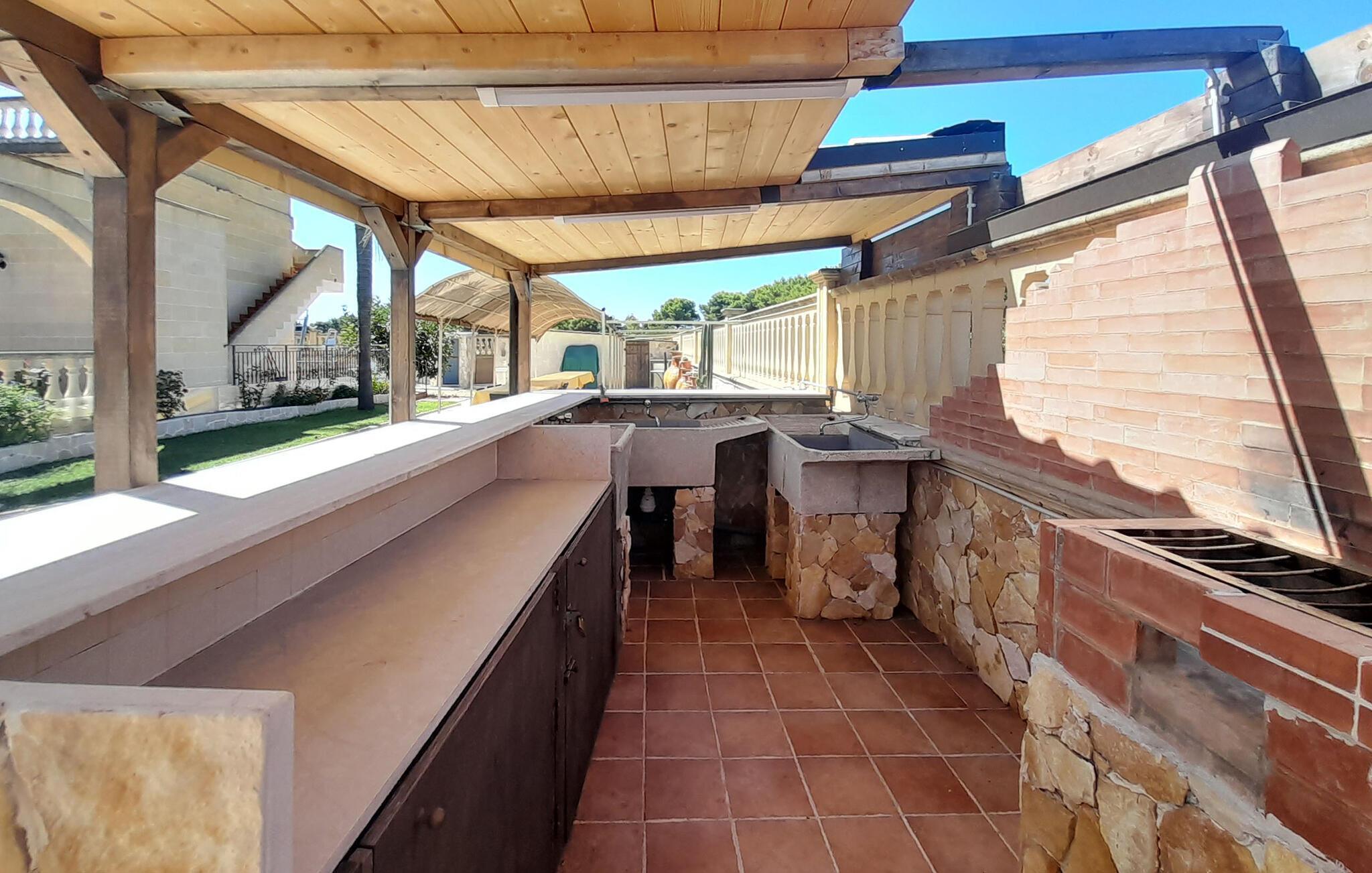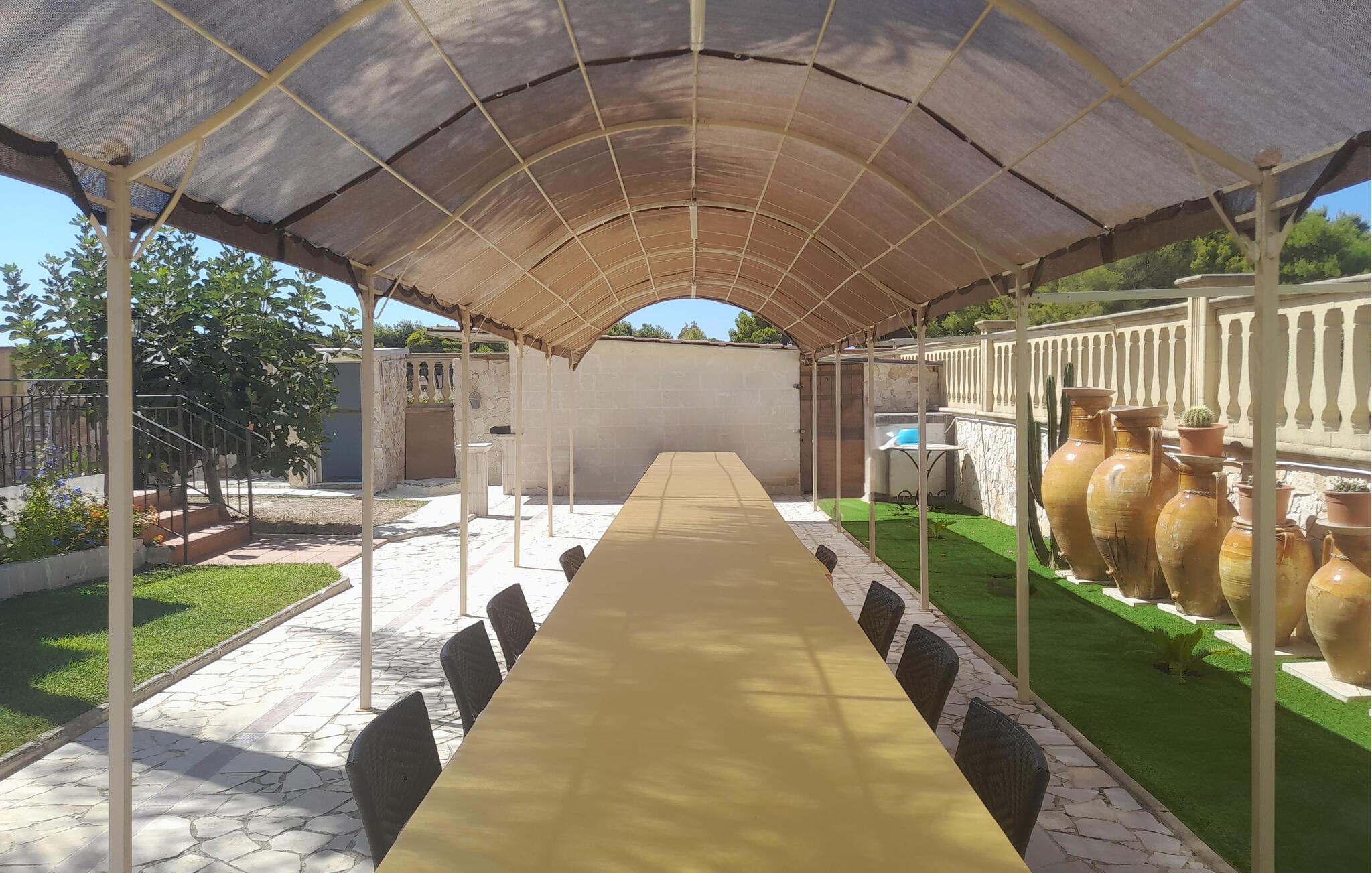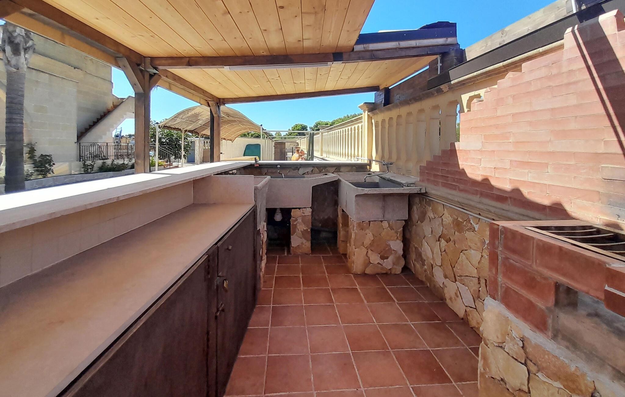 Udforsk det beskyttede, fællesområde, hvor palmer, kaktus og velplejede buskadser skaber en herskabelig middelhavsatmosfære. Komfortable loungemøbler venter jer på den åbne terrasse, hvor I kan slappe af i skyggen med en forfriskende drink. Tænd grillen og glæd jer til uforglemmelige aftener under stjernerne.