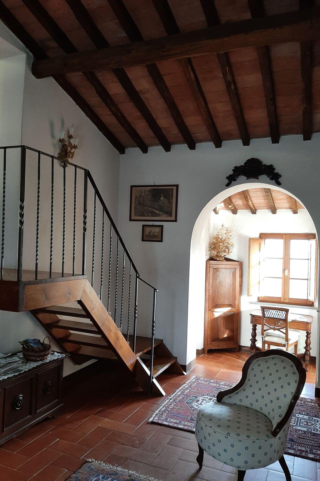 Six beds, approx. 90 sqm. It is the result of adaptations made over time on a 17th century turret. Restored in 1990, in the Tuscan tradition, and furnished with family furniture.Brief descriptionOther : Non-smoking houseBrief description1Other rooms : utility roomTotal kitchens : 1Kitchen 1Other kitchen equipment : the kitchen-diner has a seating corner in front of the fireplace, suitable for grilling.SurroundingsSports facilities nearby : Riding school/horse-riding possibilities, Canoeing, Bicycle tours, Mountain bikingRenting possibilities : Bicycle rentalSurroundings 1Garden and outdoor areasGarden equipment : Garden furniture available