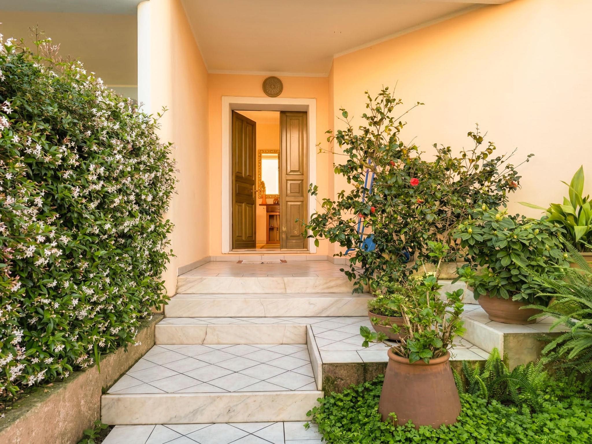 "Papaia", 4-room terraced house 148 m2 on 2 levels. Beautiful and stylish furnishings: living/dining room with TV (flat screen), hi-fi system. Exit to the garden, to the terrace. Kitchen (oven, 4 gas rings, toaster, kettle). Shower/bidet/WC. Air-conditioning. Upper floor: 2 rooms, each room with 2 double beds and air conditioning. 1 room with 1 bed, 1 double bed and air conditioning. Bath/bidet/WC. Small terrace. Terrace furniture. Beautiful, of the garden. Facilities: washing machine, iron, hair dryer. Internet (WiFi, free). Parking at the house. Please note: suitable for families. Maximum 1 small pet/ dog allowed. Fire extinguisher. IT000000C0000T0000