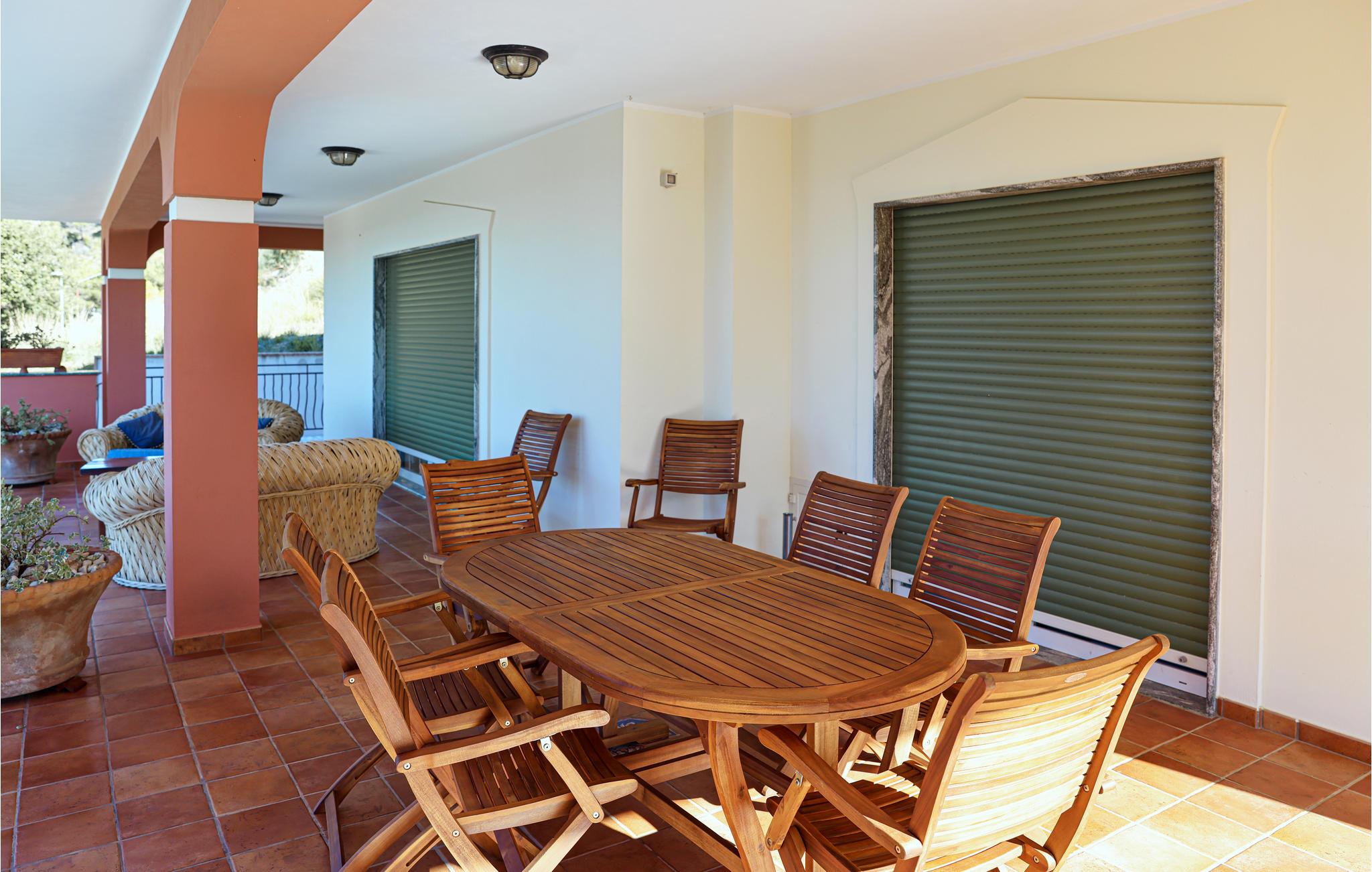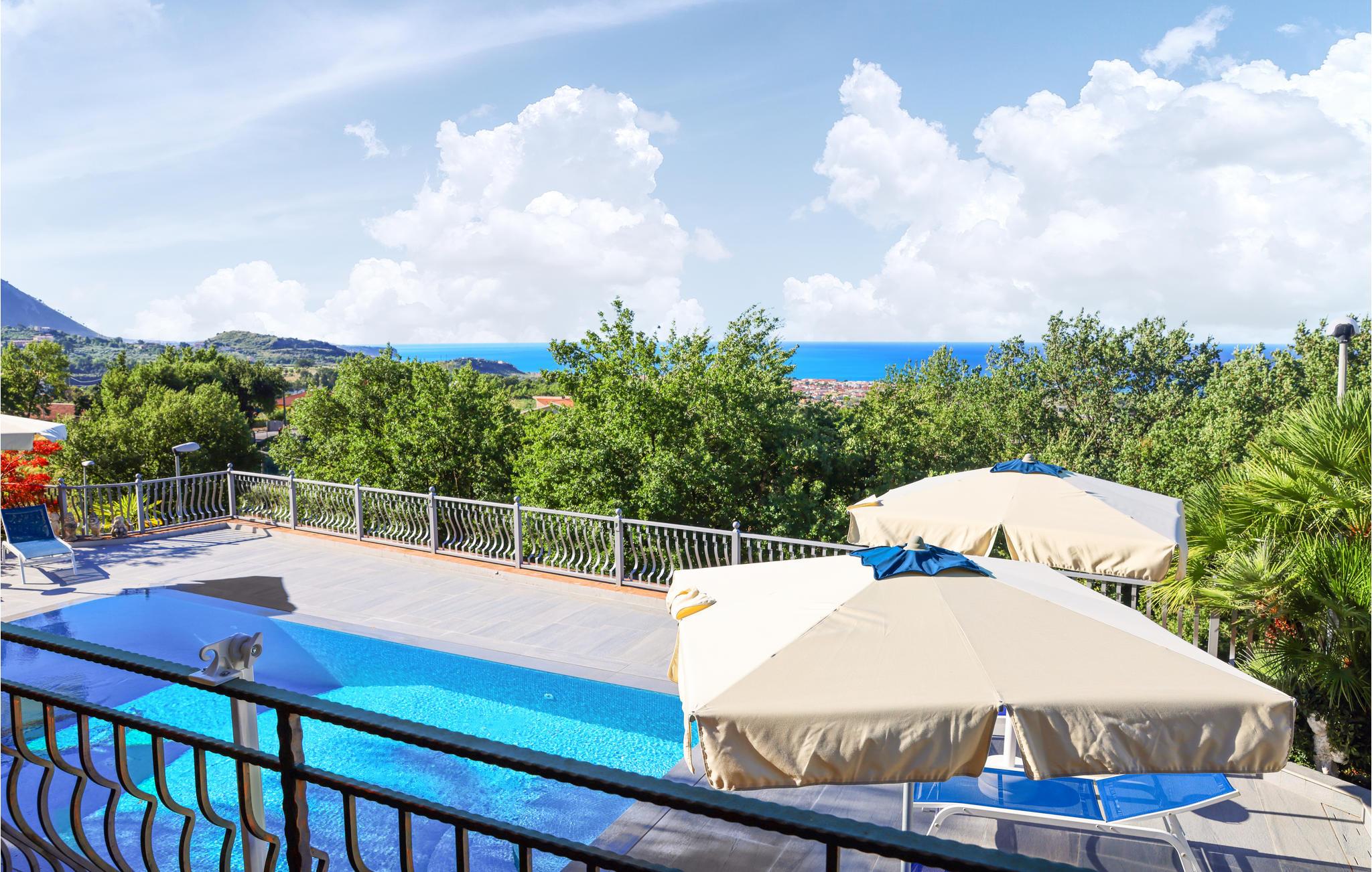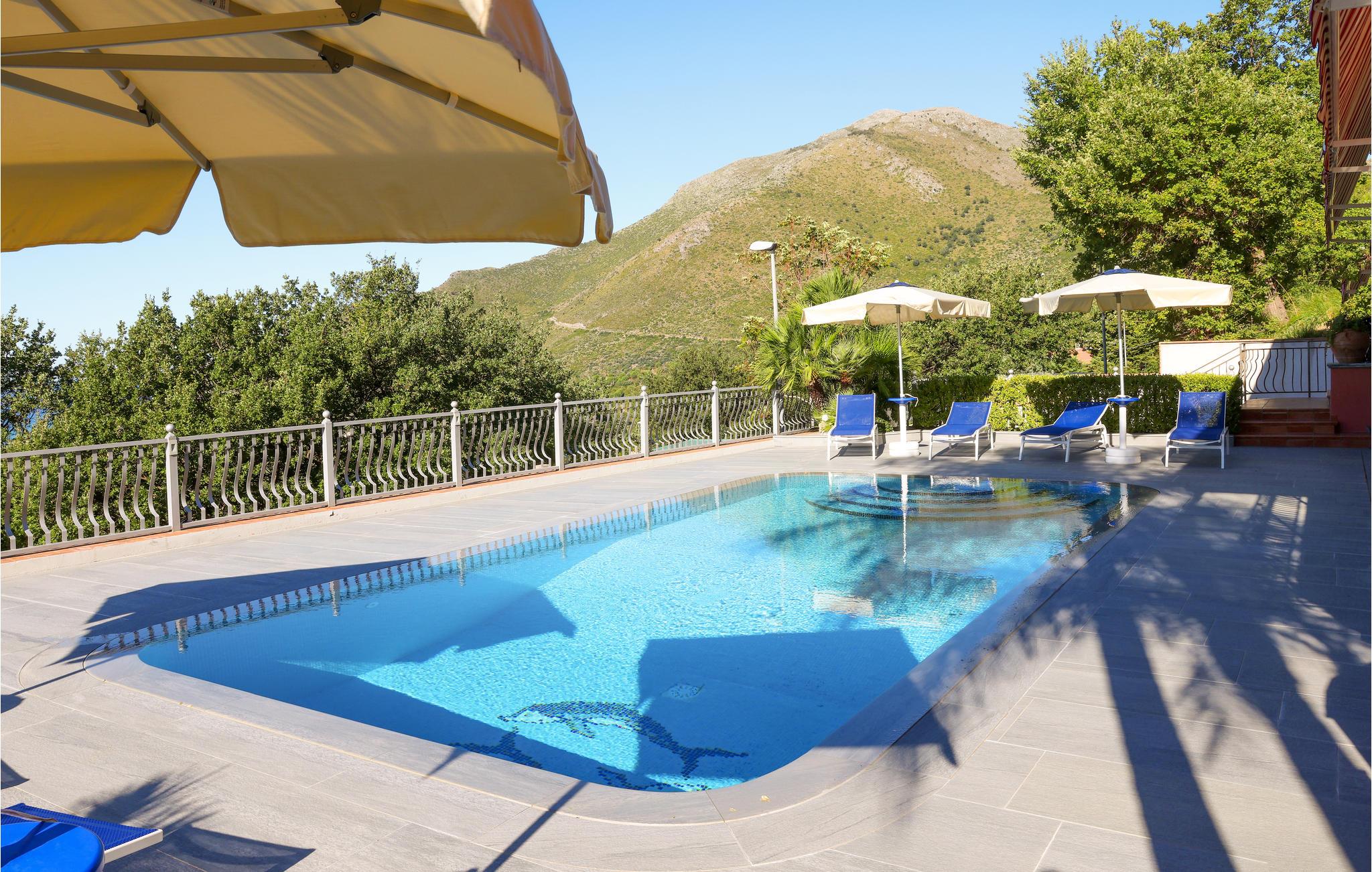 Dejligt feriehus med pool, få kilometer fra Tortora Marina i et dominerende panoramalandskab (130 moh), langs en bred kyststrækning, der strækker sig fra øen Dino i syd og til de klipperige udposter langs Maratakysten mod nord. Huset fordeler sig på tre etager med stue, køkken, fire soveværelser, fire badeværelser og en stor, delvist overdækket terrasse hvor det er dejligt at sidde og spise dagens måltider. Fra poolen og terrassen kan I nyde synet af makiens typiske middelhavsfarver. I Tortora Marian er der barer, restauranter og den lange sandstrand, der strækker sig helt til den skønne kalabriske ø Dino. Til de klipperige kyster ved Maratera med idylliske bugter og kiesstrande er der fem km.