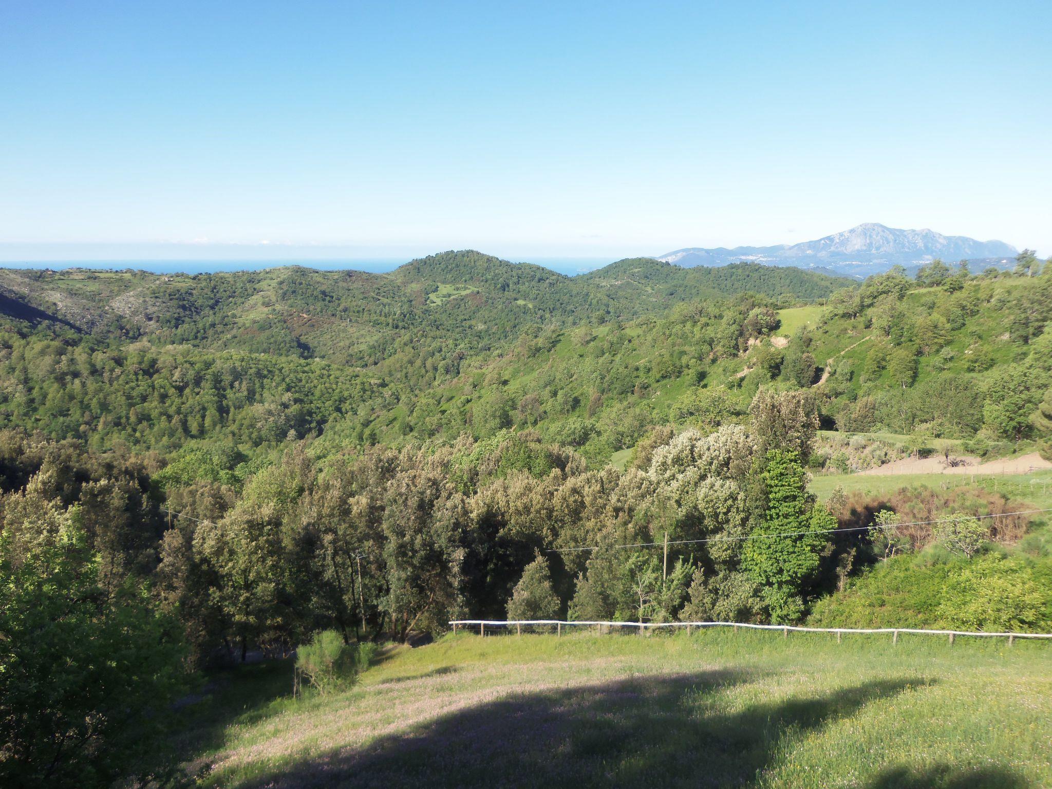 The property is located far from the hustle and bustle of everyday life, at an altitude of 680 metres, in a small hamlet in the municipality of Tortorella, Gulf of Policastro, with rocks and holm oak forest behind it and an unobstructed view of green hills and the sea on the horizon. The 6000 square metre plot on a hillside is south-west facing. Large open spaces invite you to linger, hiking trails start directly at the house, swings and a tree house are waiting to be conquered. You can buy local produce such as ricotta, vegetables and eggs from our neighbours, farmers and shepherds. In the medieval village of Tortorella you will find small alimentari, a pharmacy, two bars and a post office, and the sea is a 25-minute drive away at Villamare.
