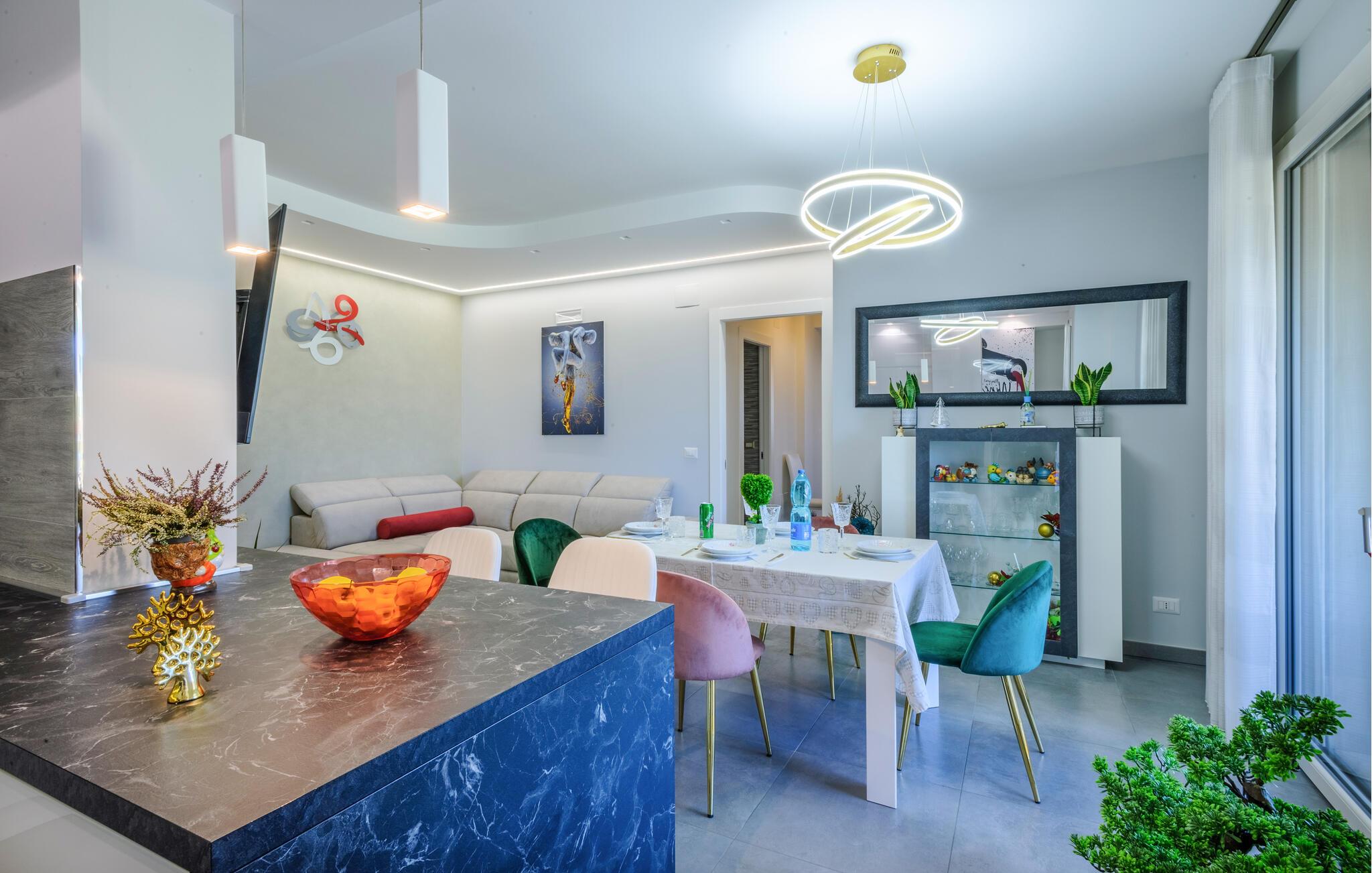 Oplev en afslappende ferie i denne moderne ferielejlighed i Tortoreto Lido. Her venter jer en stilfuld atmosfære med kærligt udvalgte detaljer og kvalitetsmøbler. De lyse rum skaber en indbydende stemning, hvor I kan nyde de fælles stunder med jeres familie. Lav mad sammen i det veludstyrede køkken, eller læn jer tilbage på sofaen efter en begivenhedsrig dag.
