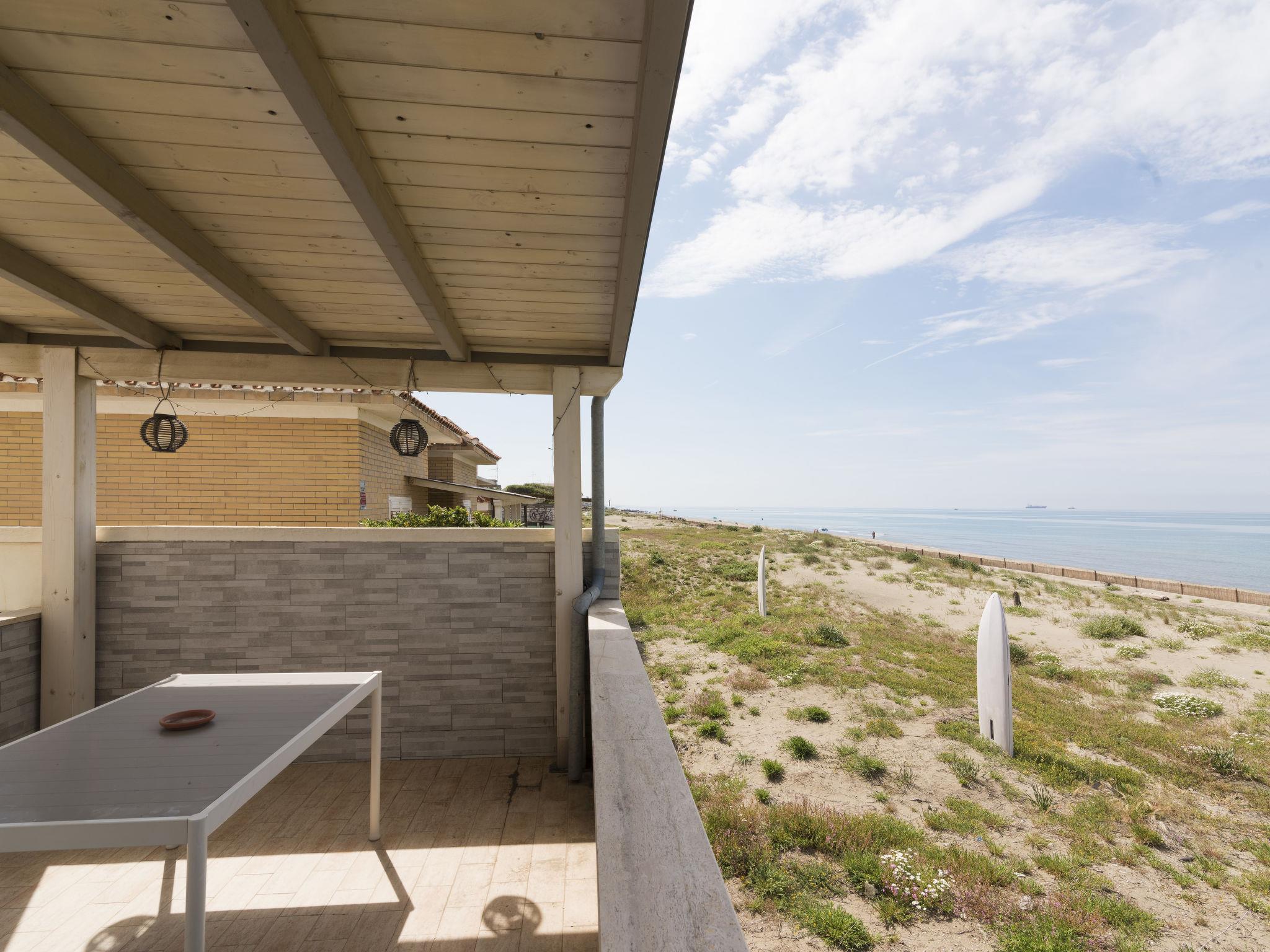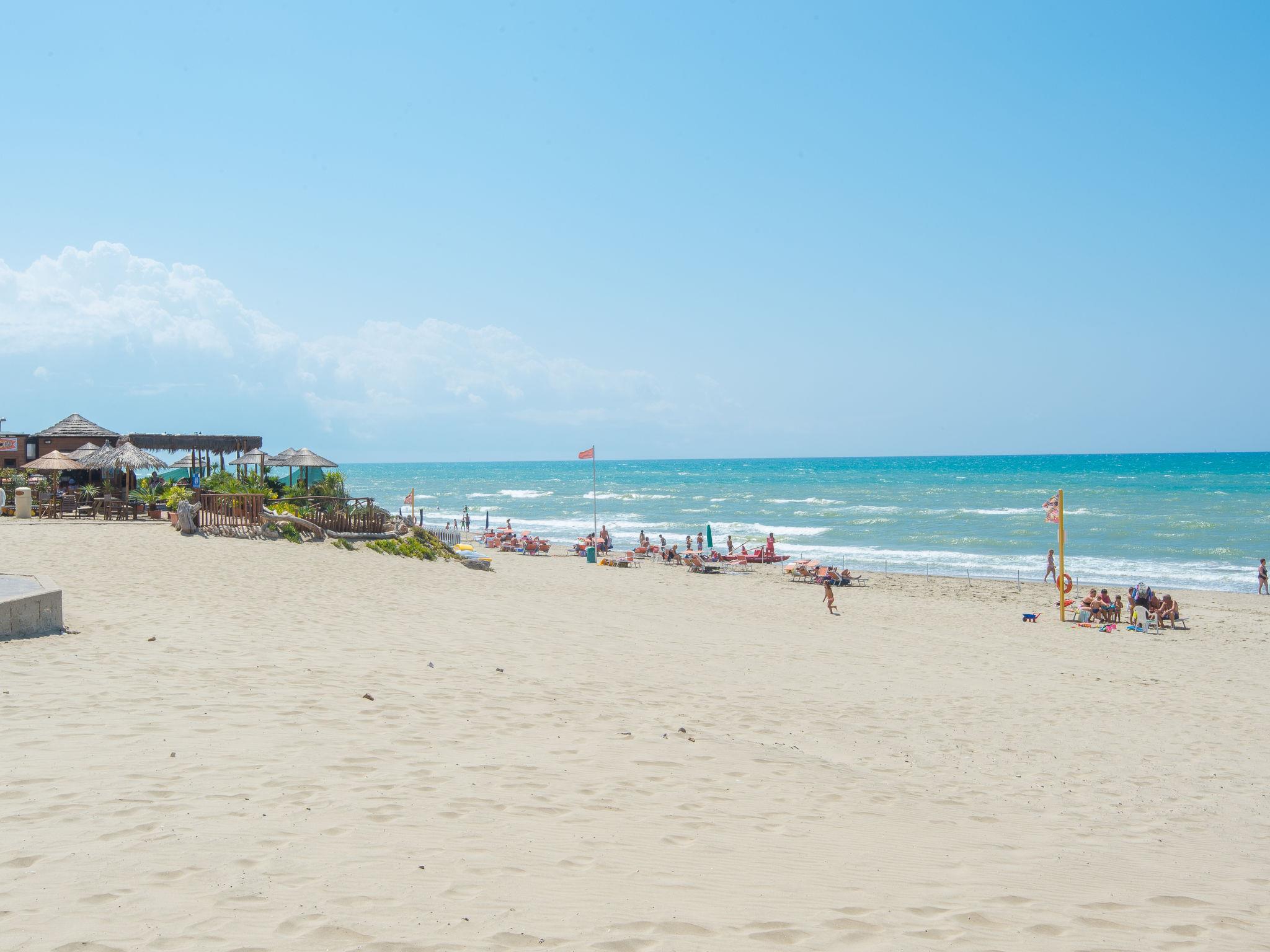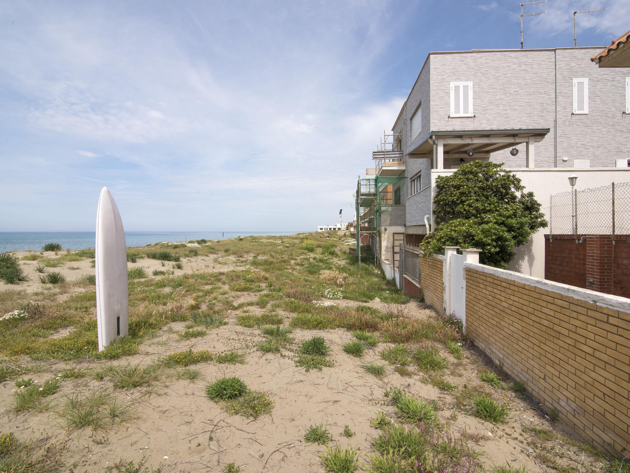 Cosy, comfortable 2-family house, 2 storeys, detached. Torvanianica, in a sunny position, on the beach, direct access to the beach. Private: terraced garden, parking at the house, public parking 2 m on the road. Grocery, bar, bus stop 200 m, railway station "TrenoPomezia-Santa Palomba" 13 km, sandy beach 1 m. Sports harbour 10 km. Nearby attractions: Spiaggia di Rio Torto 100 m, Zoo Marine water park 1 km, Arenile dei Pescatori 1.2 km, Parco Regionale dellAppia Antica 12 km, Roma 40 km. Please note: car recommended. Loading and unloading of baggage is possible at the holiday house. Airfield 4 km from the property.