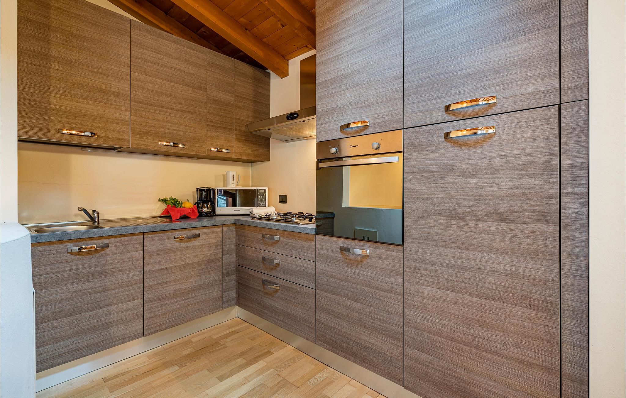 Denne fine lejlighed ligger på 2. sal i den lille landsby Toscolano Maderno på den vestlige bred af Gardasøen. Lejligheden er moderne og funktionelt indrettet, og det flotte træloft skaber en hyggelig atmosfære. Fra stuen kommer I til den herlige altan, hvor I kan begynde dagen med en lækker morgenmad eller læne jer tilbage med et glas vin om aftenen, mens I nyder udsigten til bjergene.