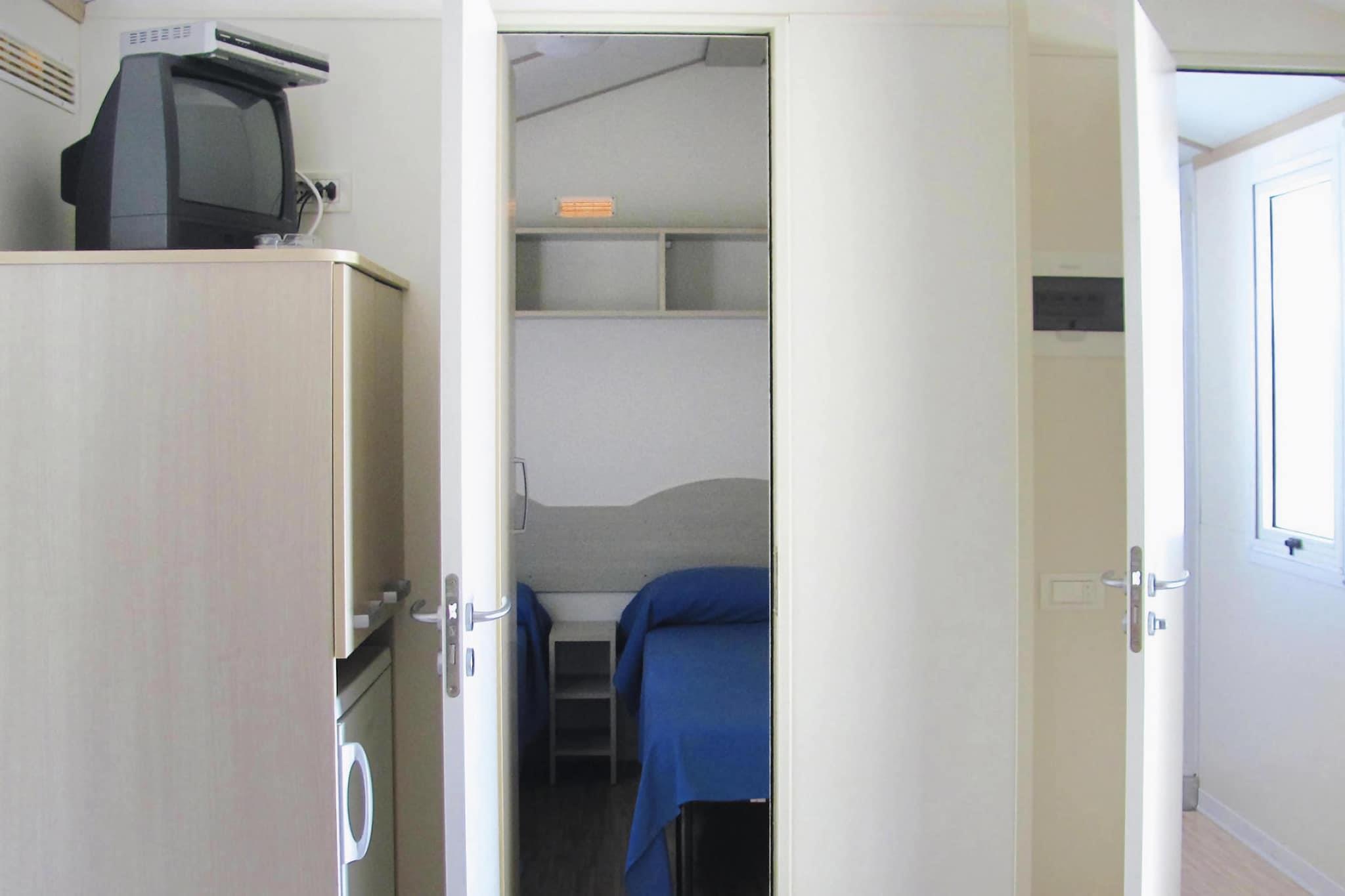 Stue(enkeltsovesofa, Fjernsyn(parabol)), tekøkken(spisebord, kogeplade(Komfur med fire kogeplader), mikrobølgeovn, køleskab), soveværelse(dobbeltseng), soveværelse(enkeltseng, enkeltseng), badeværelse(bruser, toilet), Kiosk, Biludlejning, Reception, Animation team, Minimarked, Tennisbane, Bordtennis, Restaurant, Bar, Legeområde, tørretumbler(deles med andre gæster, betalt), vaskemaskine(deles med andre gæster, betalt), varme, klimaanlæg, terrasse, havemøbler, solstole, parkering, swimmingpool(deles med andre gæster, udendørs, inkl. separat børne swimmingpool (maks. dybde 50 cm), opened from Apr upto and including Oct)