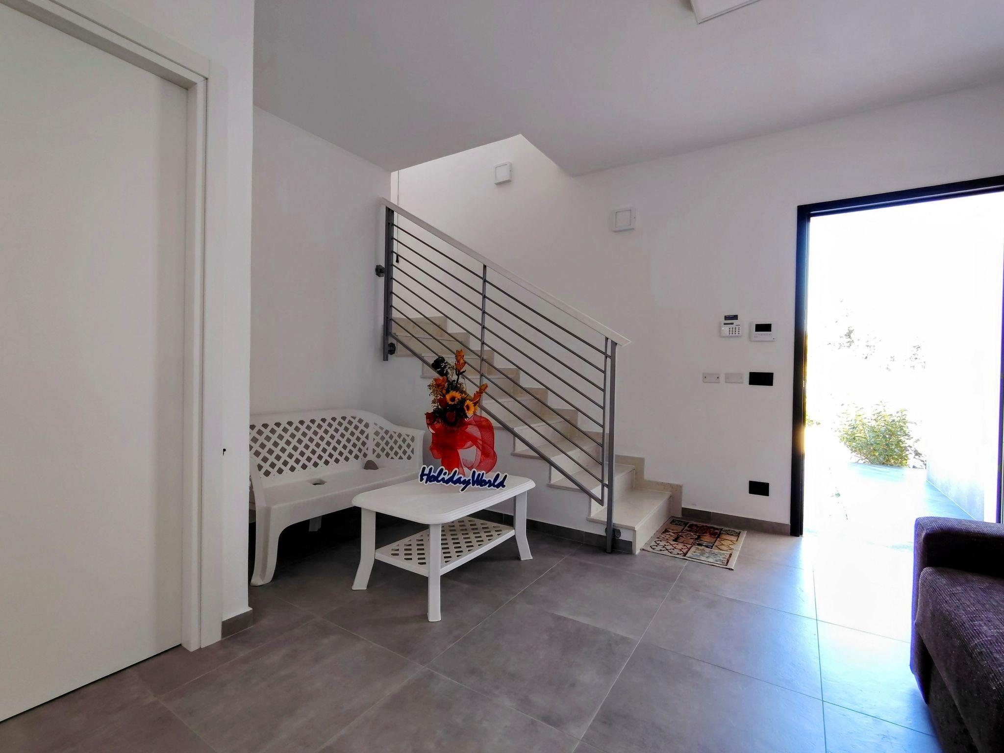 Villa Luna Blu is a practical two-storey flat located in Trabia (PA) and situated a few minutes from the sea in a quiet area. A beautiful outdoor area, for shared use with the other flat in the building, completes the structure with an in-ground swimming pool. In the outdoor space by the swimming pool there is a corner necessary to enrich the days by the pool in company. There is also a barbecue area, ideal for spending evenings outdoors with family or friends after a day at the beach or visiting the beautiful seaside villages. On the ground floor there is a spacious living room complete with kitchen adjacent to the outdoor area, bathroom, laundry room and a one and a half sofa bed with wall-mounted Smart TV. On the upper floor there is a living area and a bedroom with a double bed overlooking a terrace with a view of the pool and the hillside panorama of Sant'Onofrio. Also on the upper floor is a room with three beds and also equipped with a wall-mounted Smart TV and bathroom with shower. There is no lack of convenience and comfort to spend beautiful days inside the structure but also outside in the nearby marinas of Trabia and San Nicola where it is possible to make excursions to the beautiful neighbouring coastline.