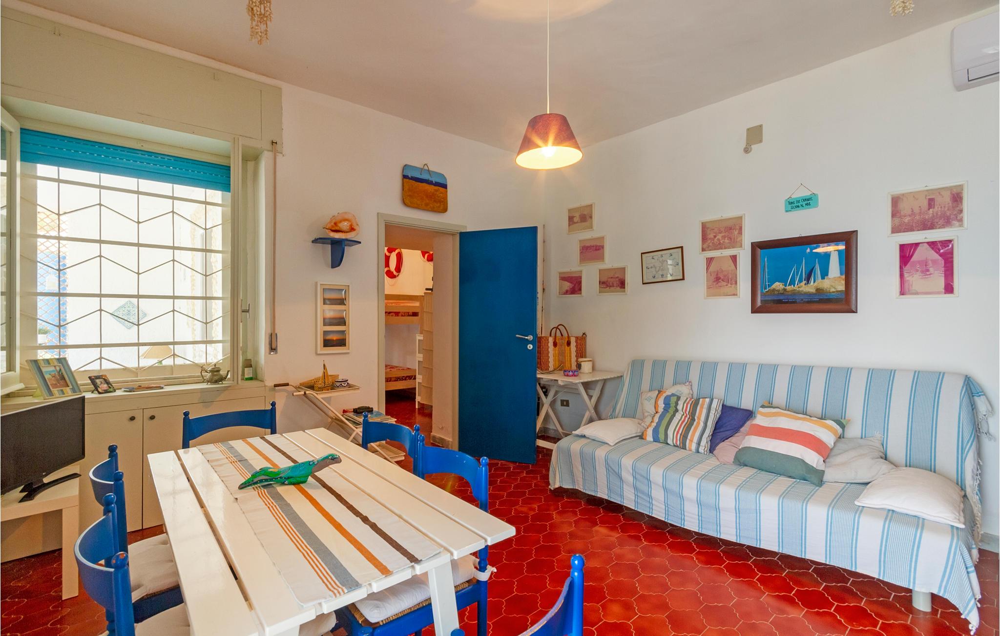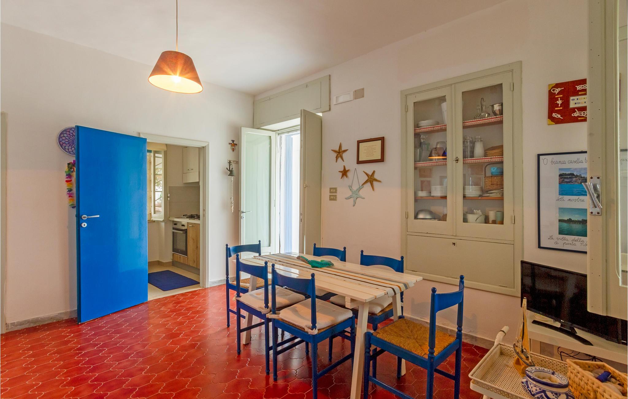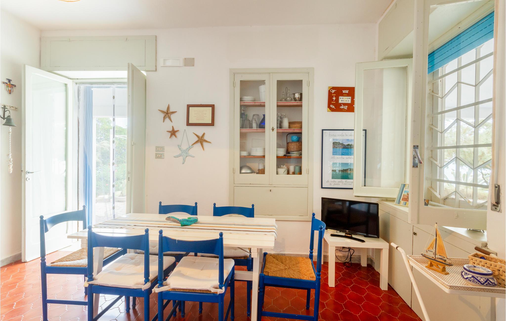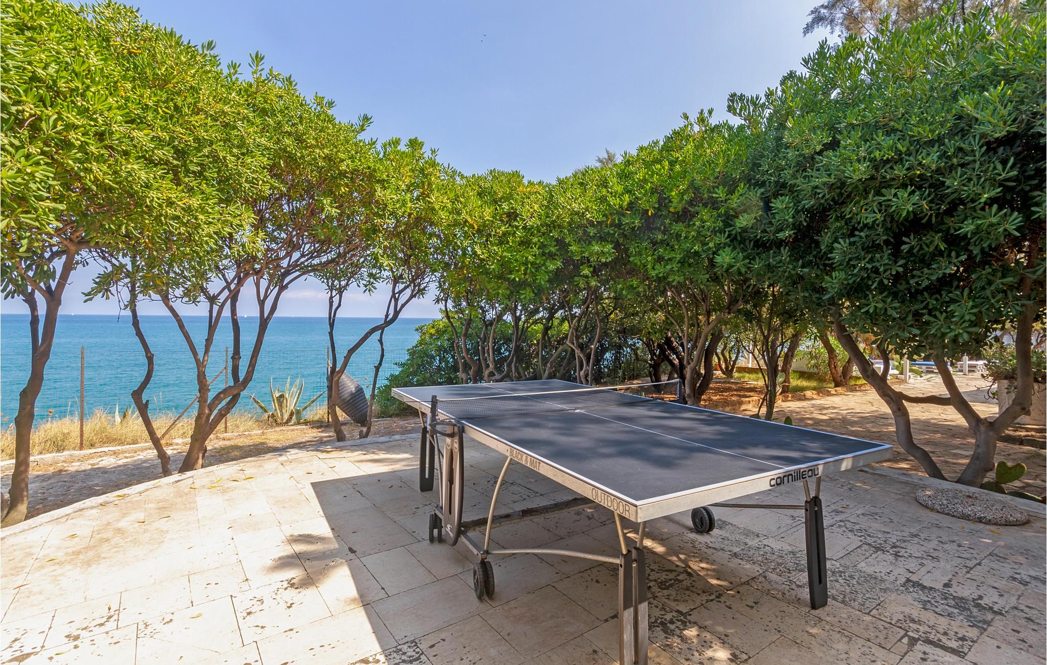 Rummeligt, lyst feriehus med havudsigt. I havnebyen Trani finder I dette attraktivt beliggende feriehus lige ved kysten. Indenfor finder du et komfortabelt udstyret og kærligt dekoreret interiør, der gør et varmt, familiært indtryk. Familier vil finde gode rammer for en afslappende ferie ved havet. Tilbring afslappende timer i den indhegnede have om dagen og nyd udekøkkenet om aftenen. Lyt til den beroligende lyd af bølgerne og afslut dagen med at se solnedgangen. De nærliggende strande inviterer dig til at slappe af i solen ved vandet. Du kan også leje cykler i nærheden til ture til det nærliggende område eller tilbringe aktive timer på tennisbanen.