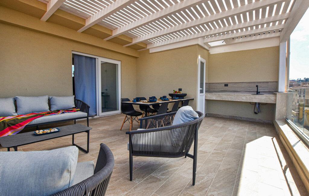 Oplev et afslappende ophold i jeres stilfulde ferielejlighed, beliggende på en malerisk gade med middelhavsstemning. Lad jer fortrylle af den elegante arkitektur og den hyggelige atmosfære i jeres lejlighed. Begynd dagene i den indbydende opholdsstue, som er udstyret med en komfortabel sofa. Styrk jer selv med en overdådig morgenmad i det åbne køkken-alrum, før I begiver jer ud på nye udforskningsture.