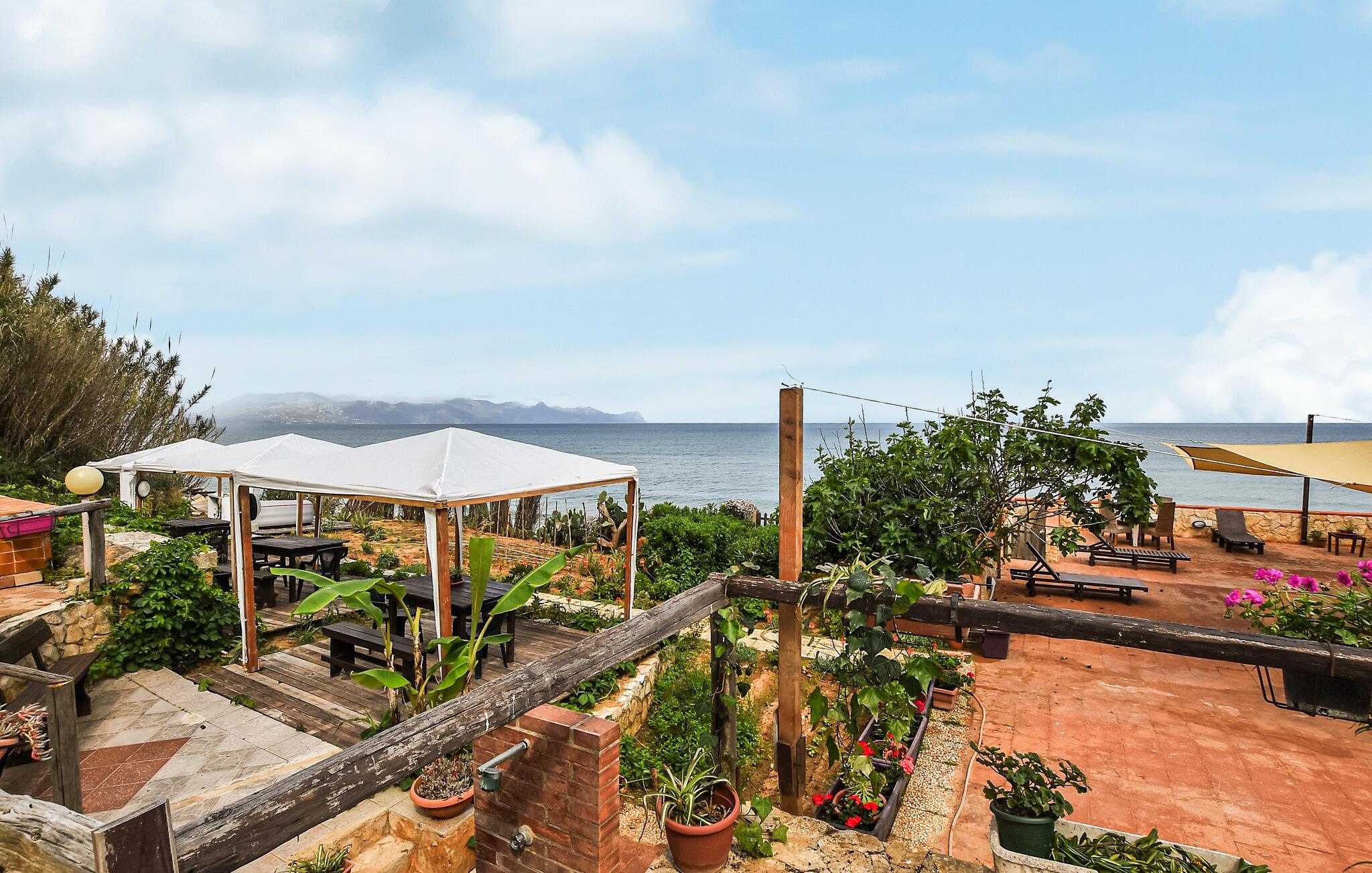 Forkæl jer selv med solrige dage i denne charmerende ferielejlighed med havudsigt – lige ved stranden. Pak jeres tasker, og glæd jer til en uforglemmelig ferie for to, hvor I går direkte fra jeres feriehus ud i det turkisblå vand. Tilbered middelhavsretter, planlæg jeres aktiviteter i fred og ro, og forkæl jer selv med afslappende siestaer mellem solbadningerne. Forfrisk jer i det smukke vand lige uden for døren, så snart I vågner, og njut af havet med en friskbrygget kaffe på den fælles terrasse. Genoplad batterierne på en liggestol, og sig farvel til solen om aftenen med et glas vin. Udforsk den charmerende by Castellammare del Golfo med dens historiske havn, og prøv regionale specialiteter i en traditionel trattoria. Vandr langs spektakulære kyststier i Zingaro naturreservat, eller besøg det græske tempel og amfiteater i Segesta. Palermo er også et fantastisk sted for en dagstur – slentr gennem de travle markeder, beundr den normannisk-arabiske arkitektur, og lad jer rive med af sicilianernes livlighed.