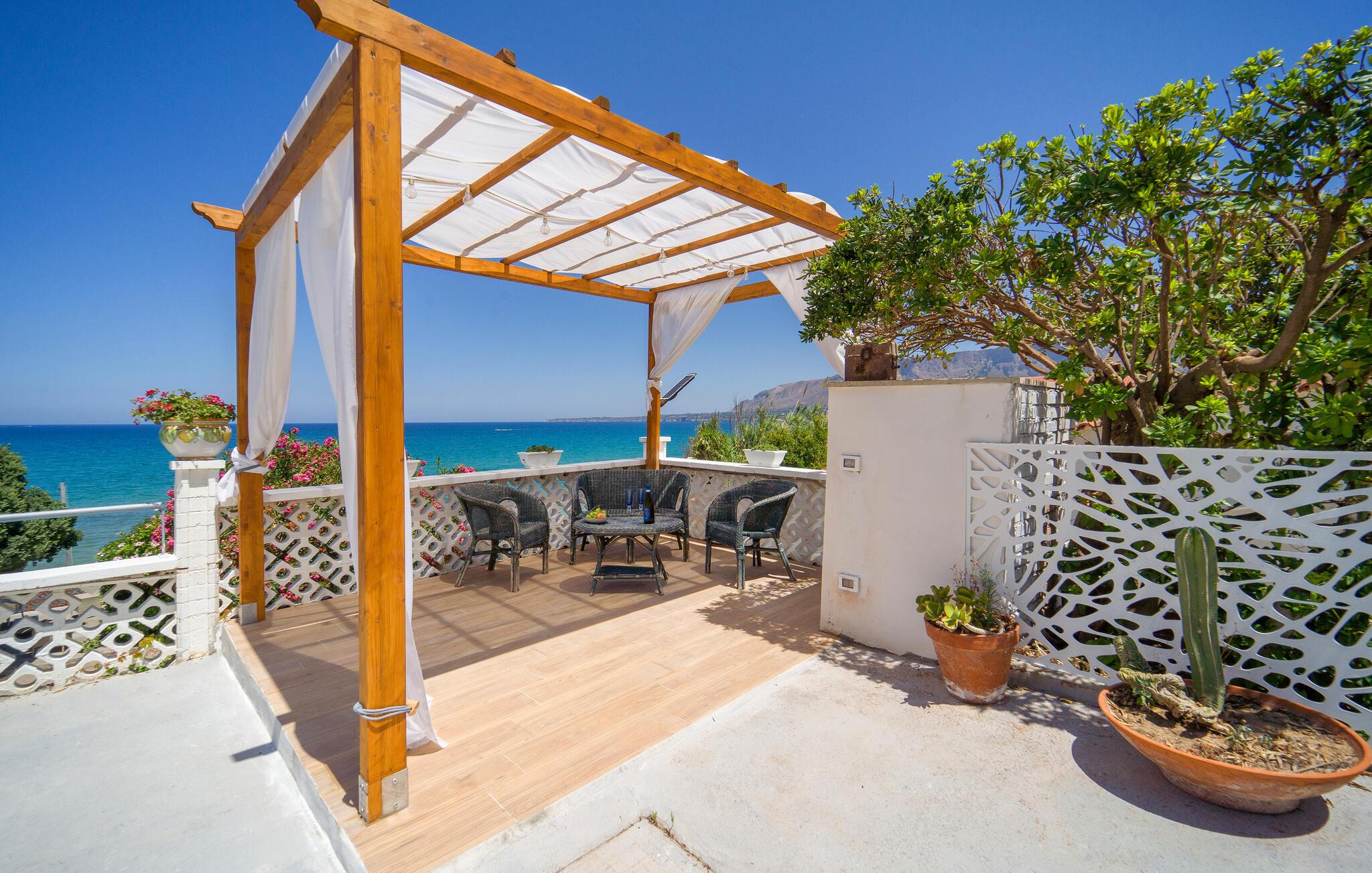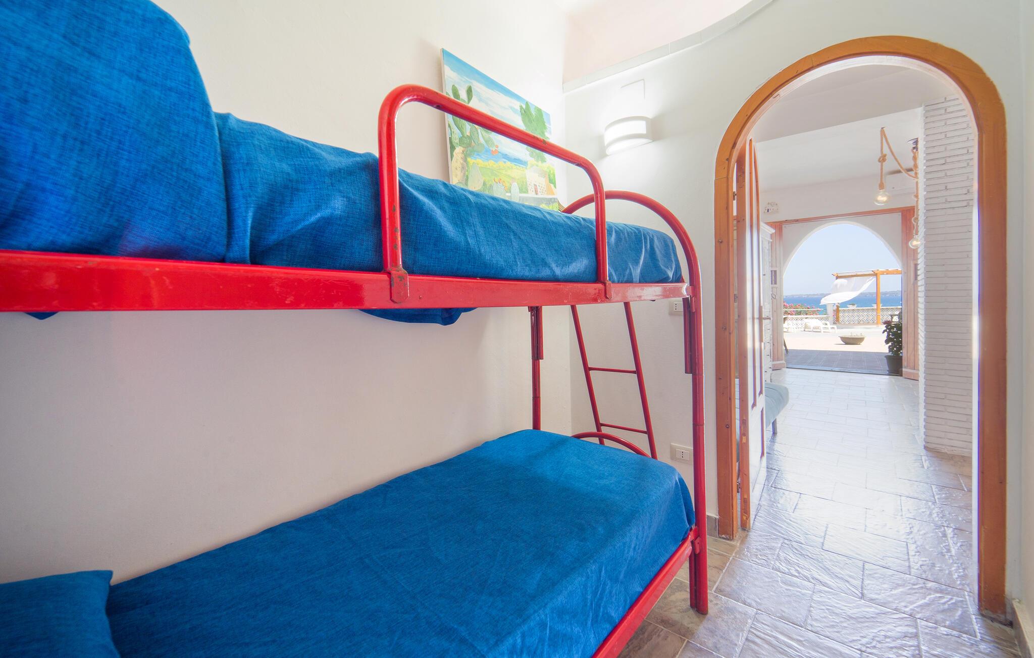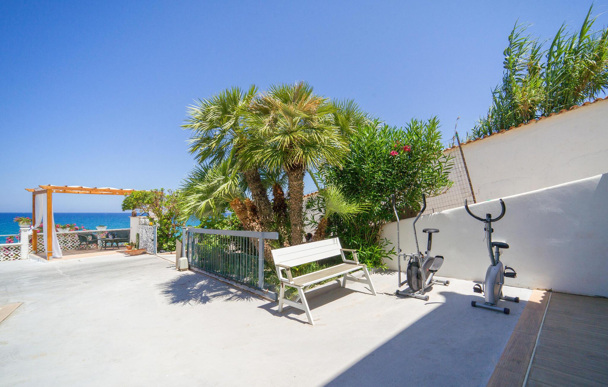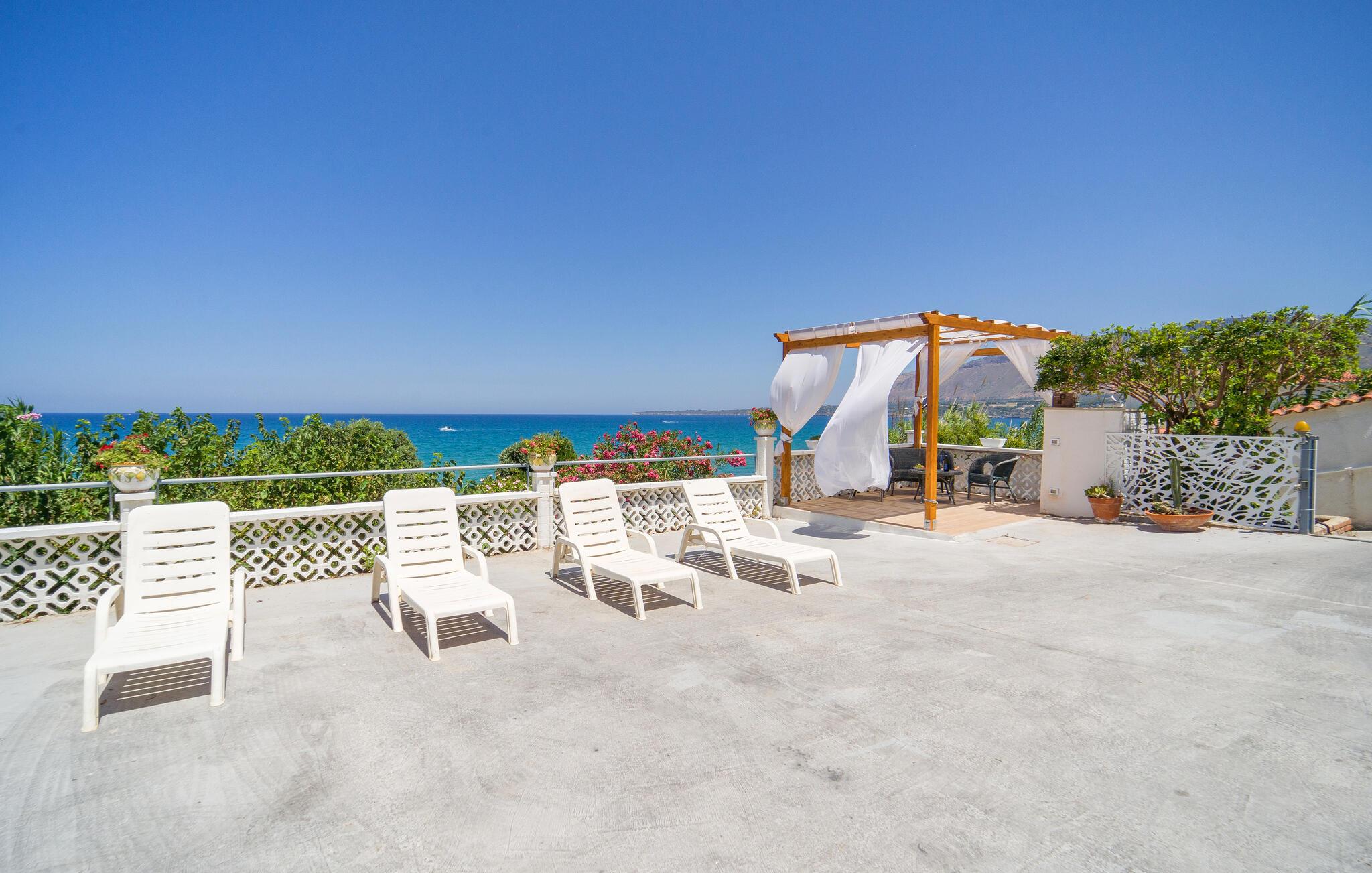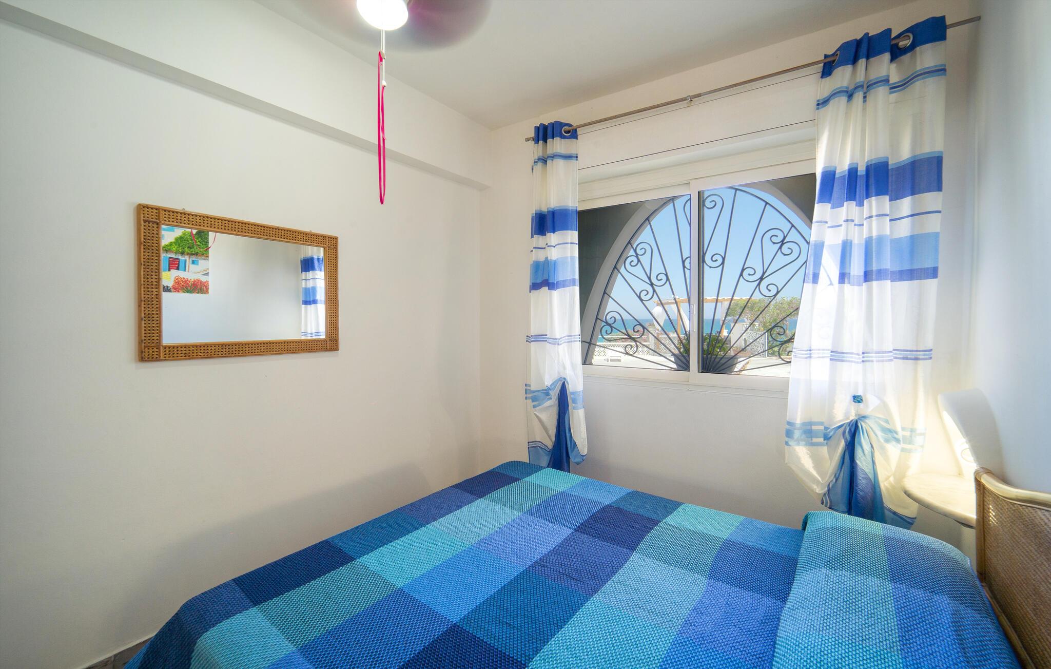 Tilbring en solrig ferie i denne rummelige ferielejlighed med havudsigt og direkte nærhed til stranden.